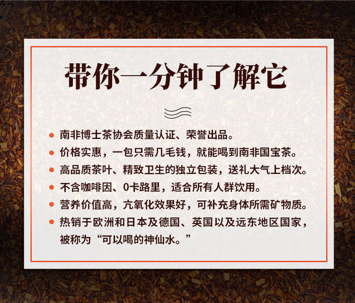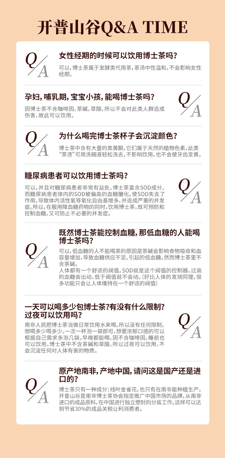 【品名】开普山谷南非博士茶红茶 【规格】100袋/盒 【保质期】3年 【发货包装】独立包装盒 【发货地】申通 【发货快递】安徽 【不发货区域】港澳台 【补邮费地区】新疆,西藏,内蒙古,宁夏,甘肃,青海+10元 【发货时效】48小时,周末节假日顺延 |