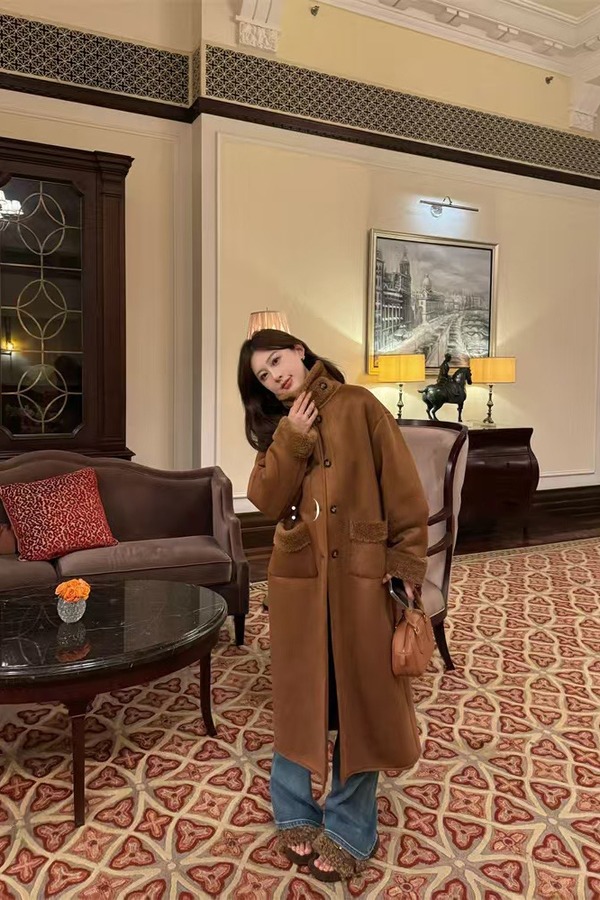 ELLA JADE 经典款棕色加厚皮毛一体大衣外套 21938
