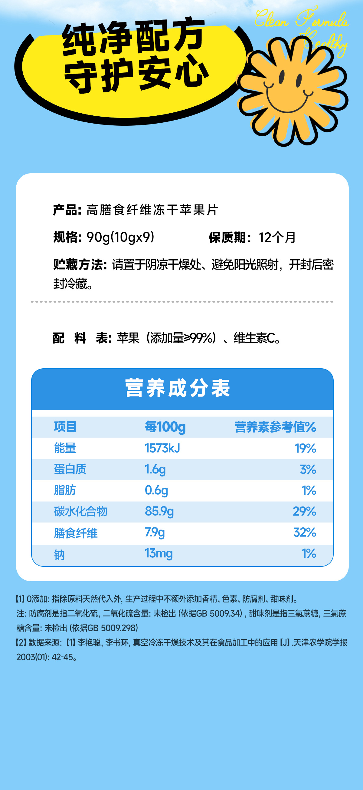 【39.9任选6件】高膳食纤维冻干苹果片/原味/10g