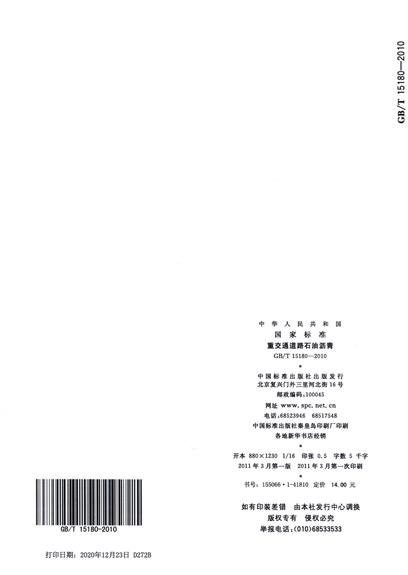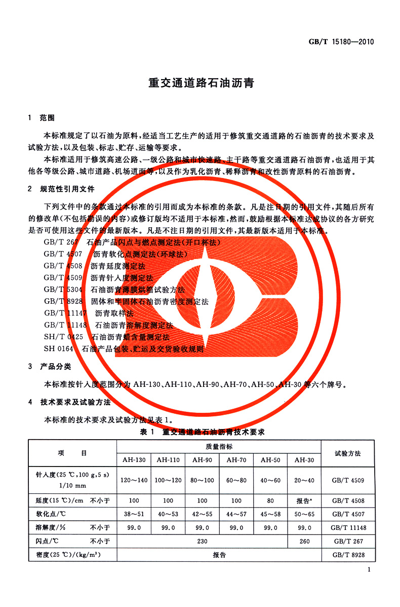 书名:GB/T 15180-2010 重交通道路石油沥青
