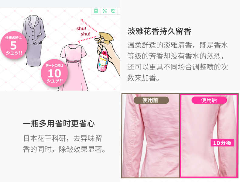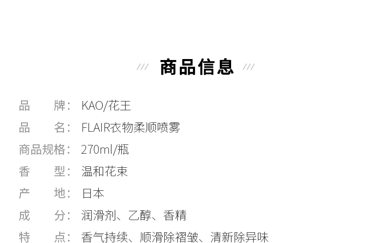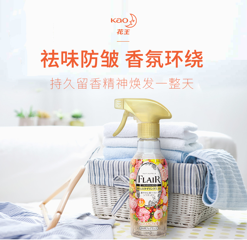 日本花王(KAO)进口衣物柔顺剂 衣物除异味喷雾防皱柔顺火锅去味清新喷雾空气防静电喷雾清新剂270ml