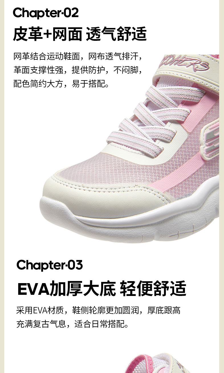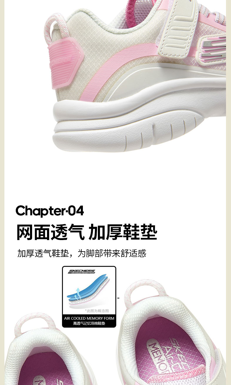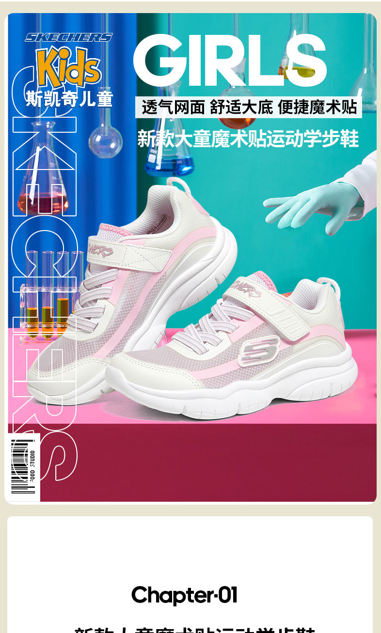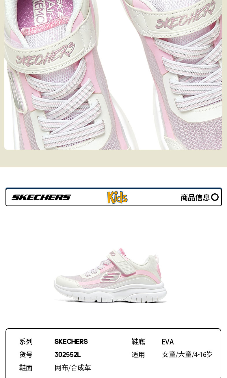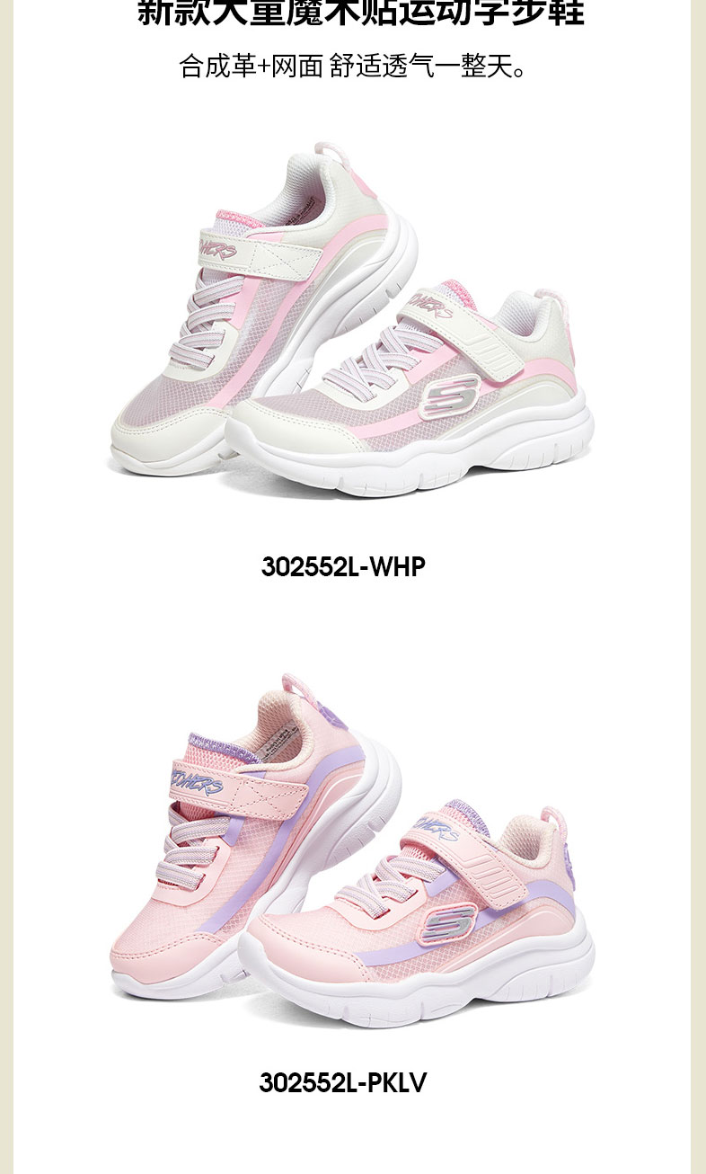 小斯凯奇女童鞋2022夏季大小童休闲运动鞋魔术贴302552L