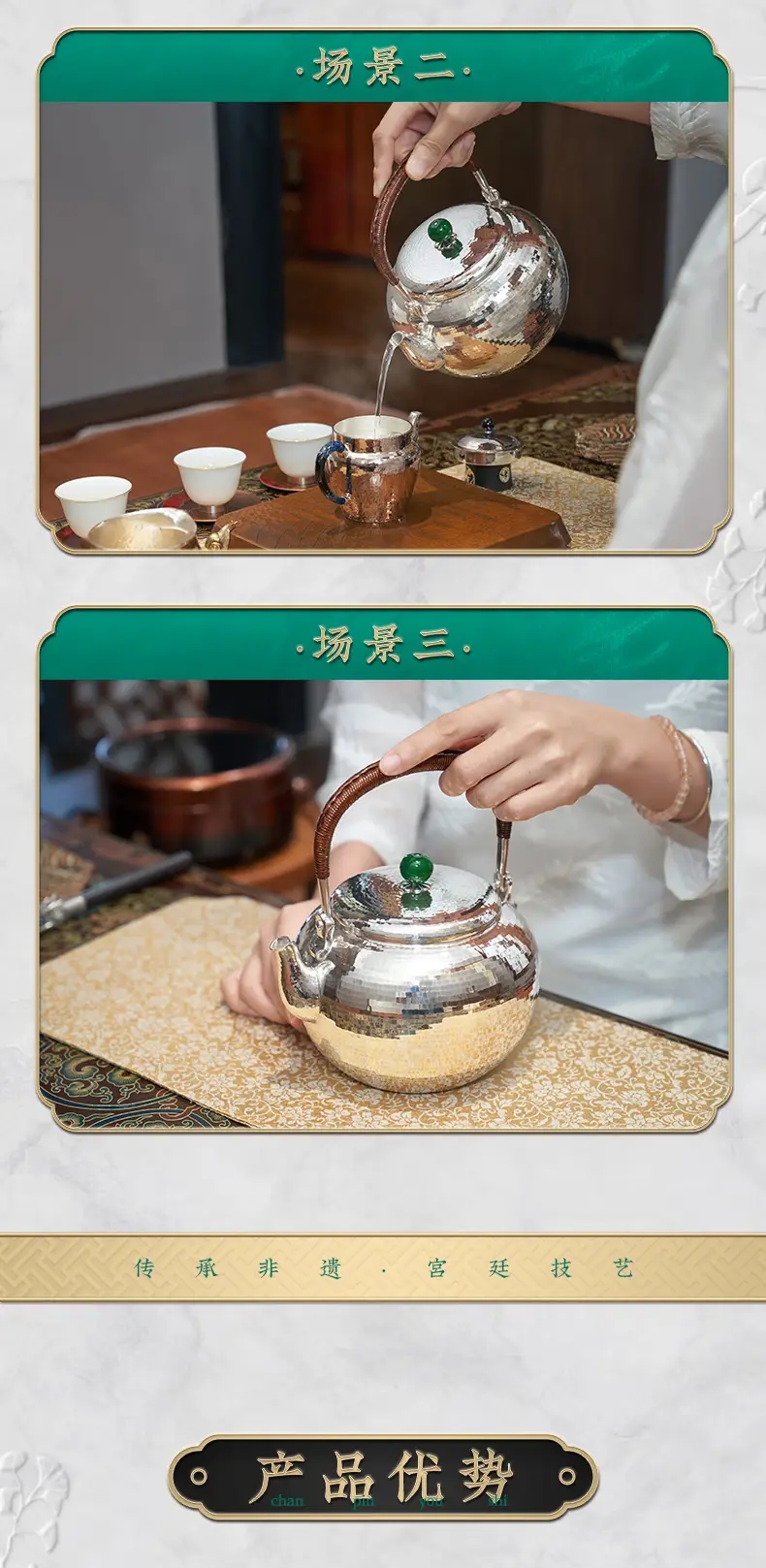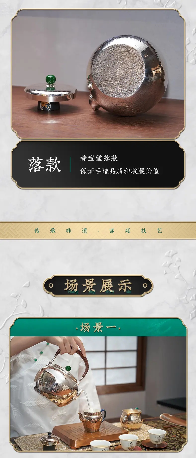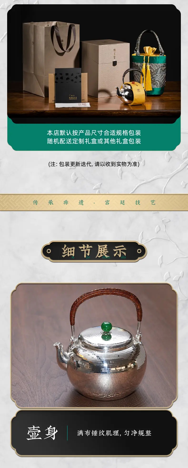 臻宝堂-圆珠壶(1000ml)臻宝堂银壶纯银9999烧水壶纯手工煮茶壶高端茶具足银养生泡茶水壶中式 圆珠壶.重约562克 容量约1000ml