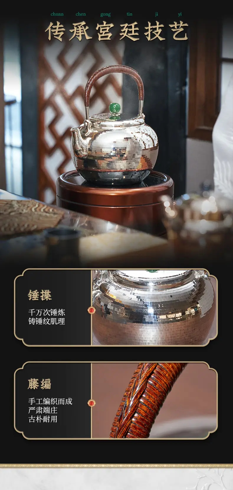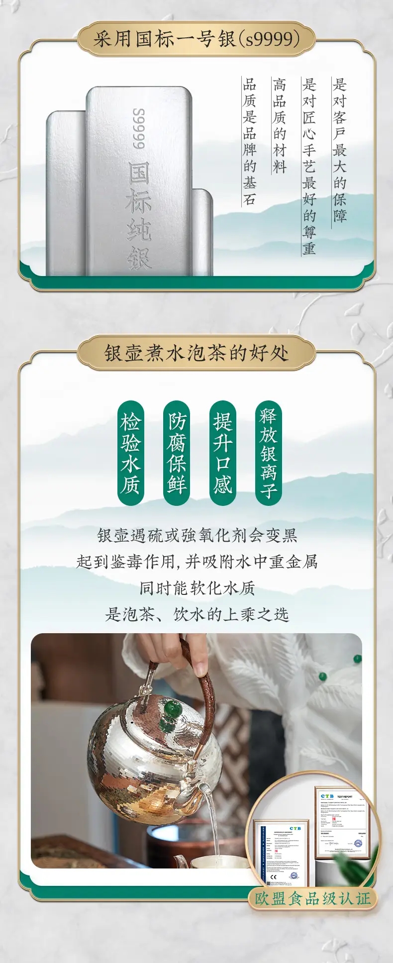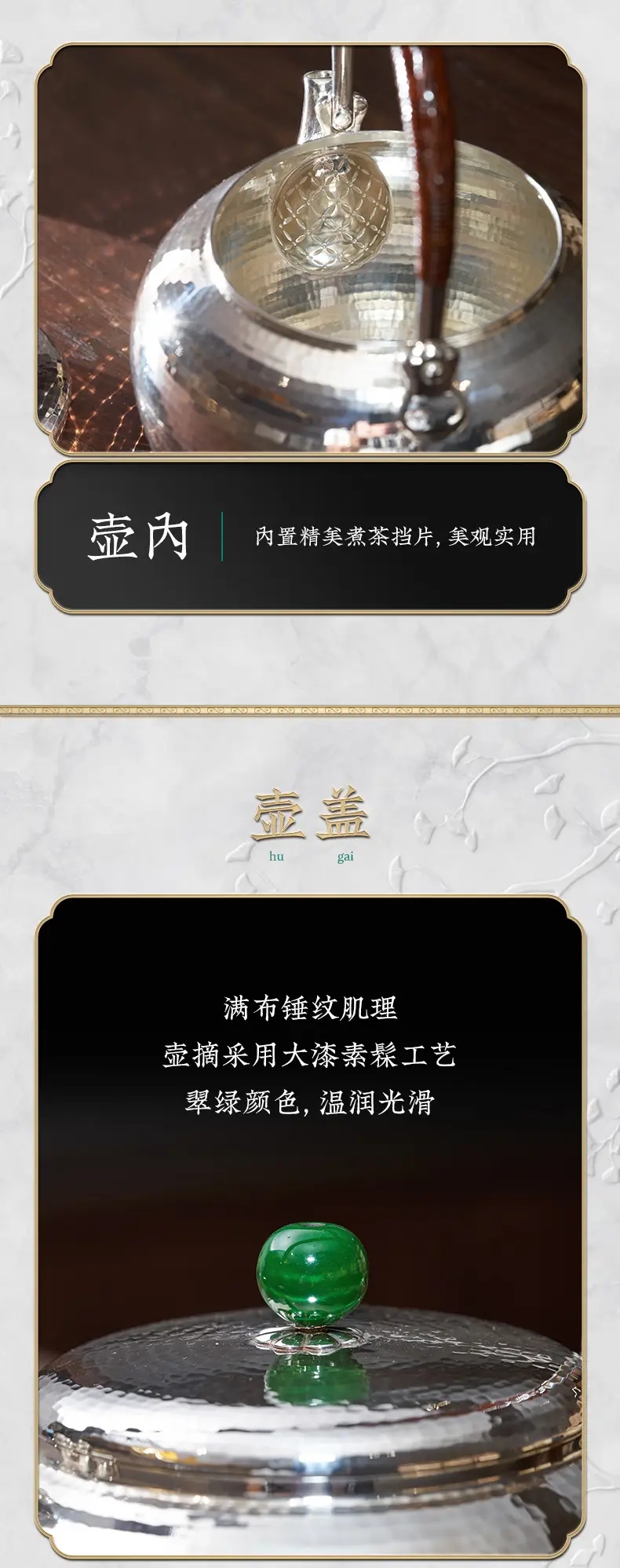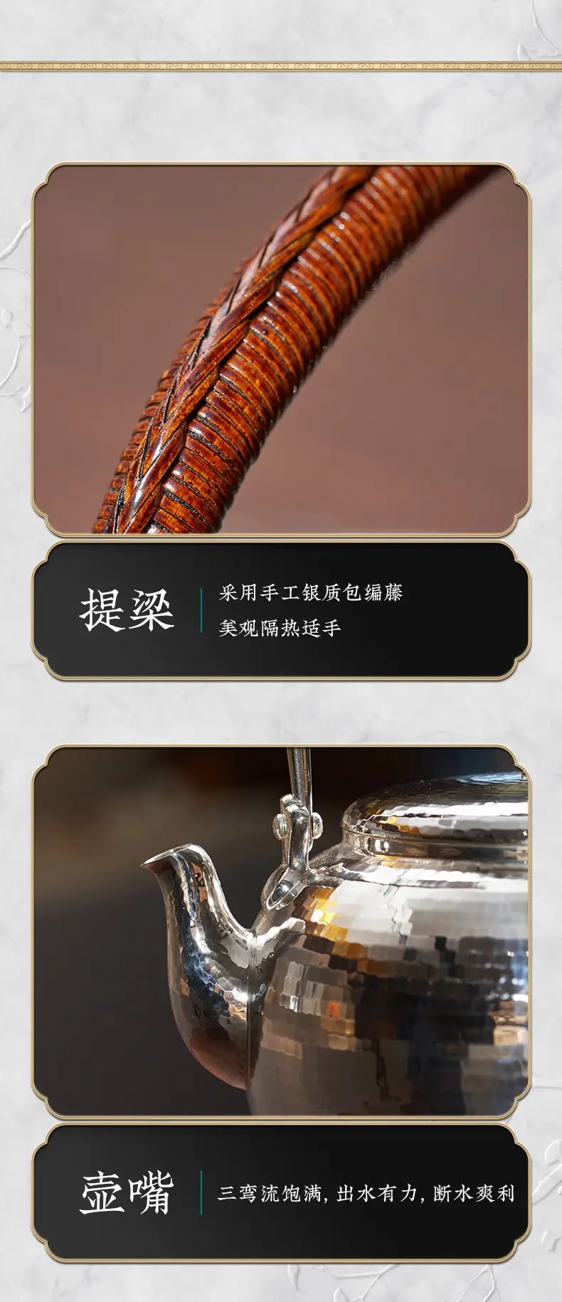 臻宝堂-圆珠壶(1000ml)臻宝堂银壶纯银9999烧水壶纯手工煮茶壶高端茶具足银养生泡茶水壶中式 圆珠壶.重约562克 容量约1000ml