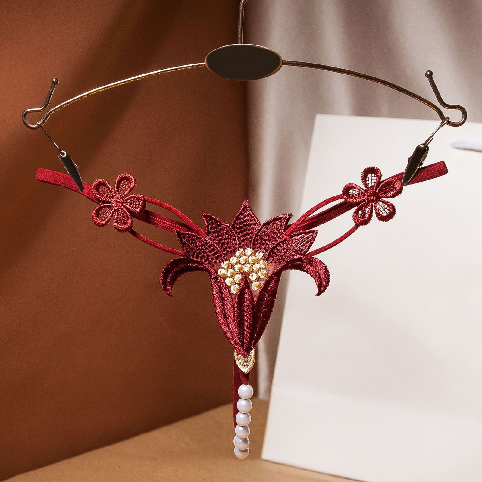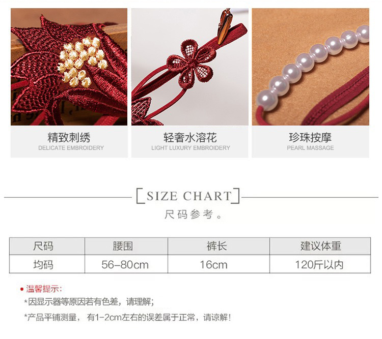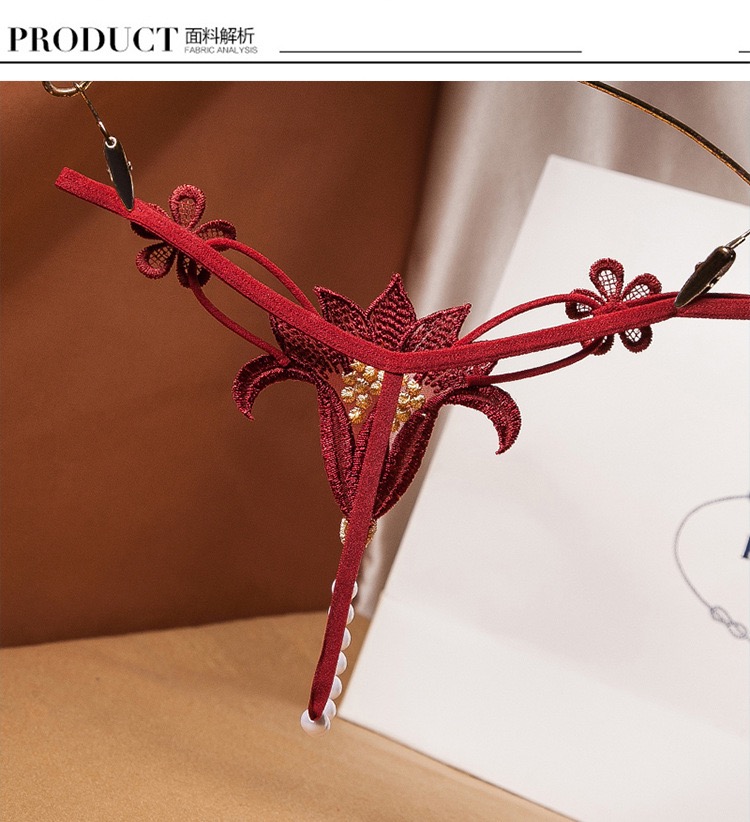 【双旦狂欢·钜惠来袭】【情趣内衣】性感刺绣珍珠 红色T裤 免脱