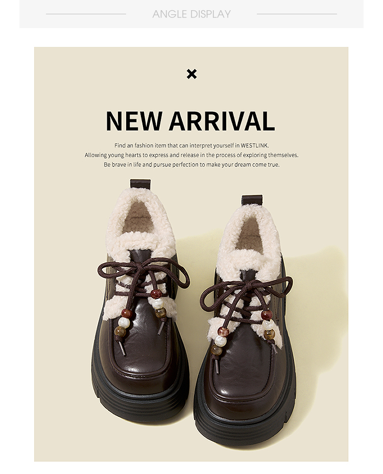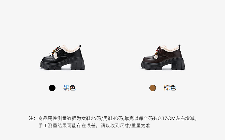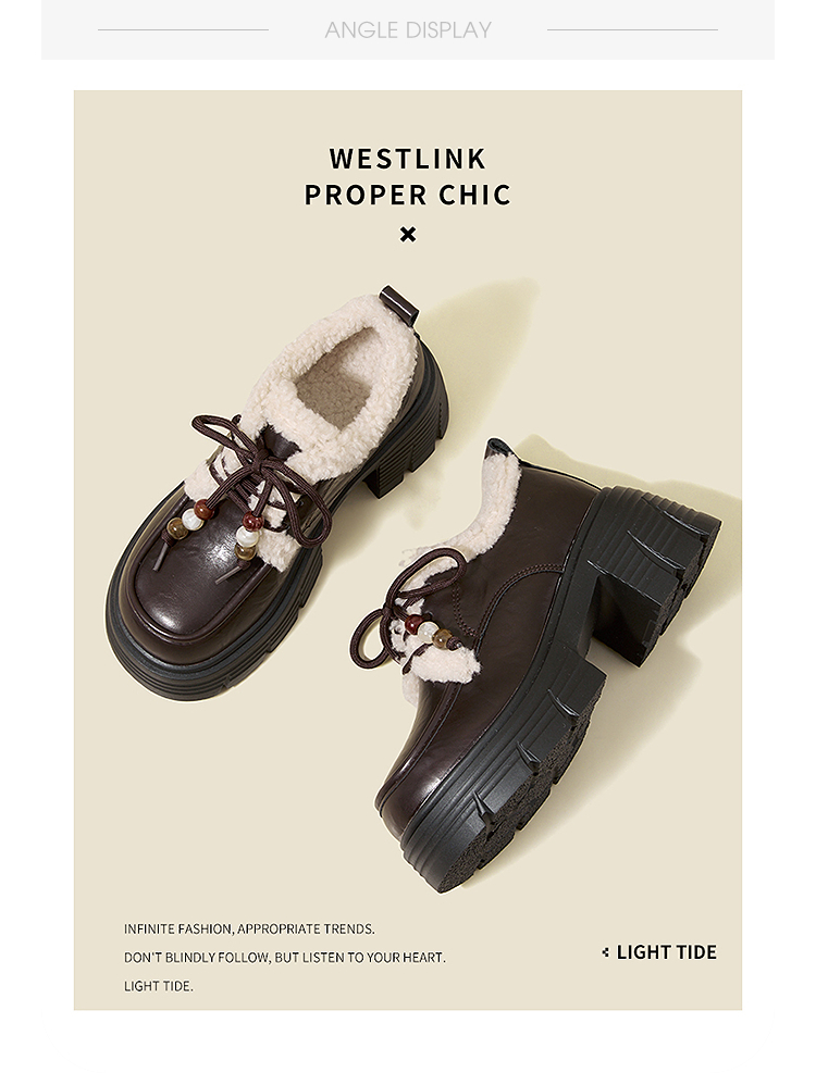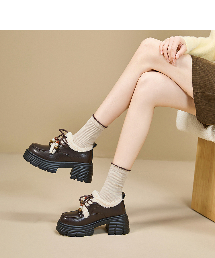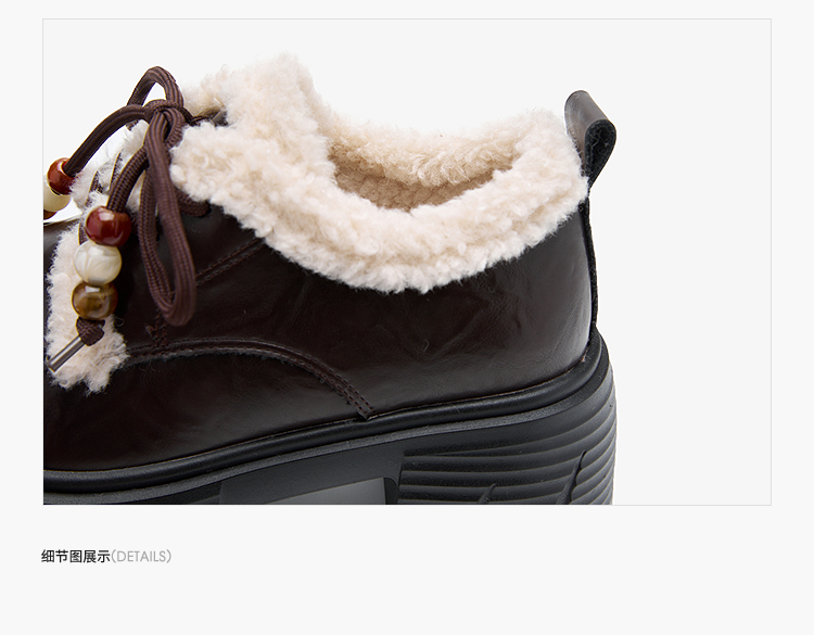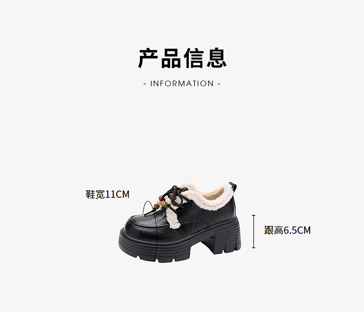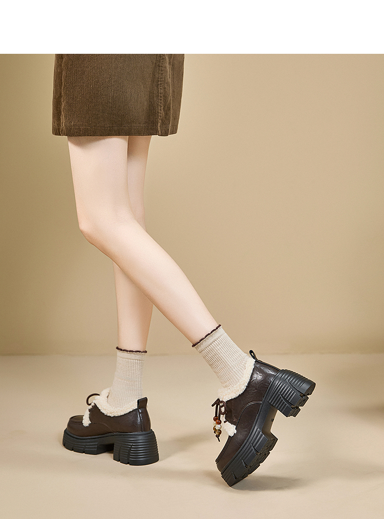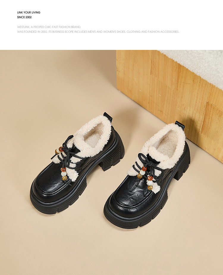 西遇厚底加绒乐福鞋女新款冬季外穿复古保暖棉鞋子系带小皮鞋V2457353