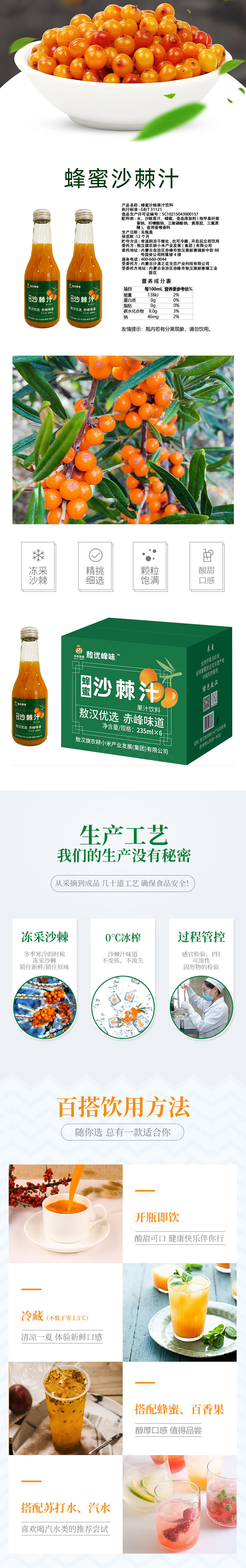 敖优峰味 蜂蜜沙棘汁235ml*6【XPTX】