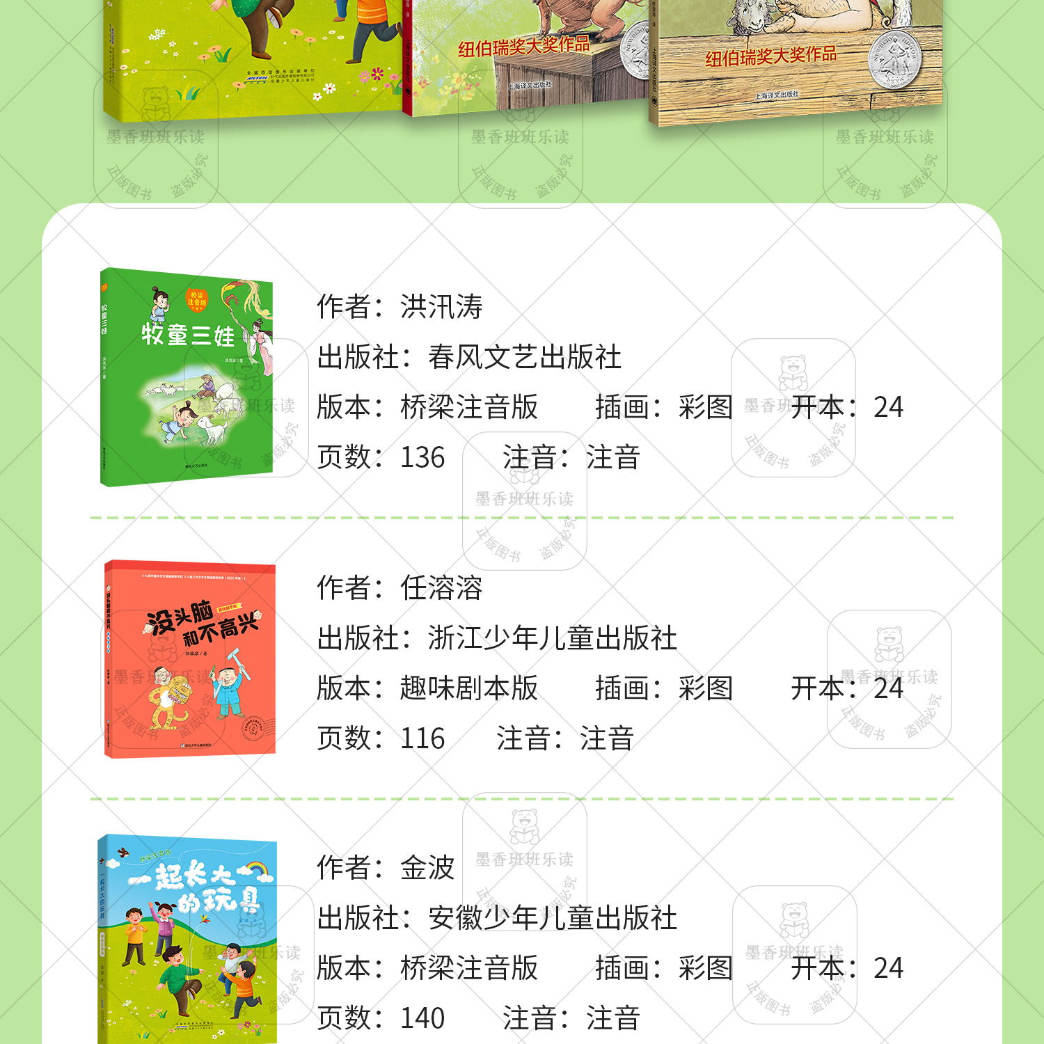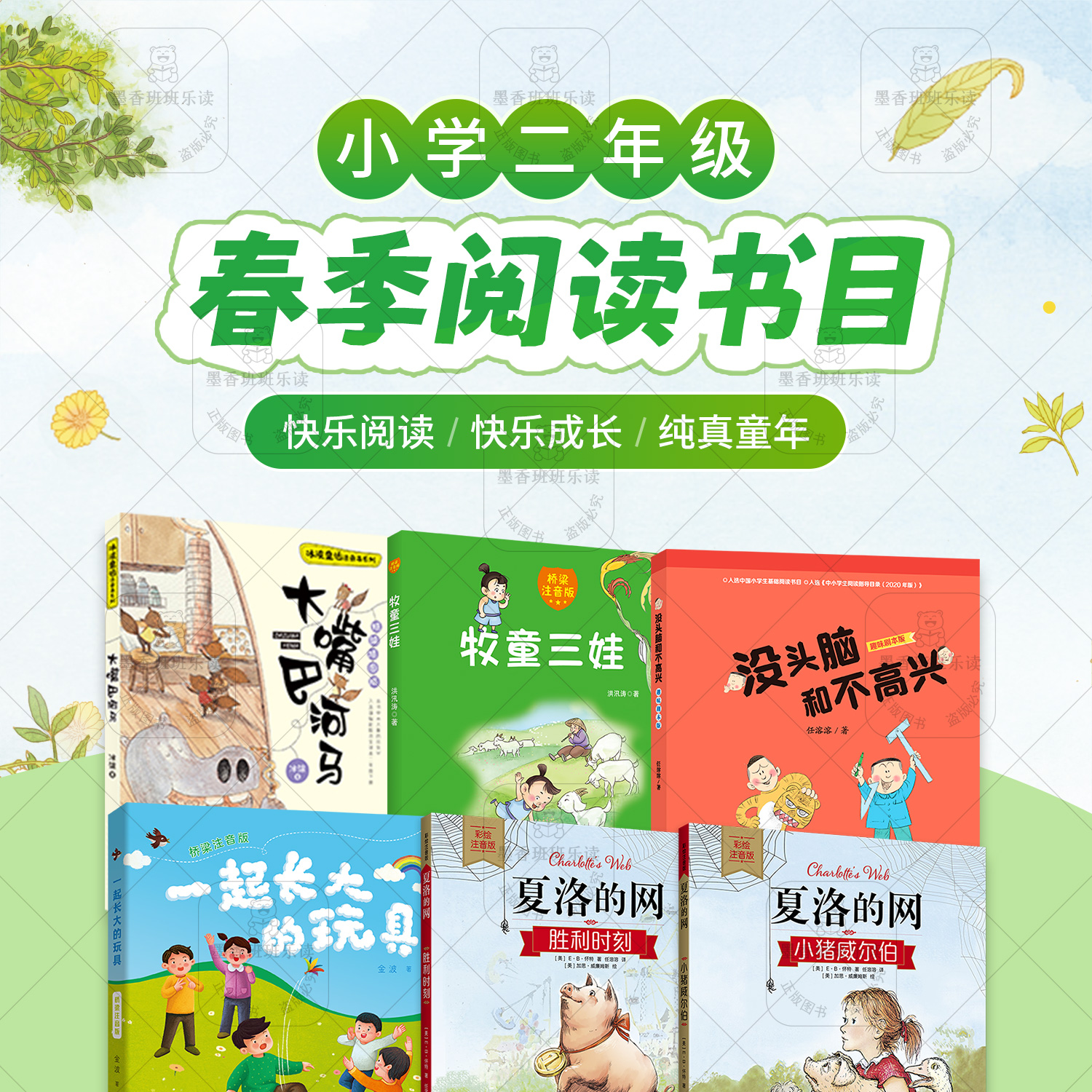 班班25春二年级《牧童三娃》《一起长大的玩具》《没头脑和不高兴》趣味剧本版《大嘴巴河马》《夏洛的网—小猪威尔伯》《夏洛的网—胜利时刻》+导读单