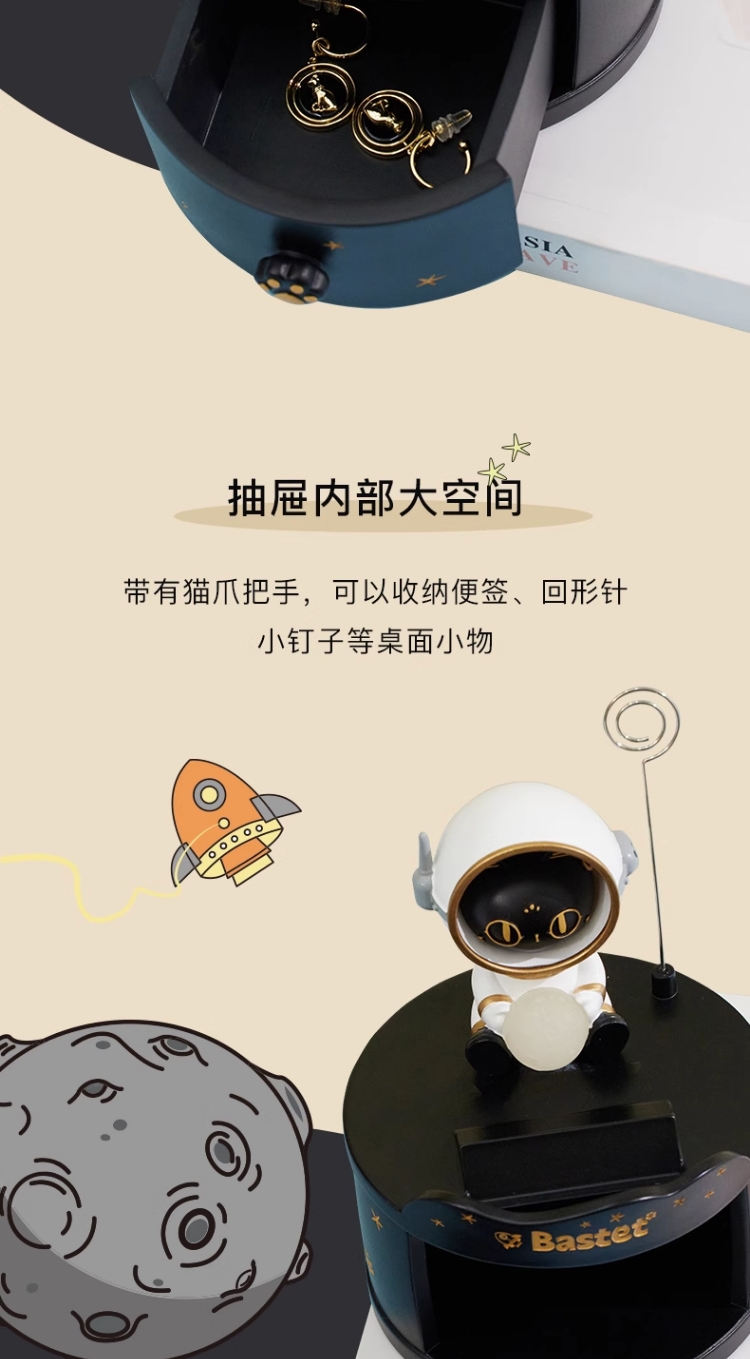 大英博物馆盖亚·安德森猫和她的朋友们系列 太空猫手机支架日历便签夹摆件