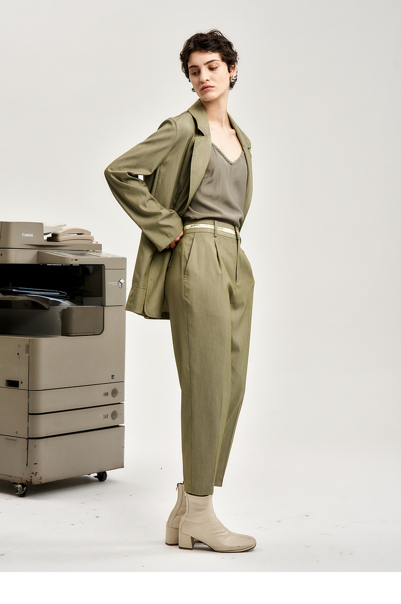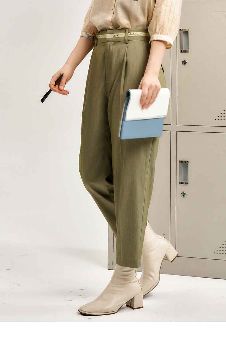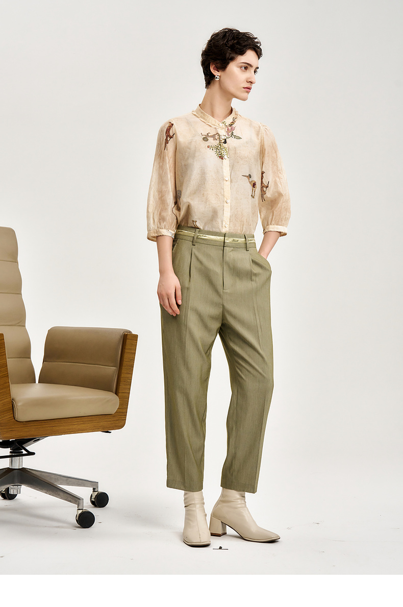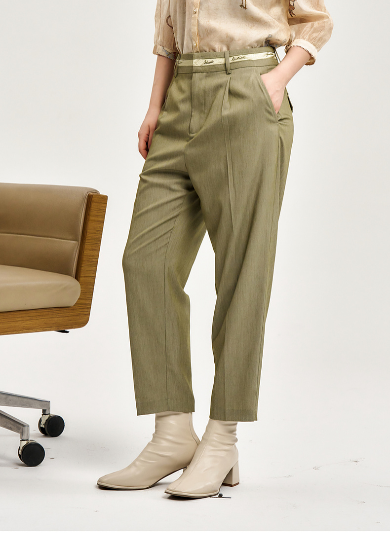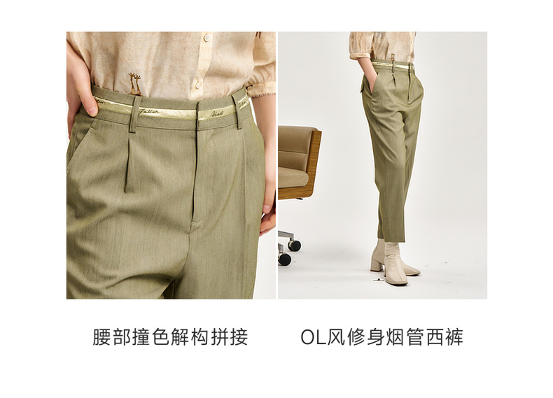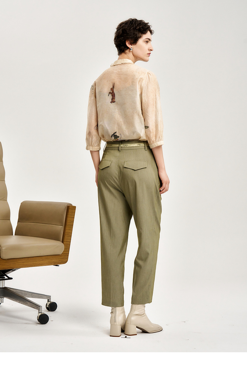 谜底休闲裤女2024秋款通勤风西裤极简休闲九分裤萝卜裤243MK1175