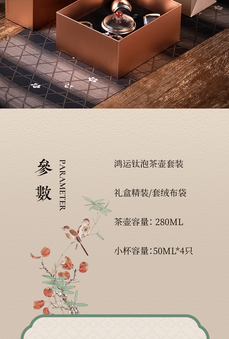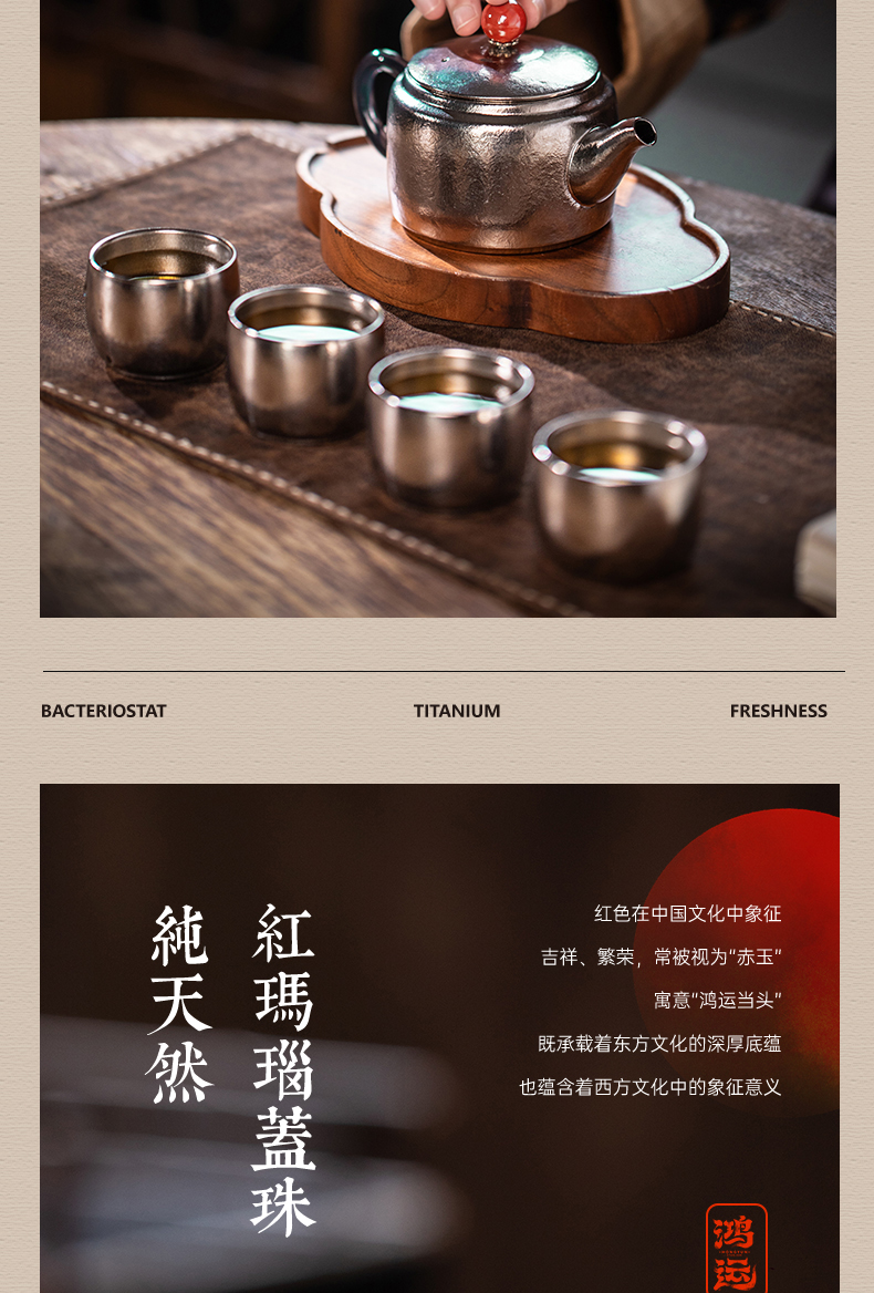 鹿岛纯钛茶具茶壶套装鸿运焖茶煮茶泡茶壶高档送礼礼盒鸿运钛壶套装