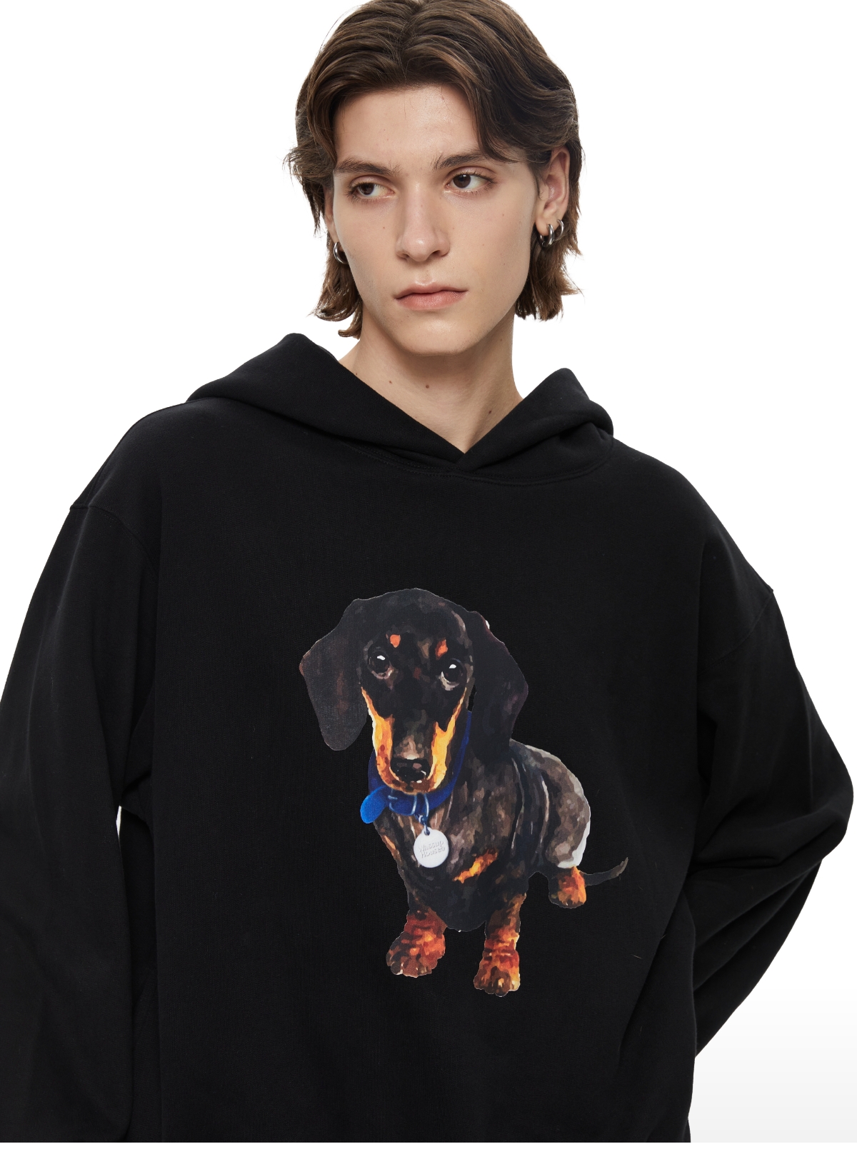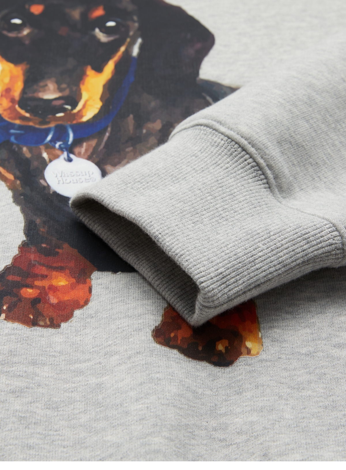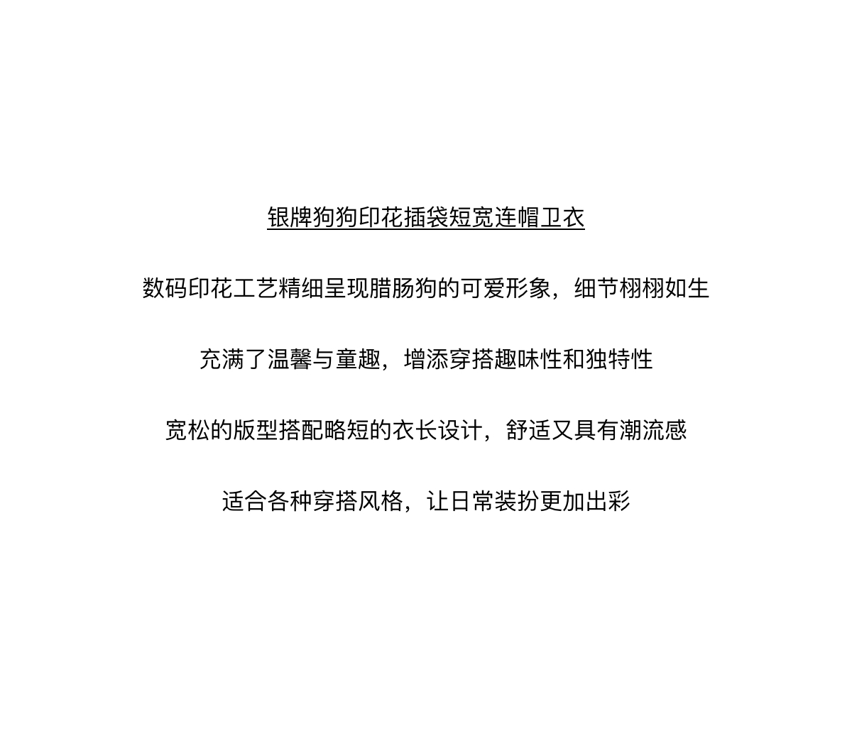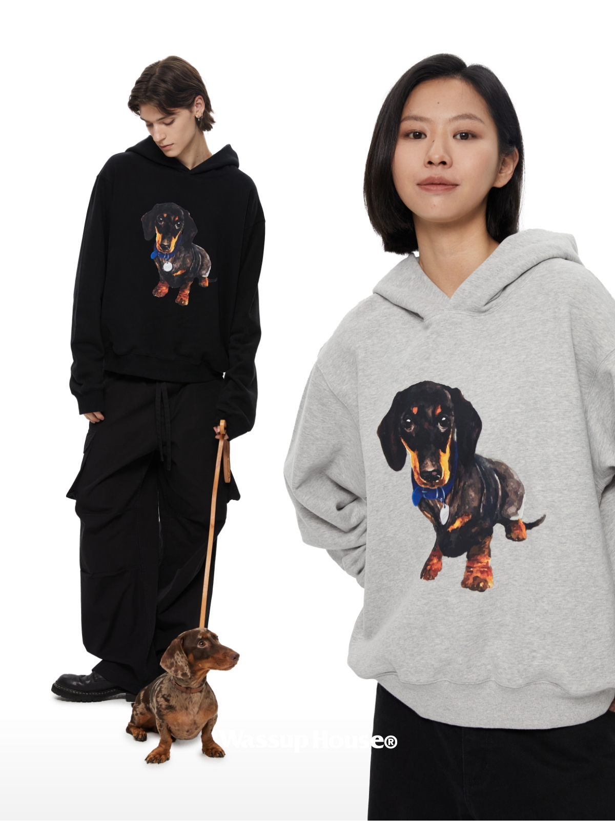 WassupHouse银牌狗狗印花插袋短宽连帽卫衣