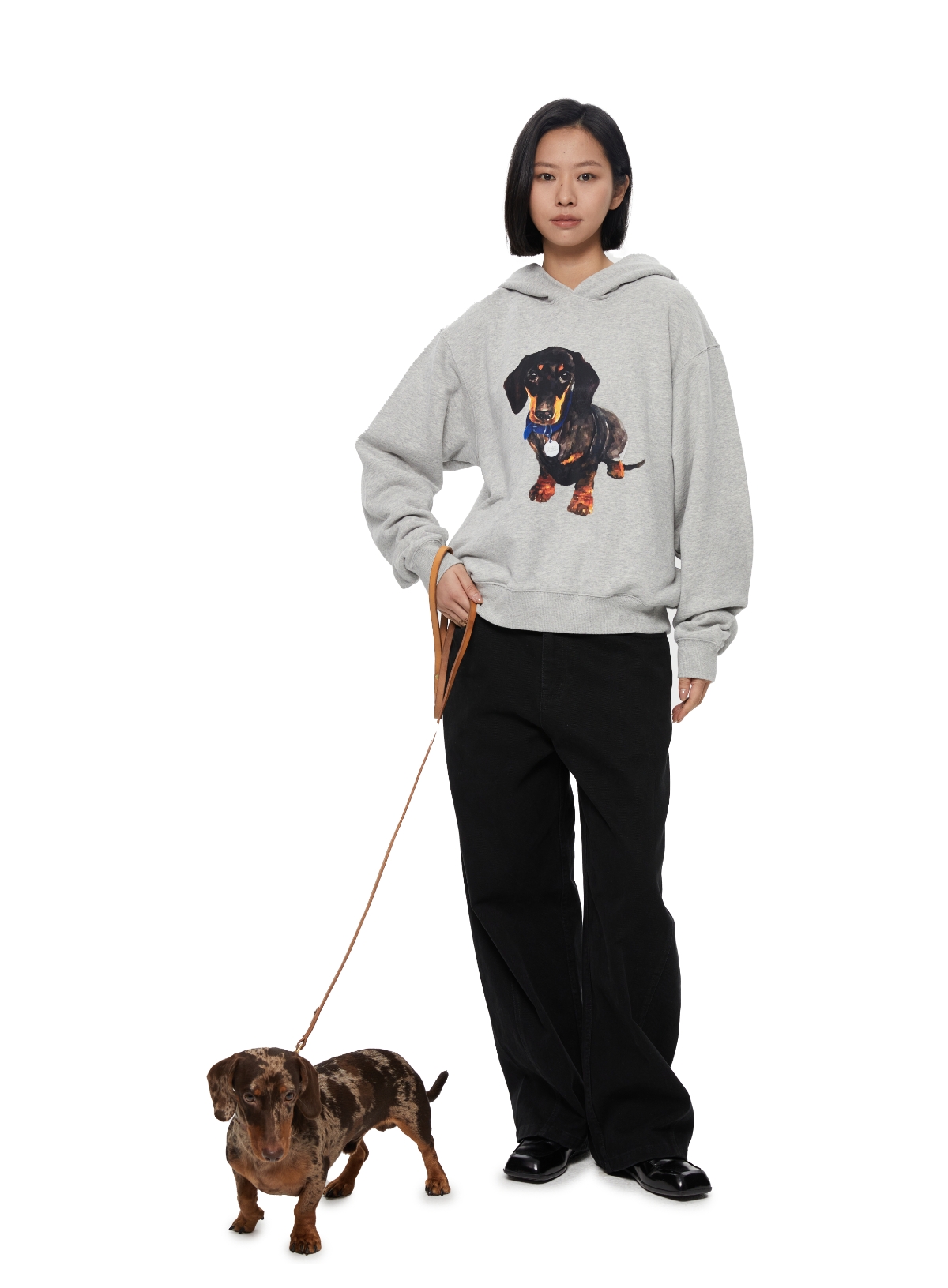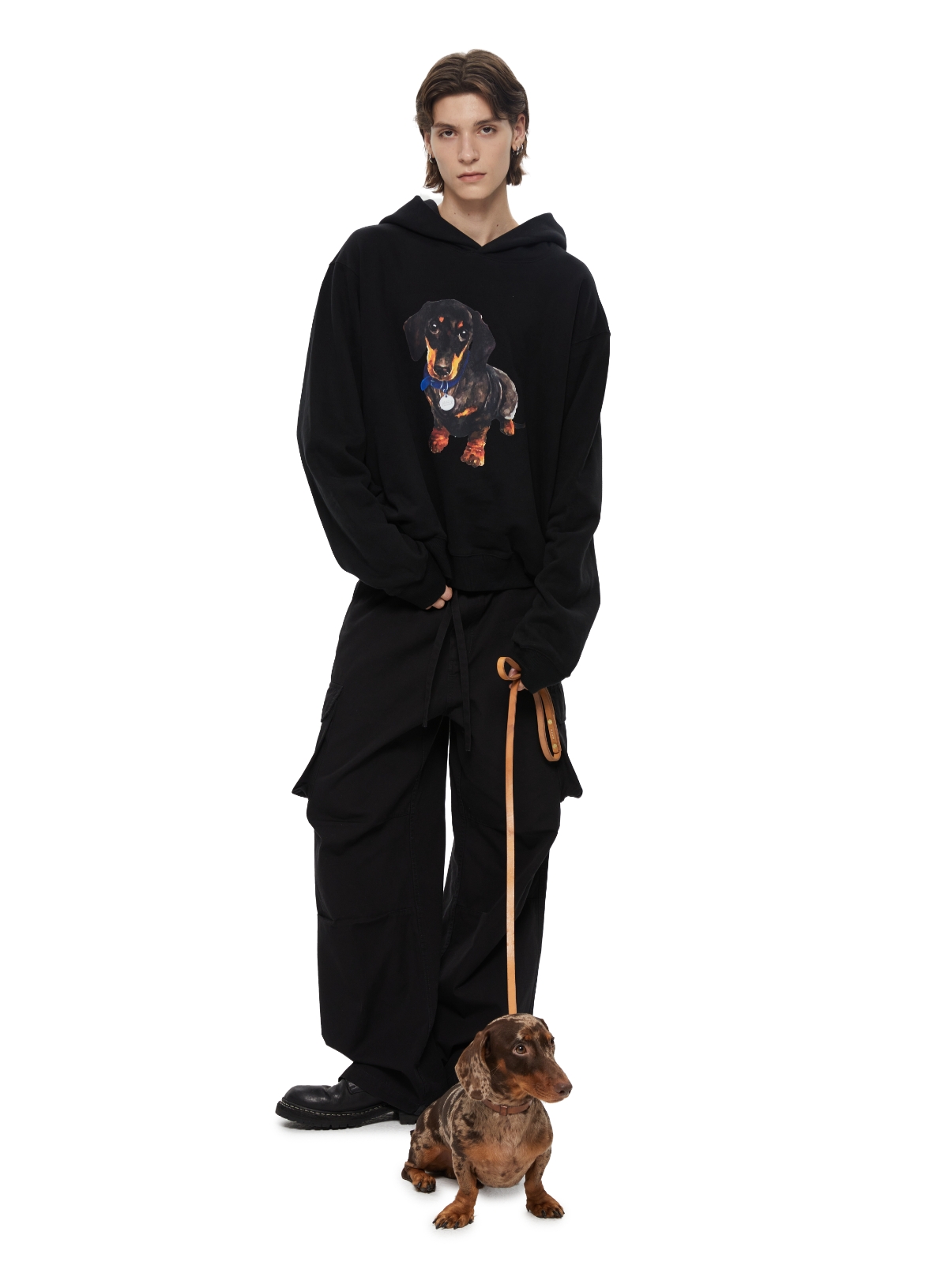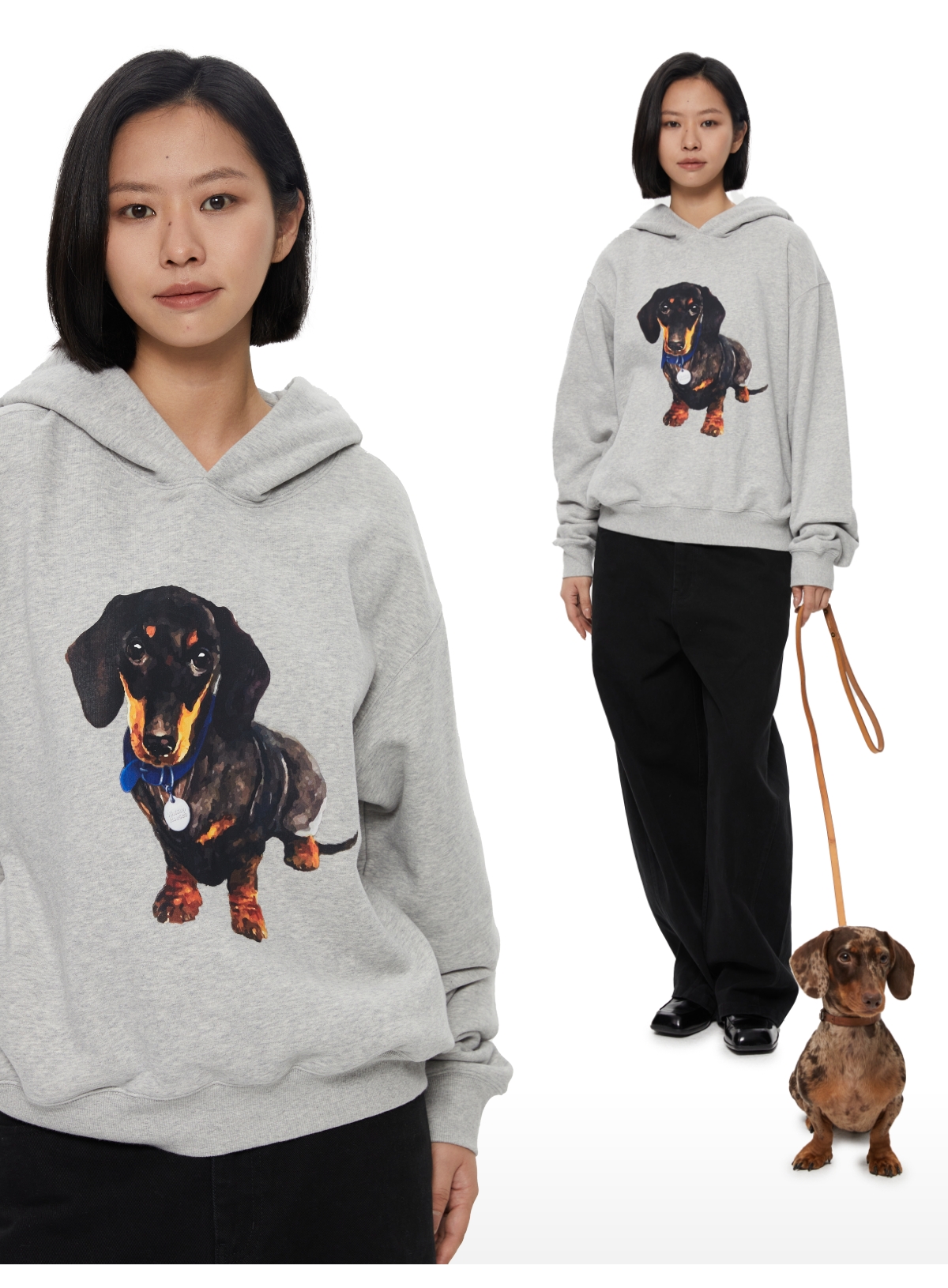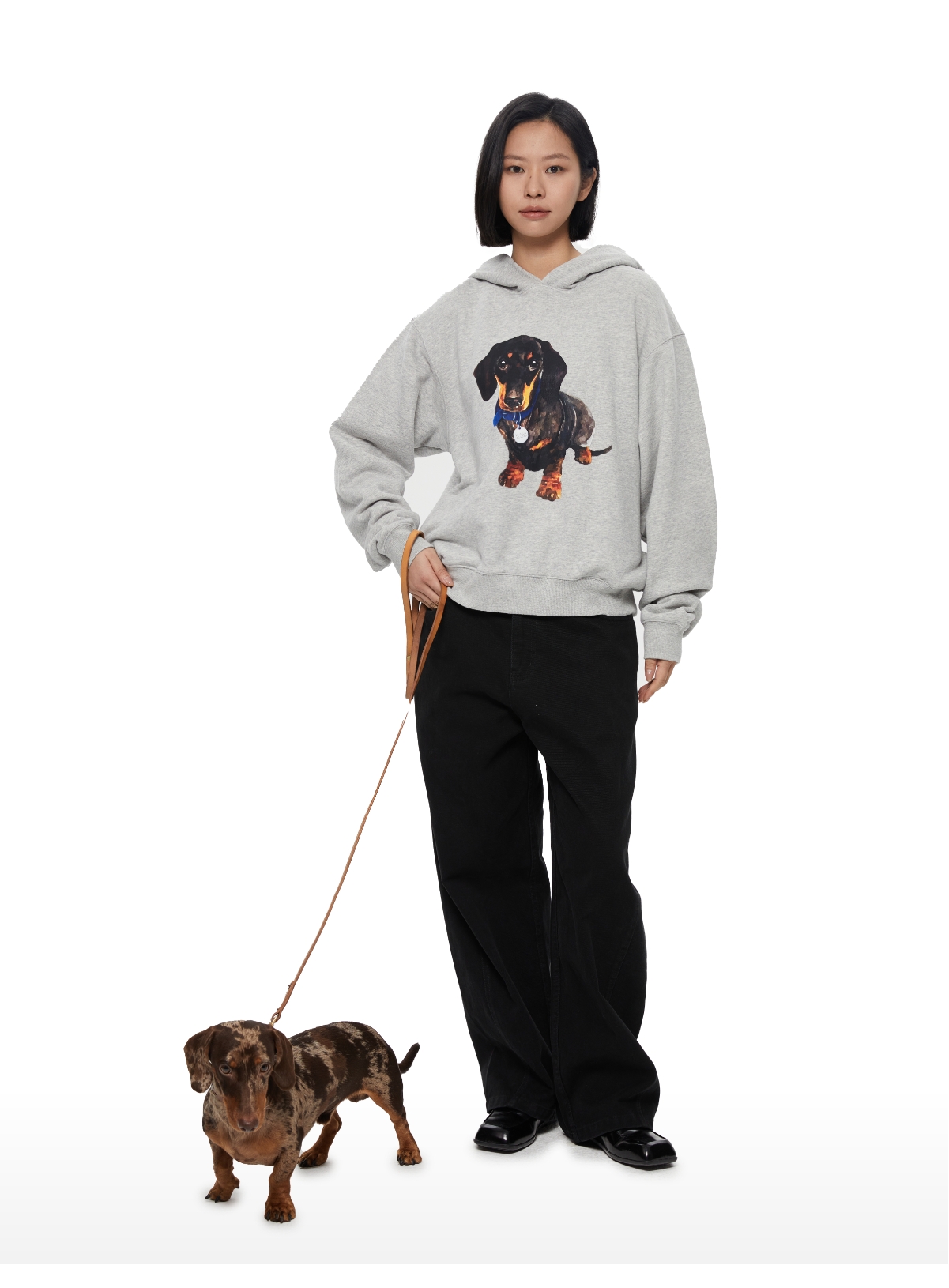 WassupHouse银牌狗狗印花插袋短宽连帽卫衣