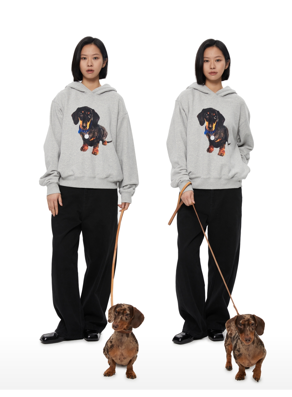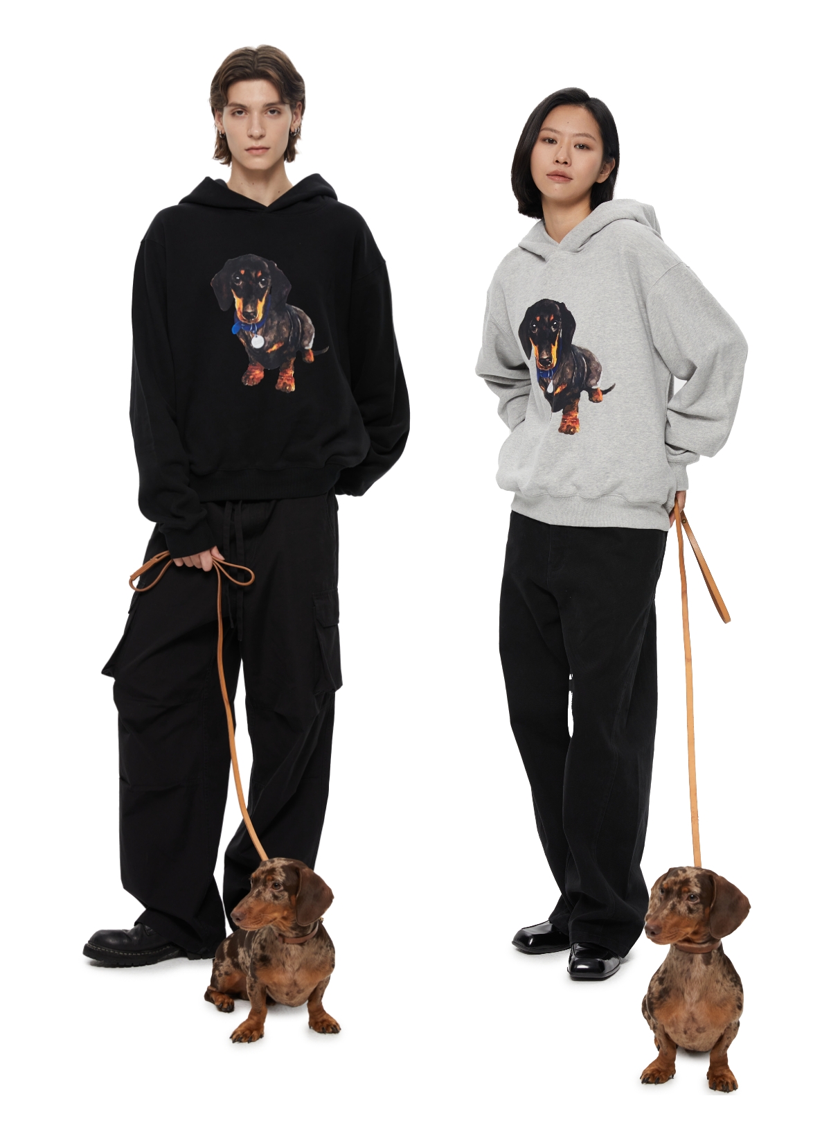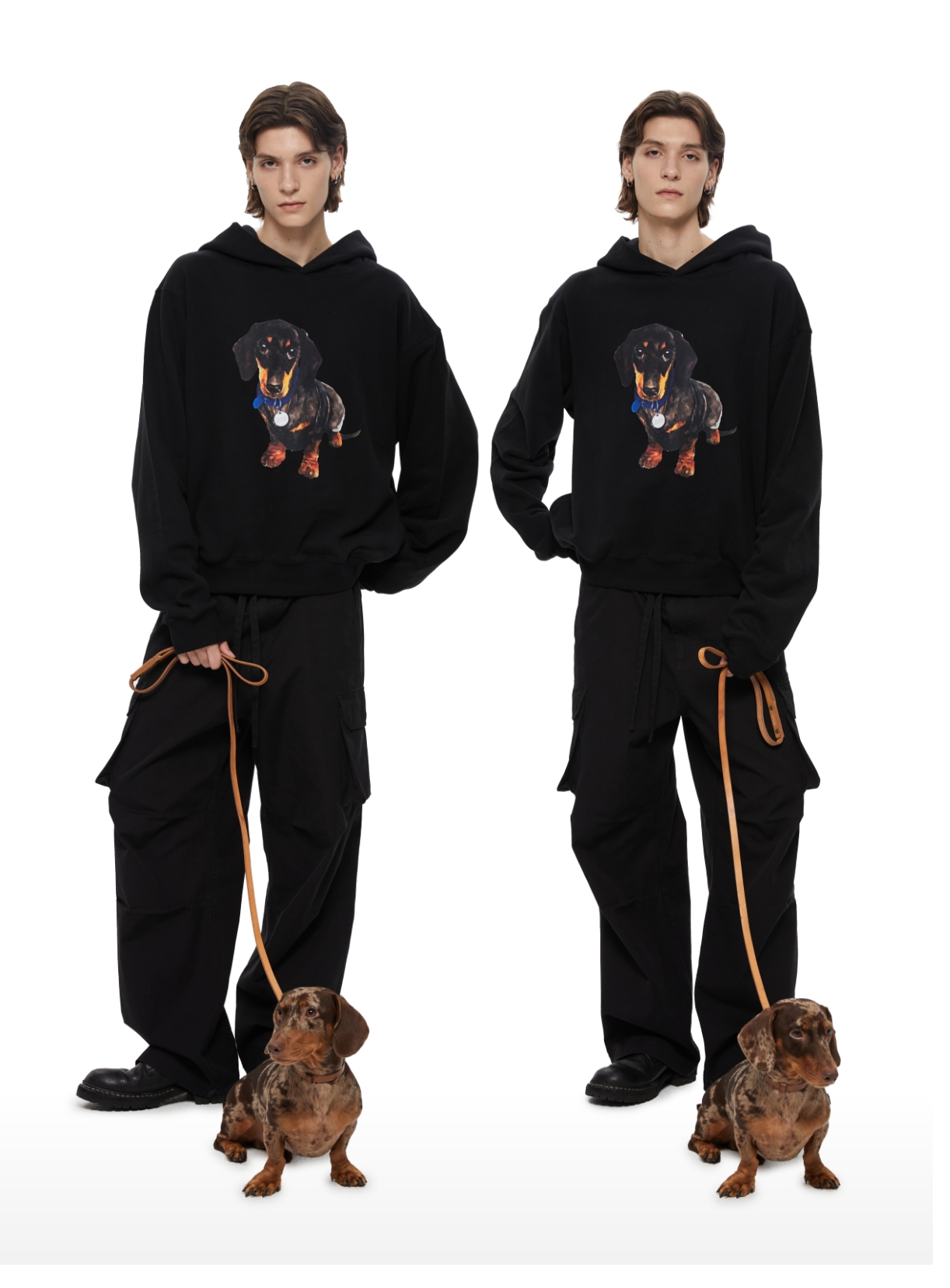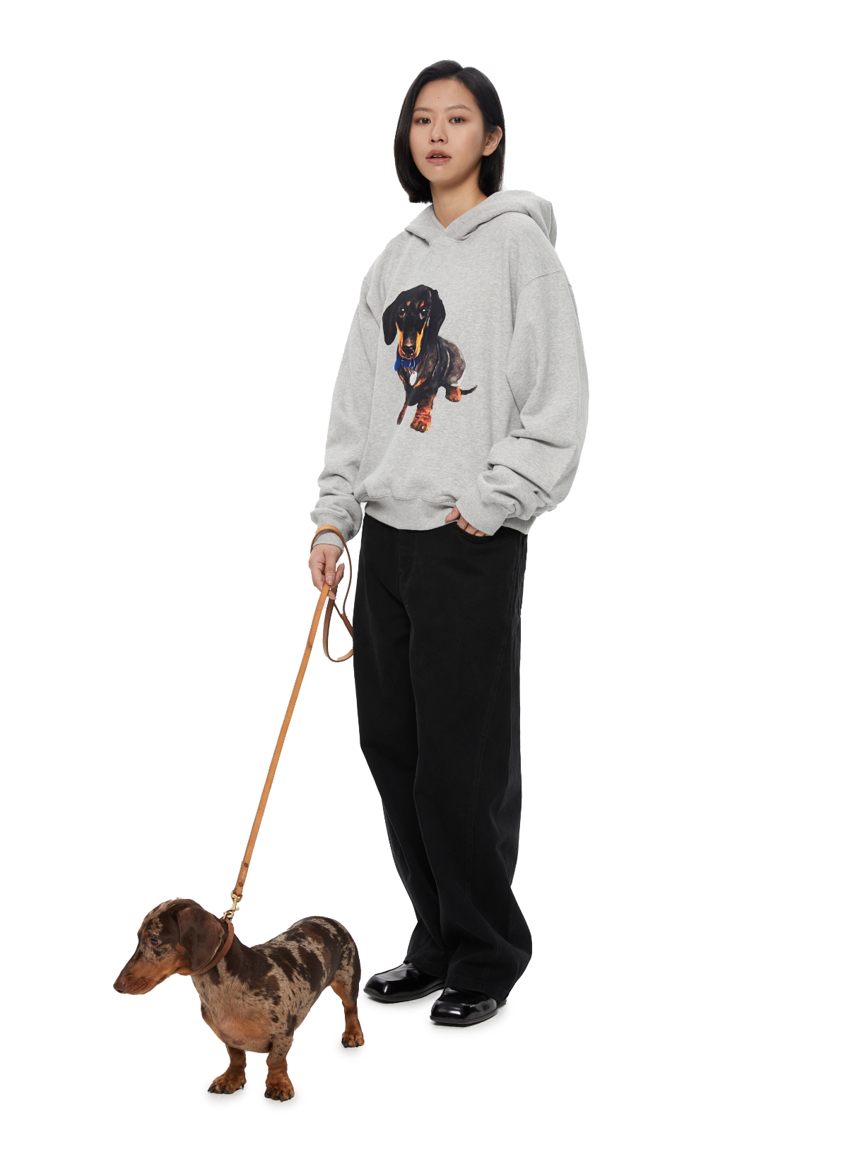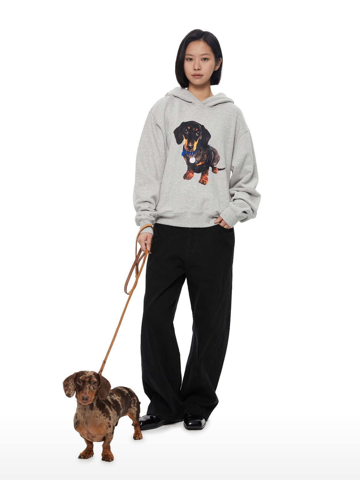 WassupHouse银牌狗狗印花插袋短宽连帽卫衣