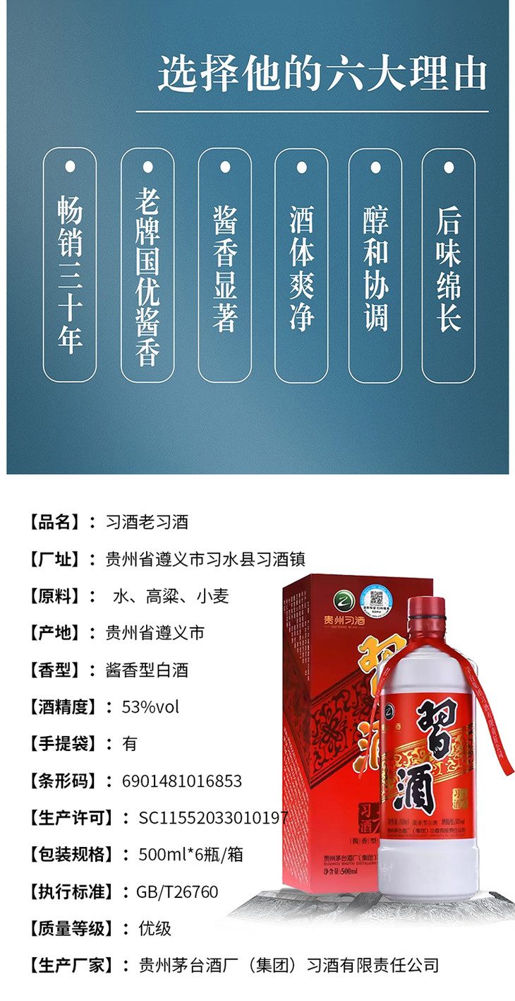 贵州习酒老习酒 53度酱香型白酒 整箱6瓶*500ml包邮