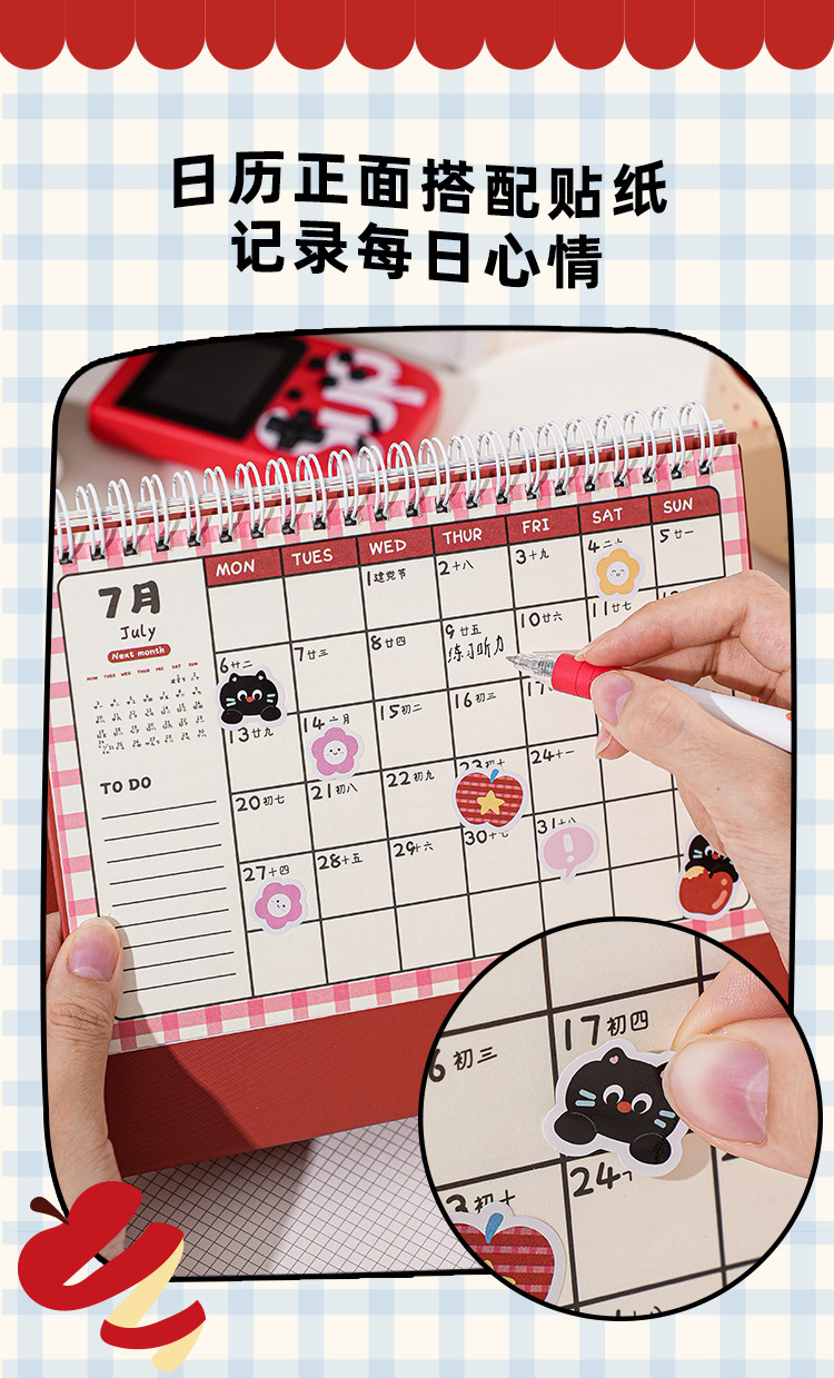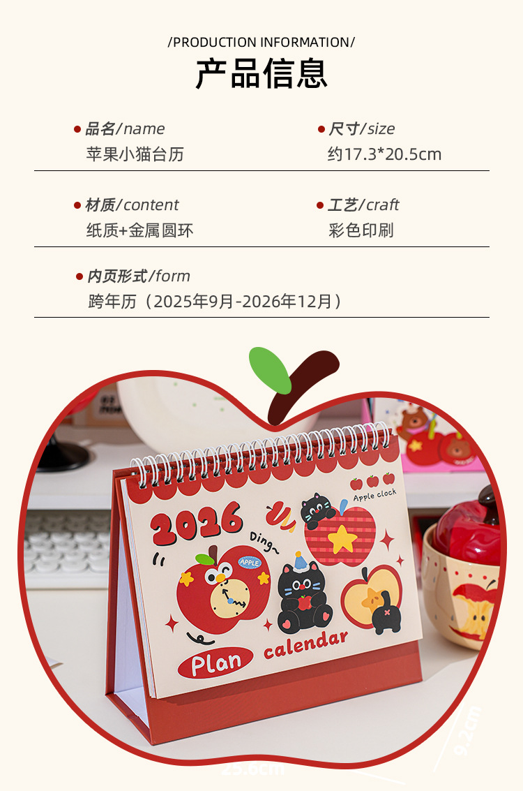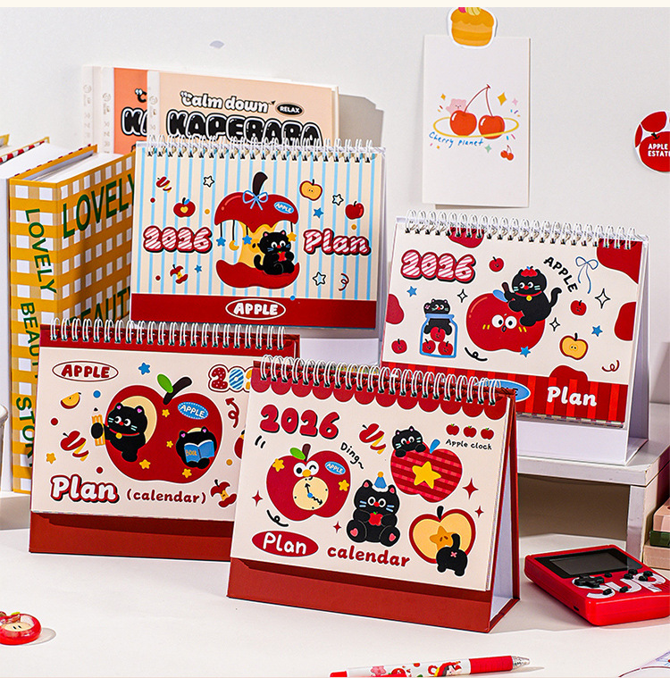 2026苹果小猫计划台历可爱卡通日历实用便携记事简约桌面小摆件