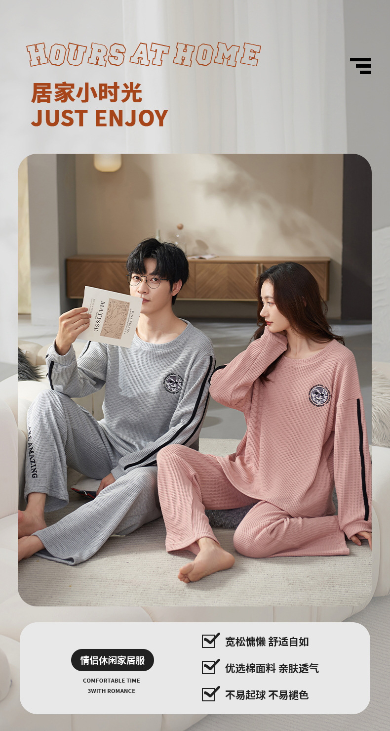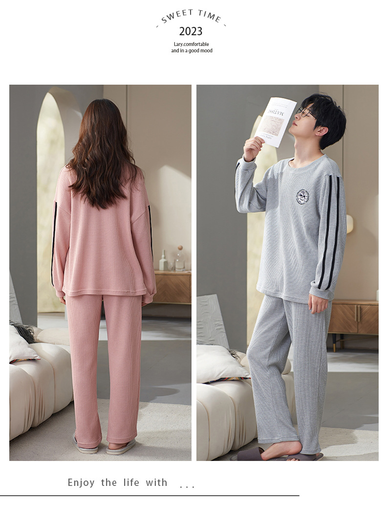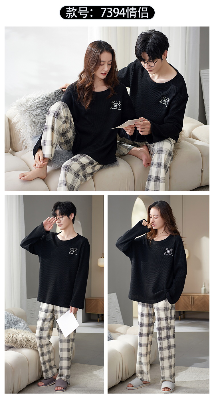 情侣睡衣春季长袖棉家居服可外穿女士韩版可爱清新学生秋冬薄款男