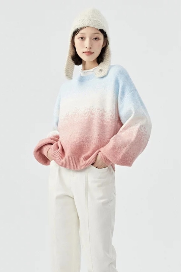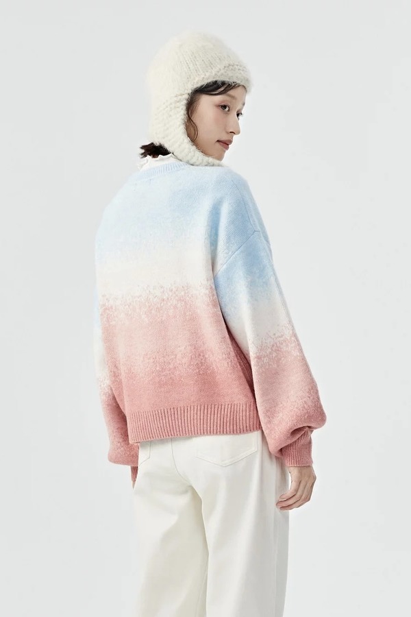 SEM/R森马 粉色条纹渐变灯笼袖毛衣 15333