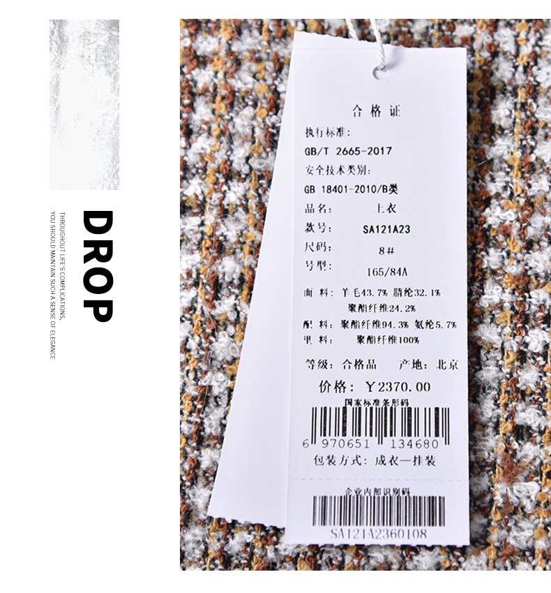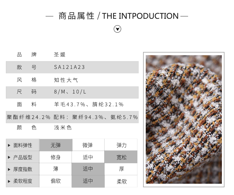 圣三利女装 气质优雅粗纺箱型外套SL121A23