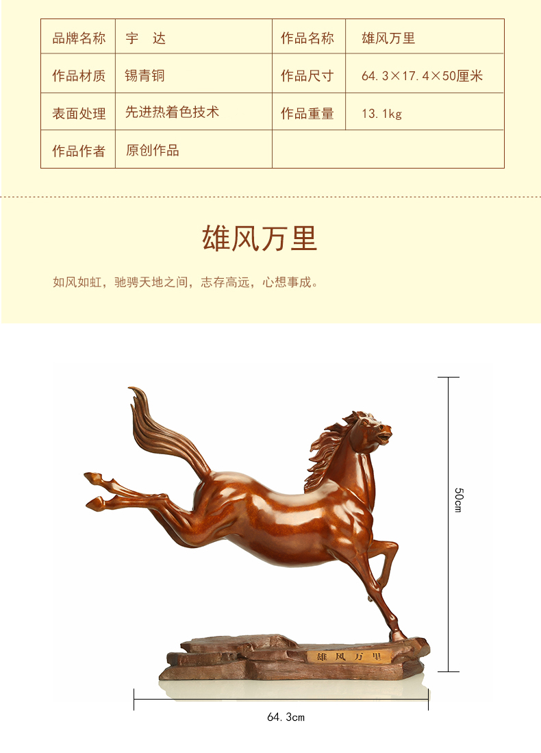 宇达青铜全铜马摆件《雄风万里》十二生肖 创意装饰 家居工艺摆件 高50cm