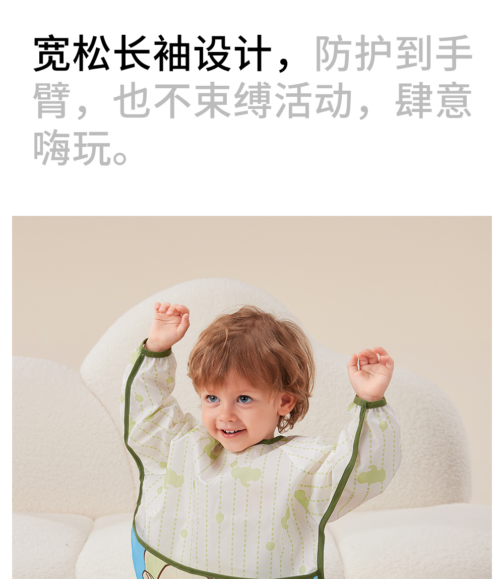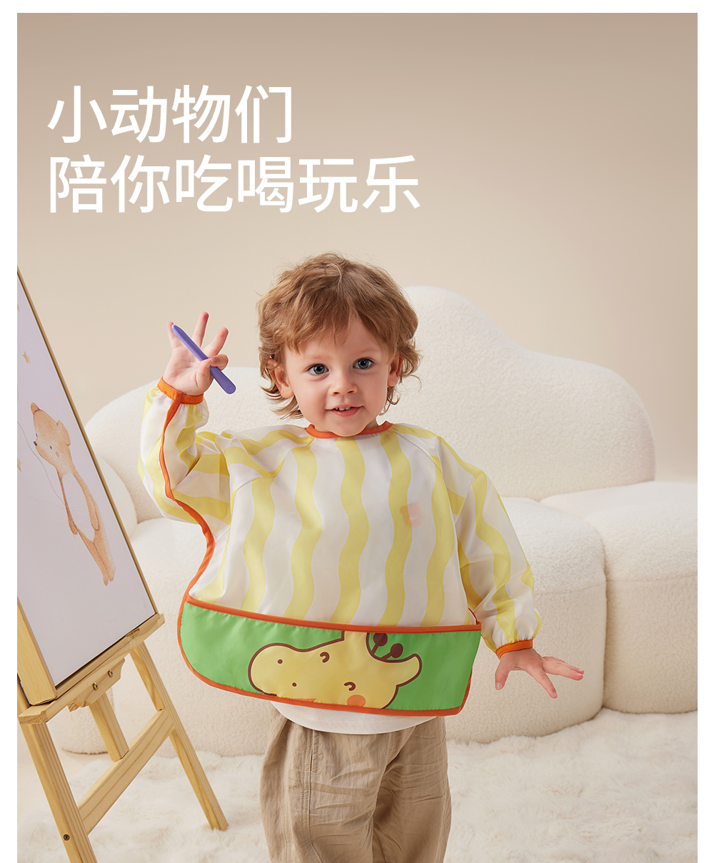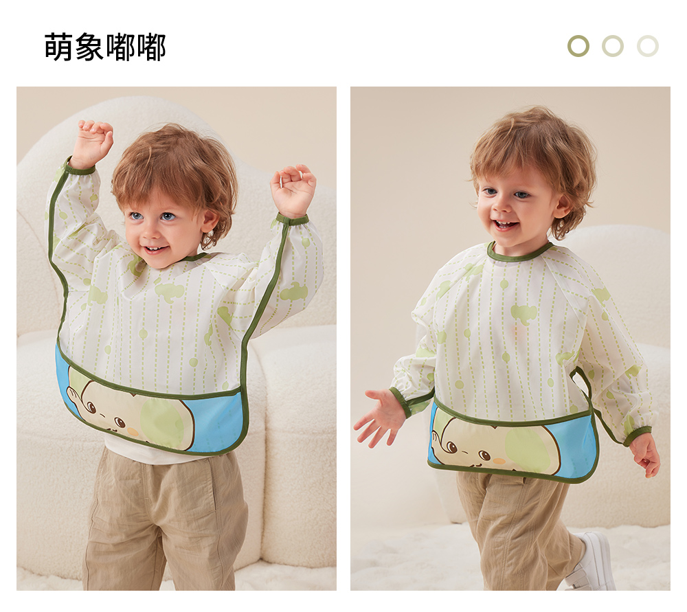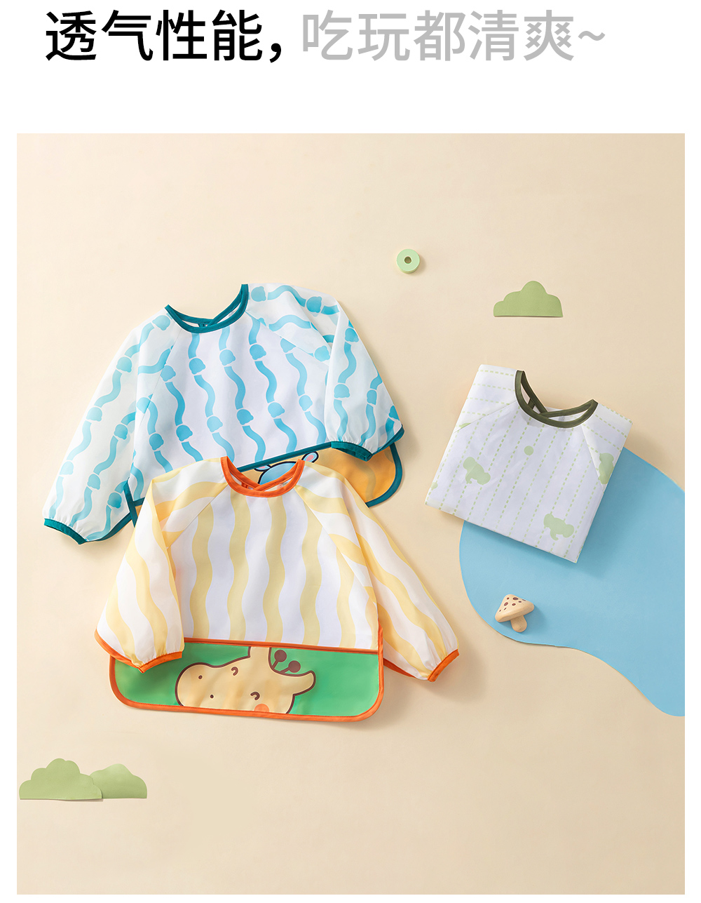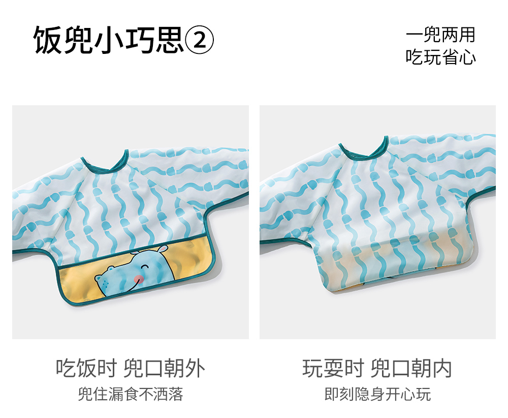 贝肽斯宝宝吃饭围兜婴儿辅食饭兜幼儿园防水罩衣反穿衣围裙防脏