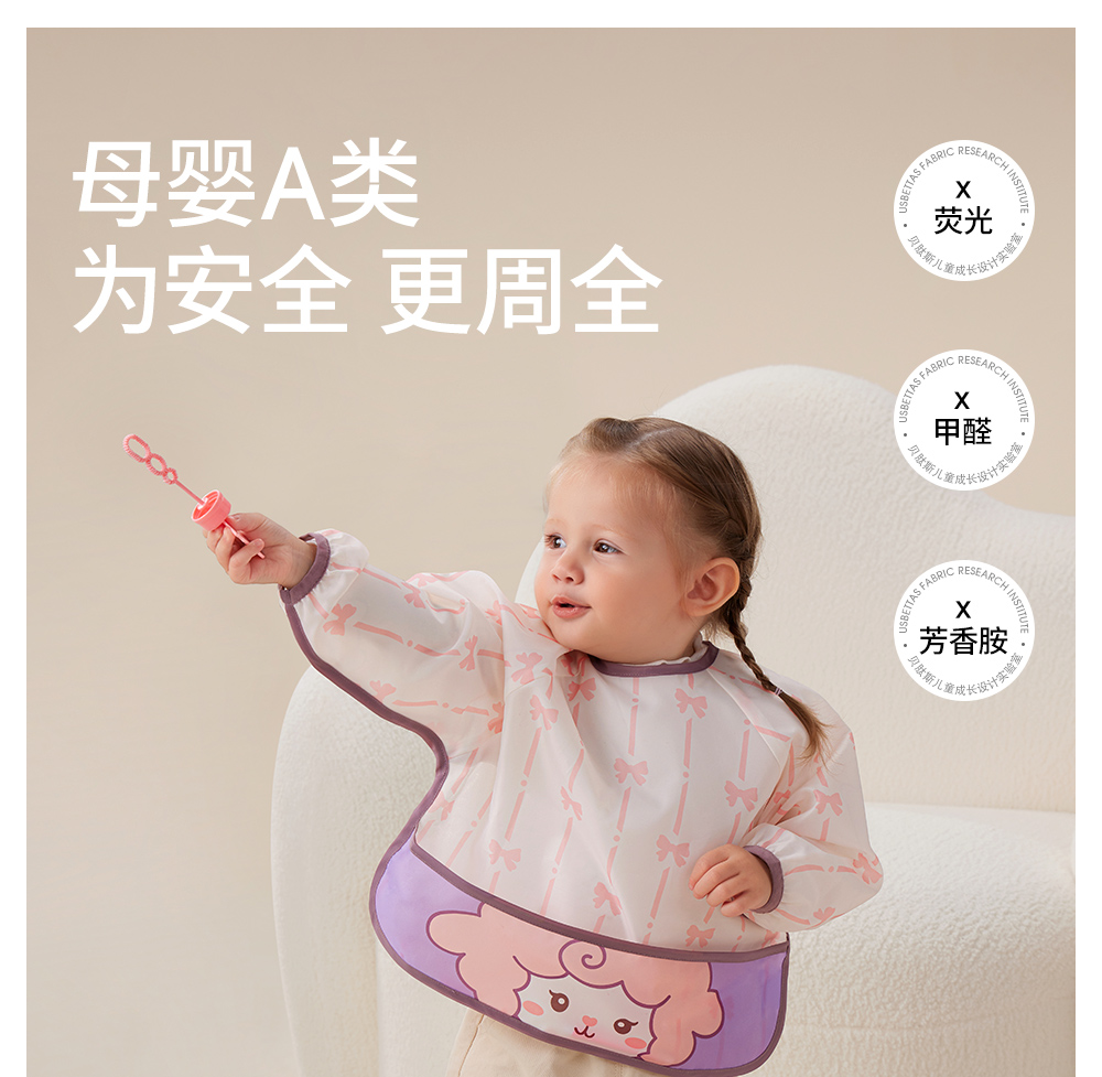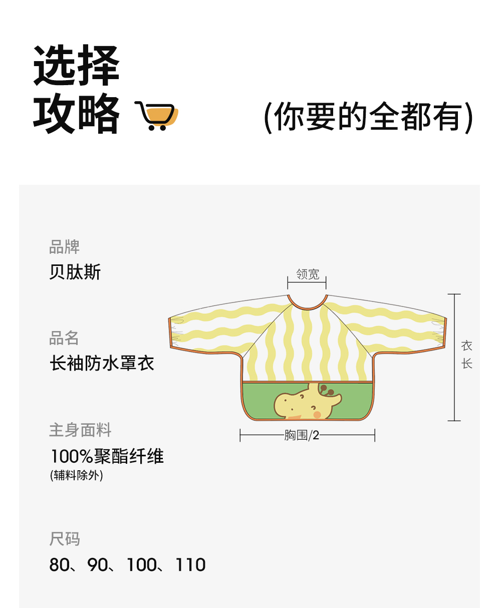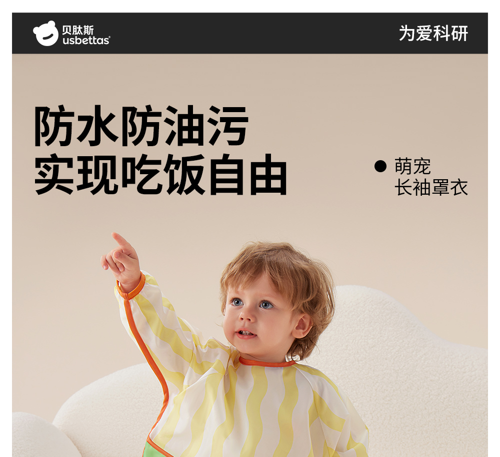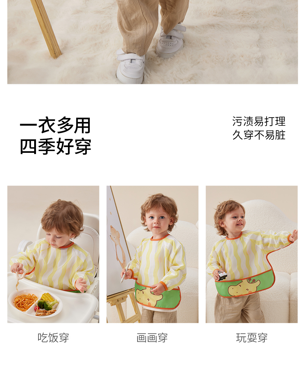贝肽斯宝宝吃饭围兜婴儿辅食饭兜幼儿园防水罩衣反穿衣围裙防脏