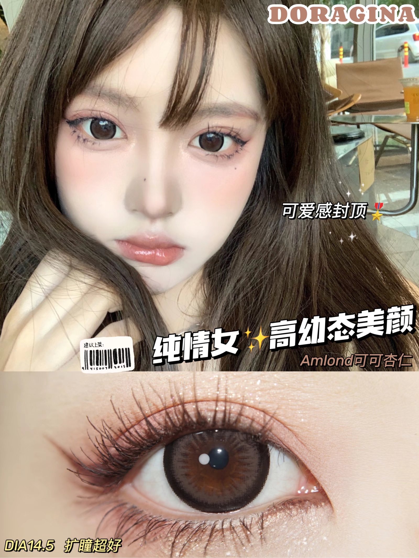 【年抛和日抛双版本】可可杏仁Doragina| 大直径14.5,着色13.9 | 【同品牌多副更划算,选款完整色板在详情页】狗狗眼美瞳