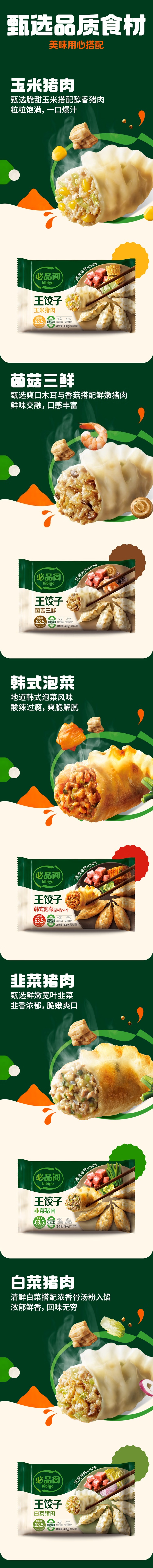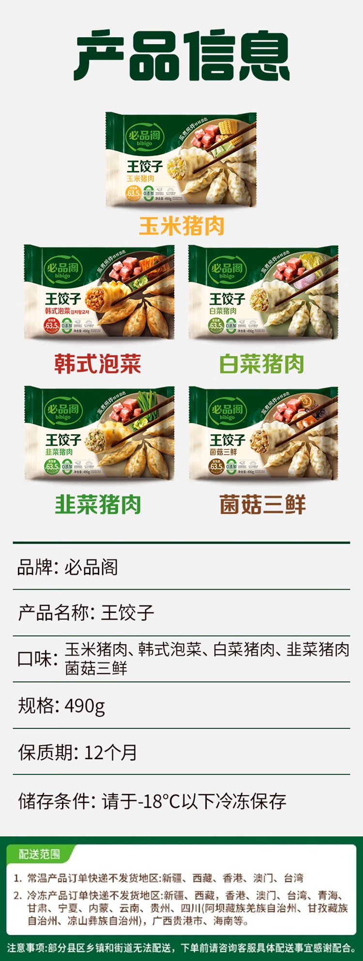 必品阁王饺子490g*6【玉米猪肉*2+白菜猪肉+菌菇三鲜+韭菜猪肉+韩式泡菜】