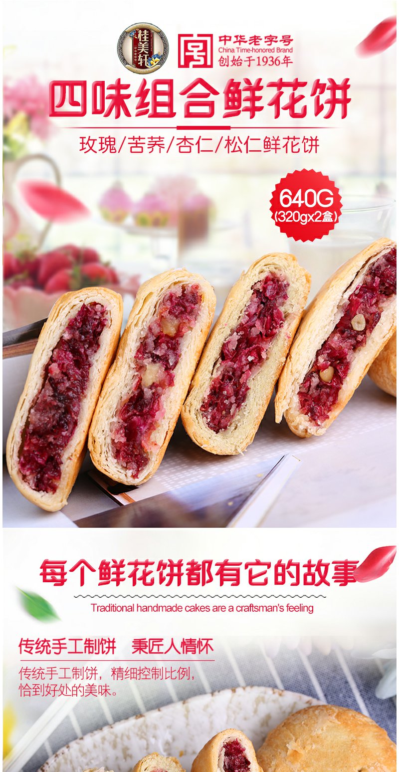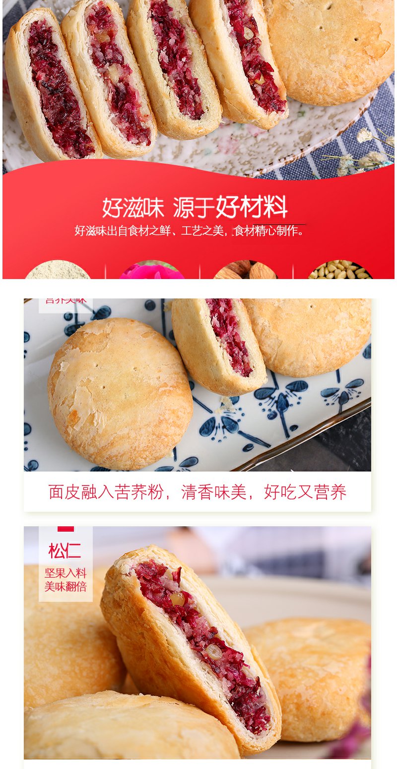 云南老字号特产鲜花饼640g组合松仁杏仁苦荞玫瑰饼糕点小吃零食