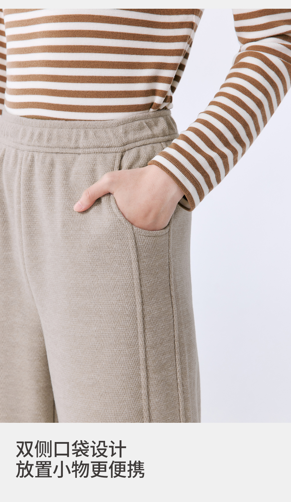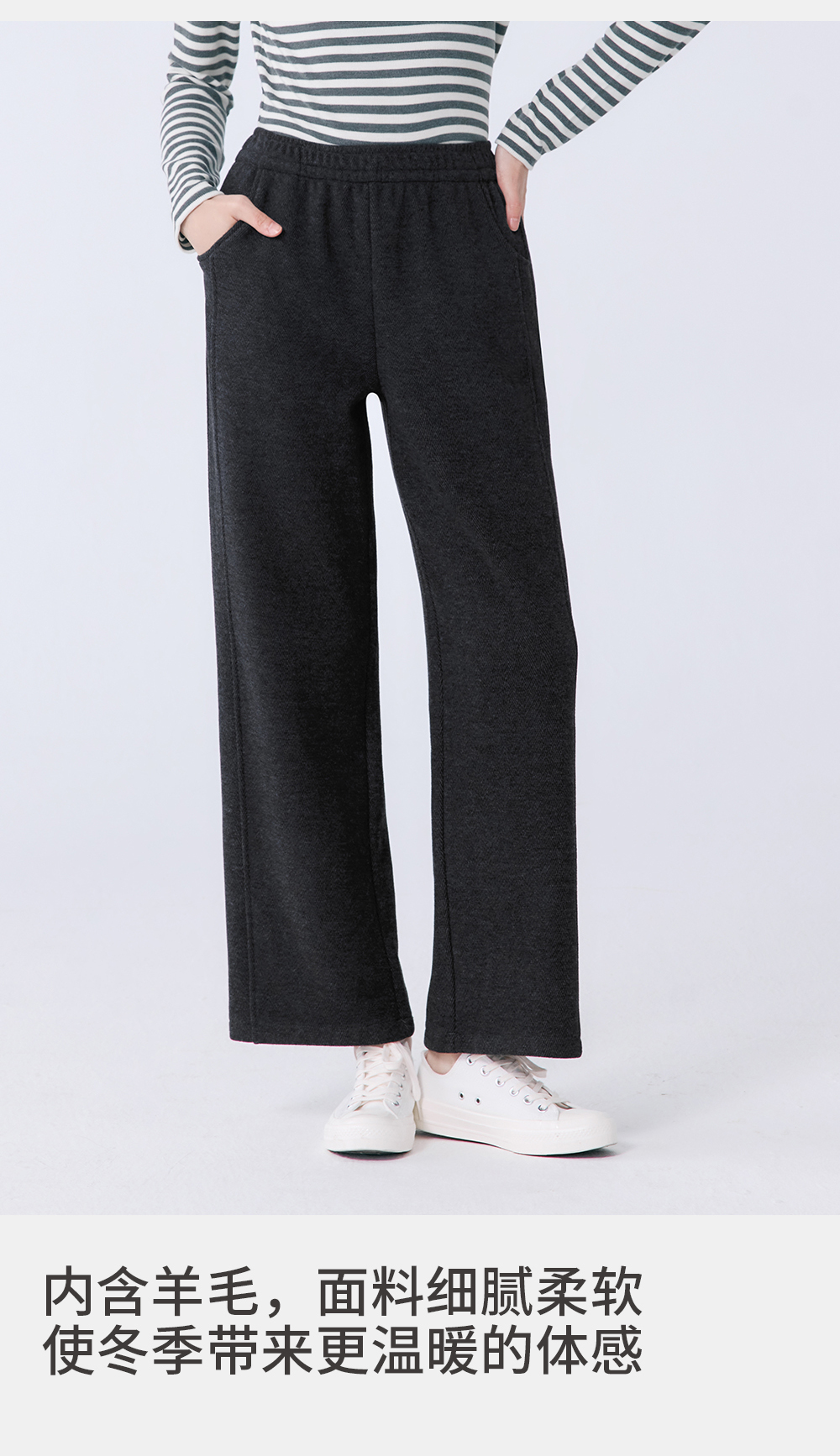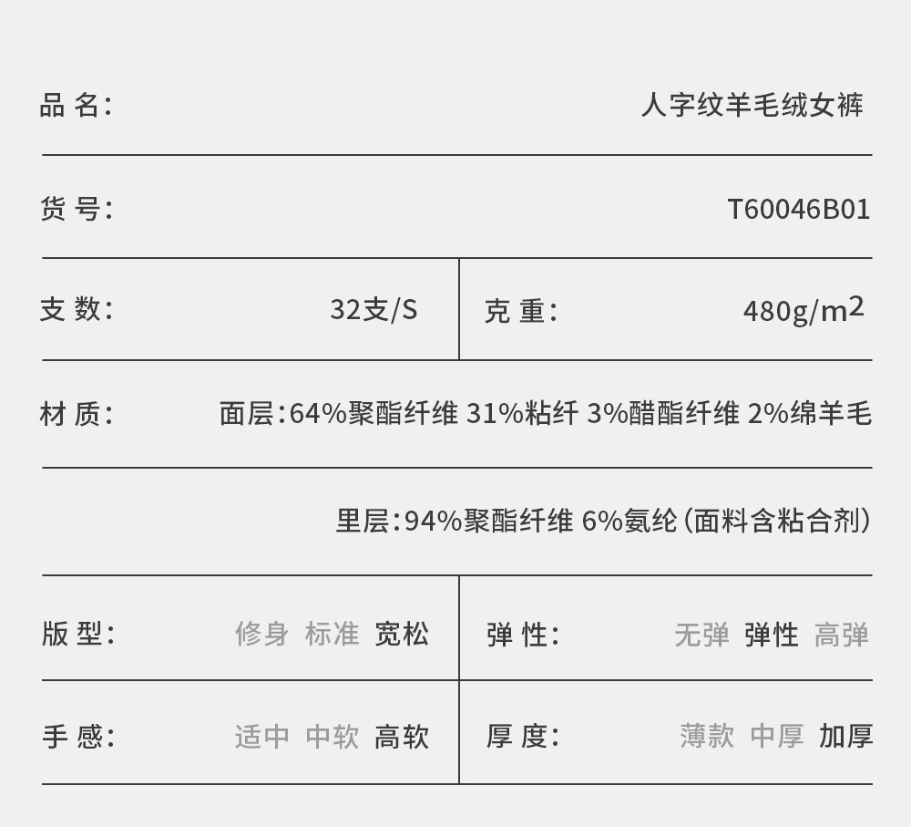 Threegun三枪 人字纹羊毛绒女裤-T60046B01
