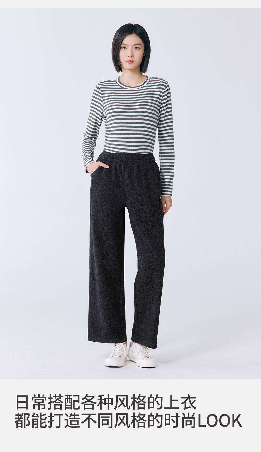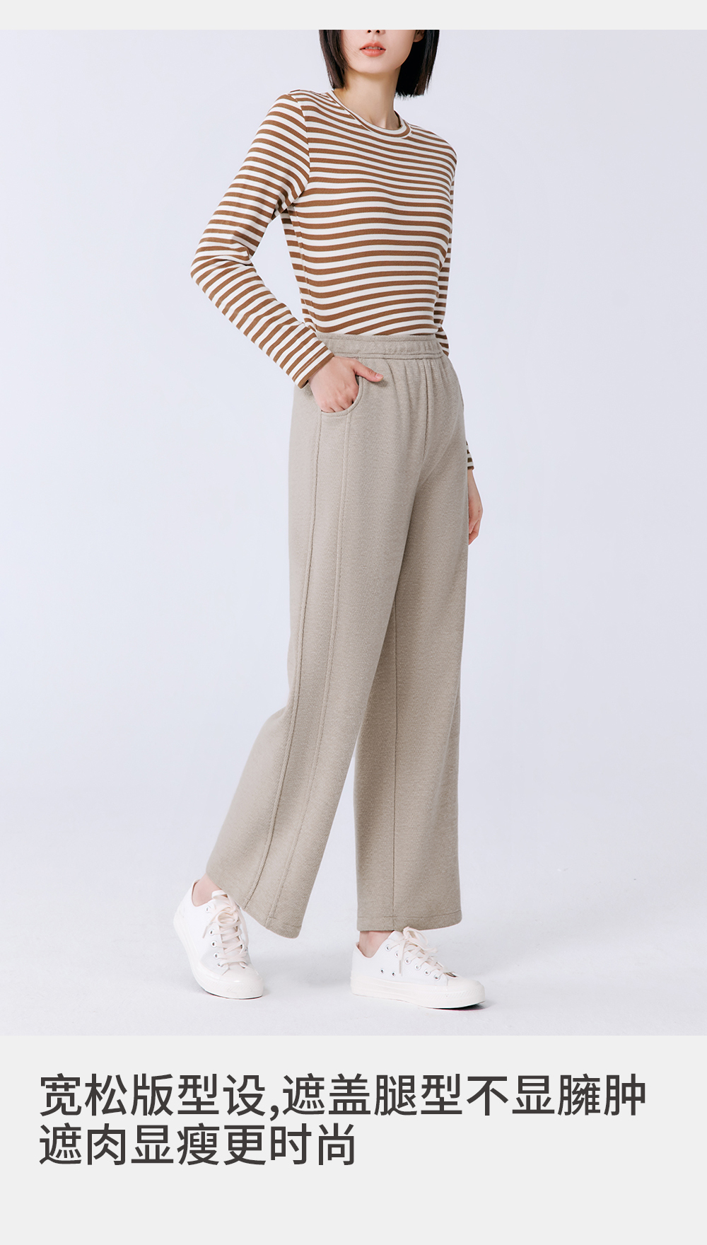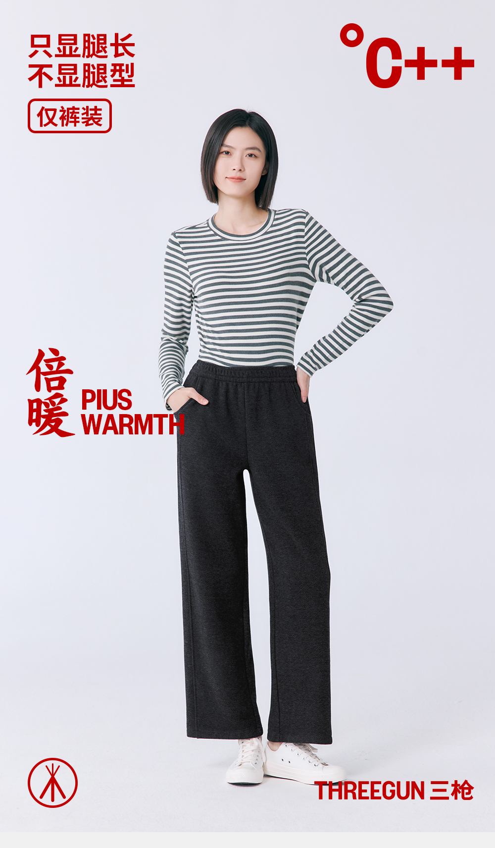 Threegun三枪 人字纹羊毛绒女裤-T60046B01