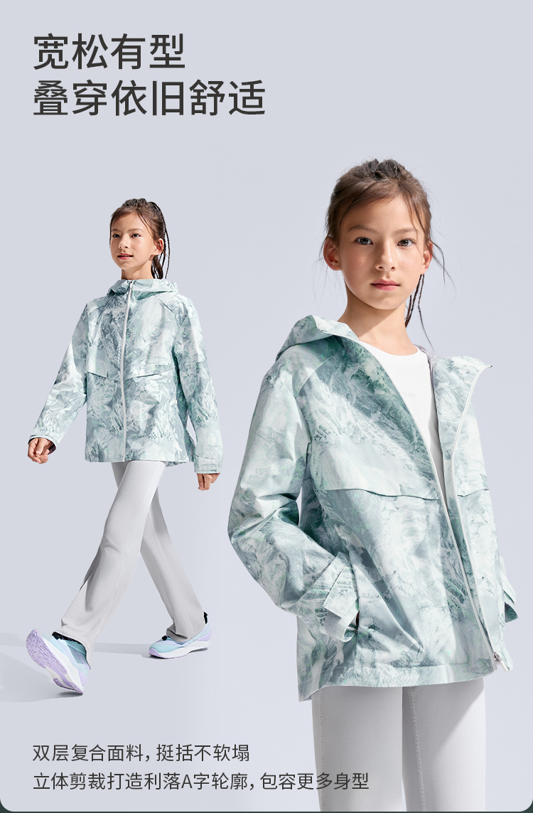 【爆款专属】moodytiger儿童硬核冲锋衣防风防水23秋季新品男女童运动户外服M33214001