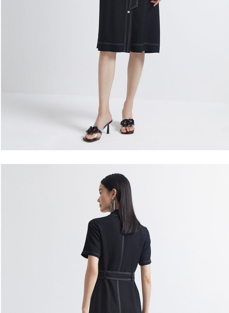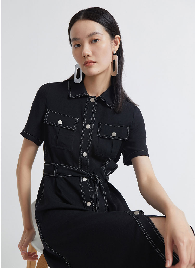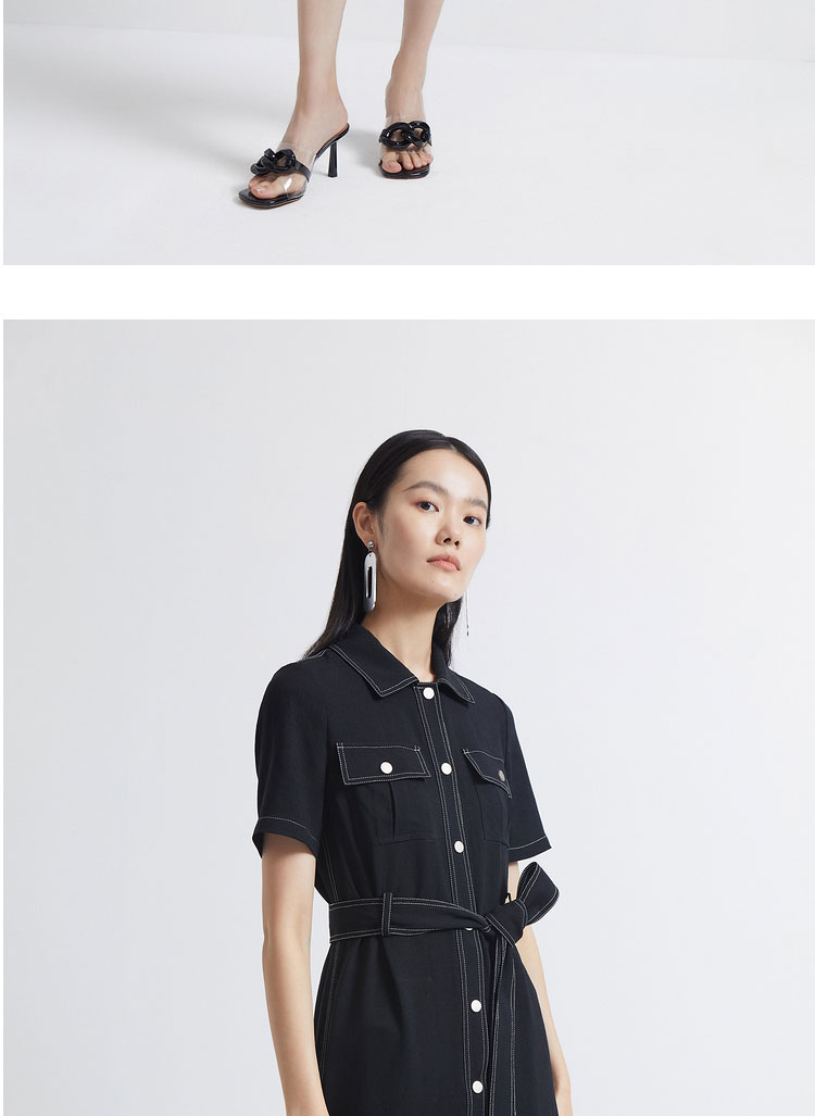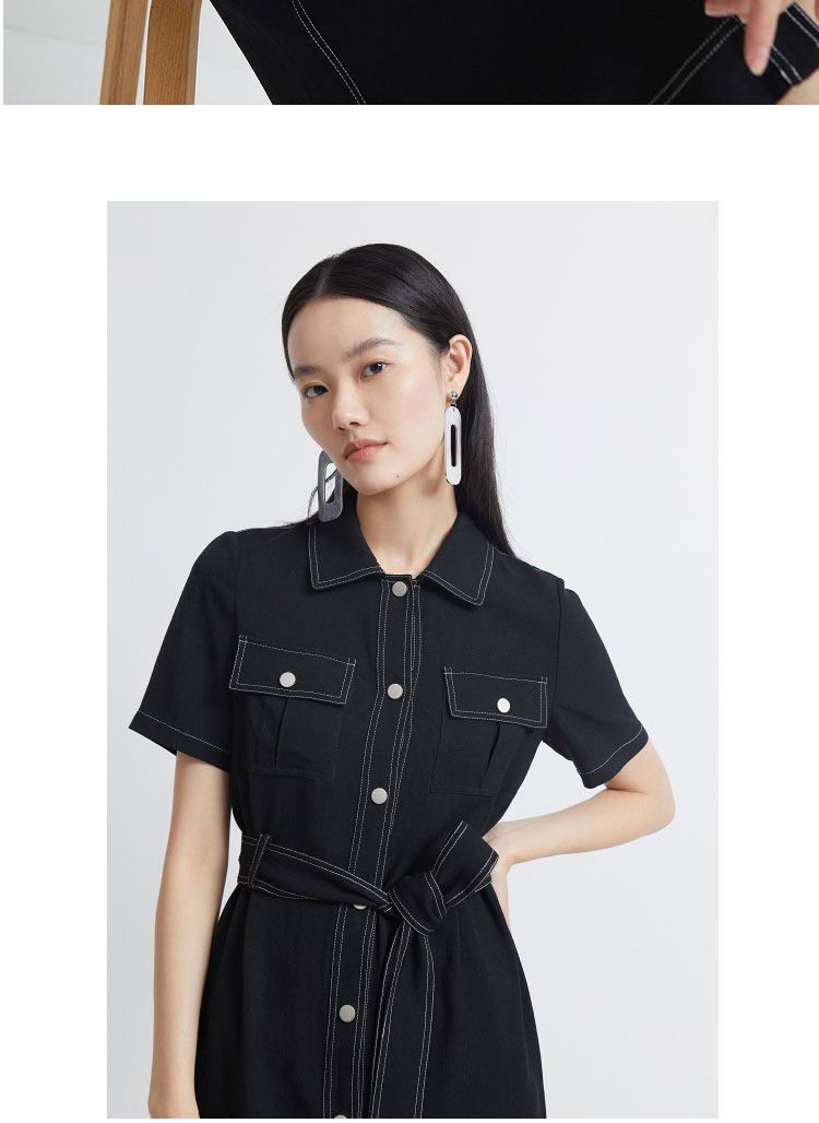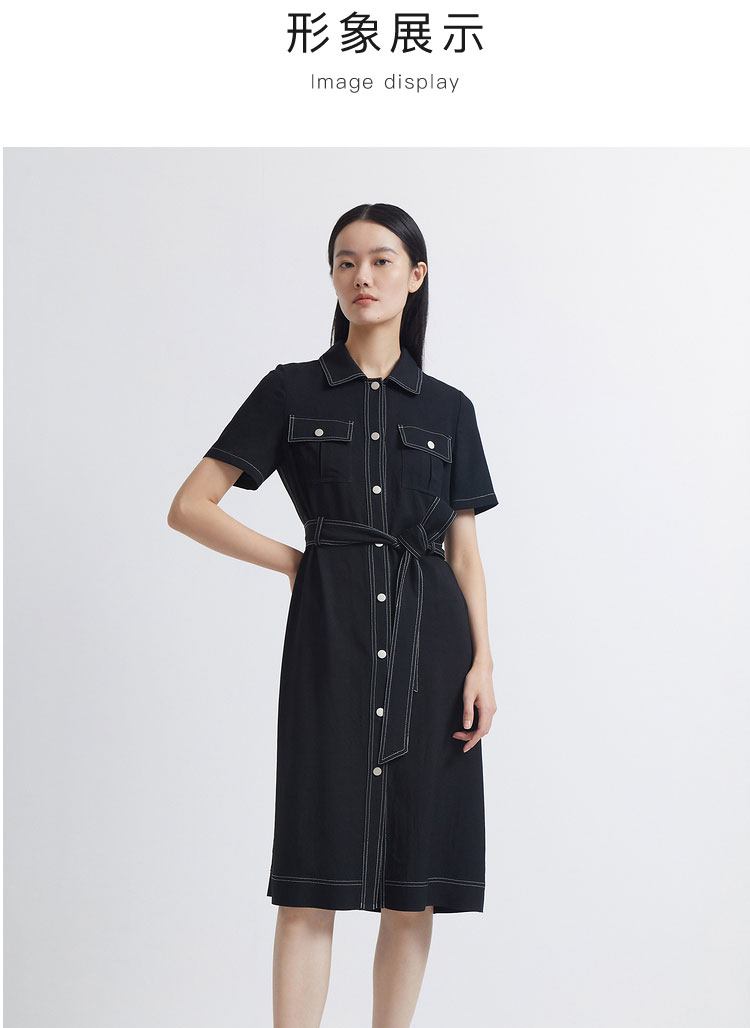 INSUN恩裳2022夏季新款时尚腰带设计休闲工装感醋酸牛仔连衣裙9C32205160