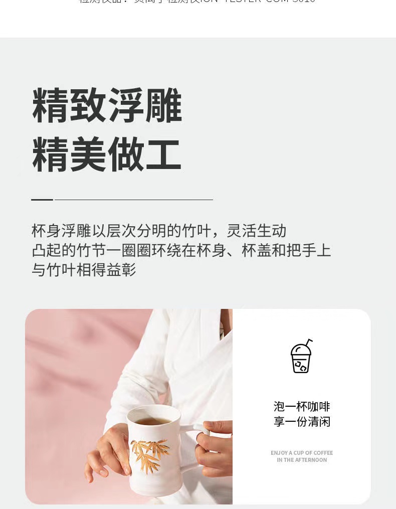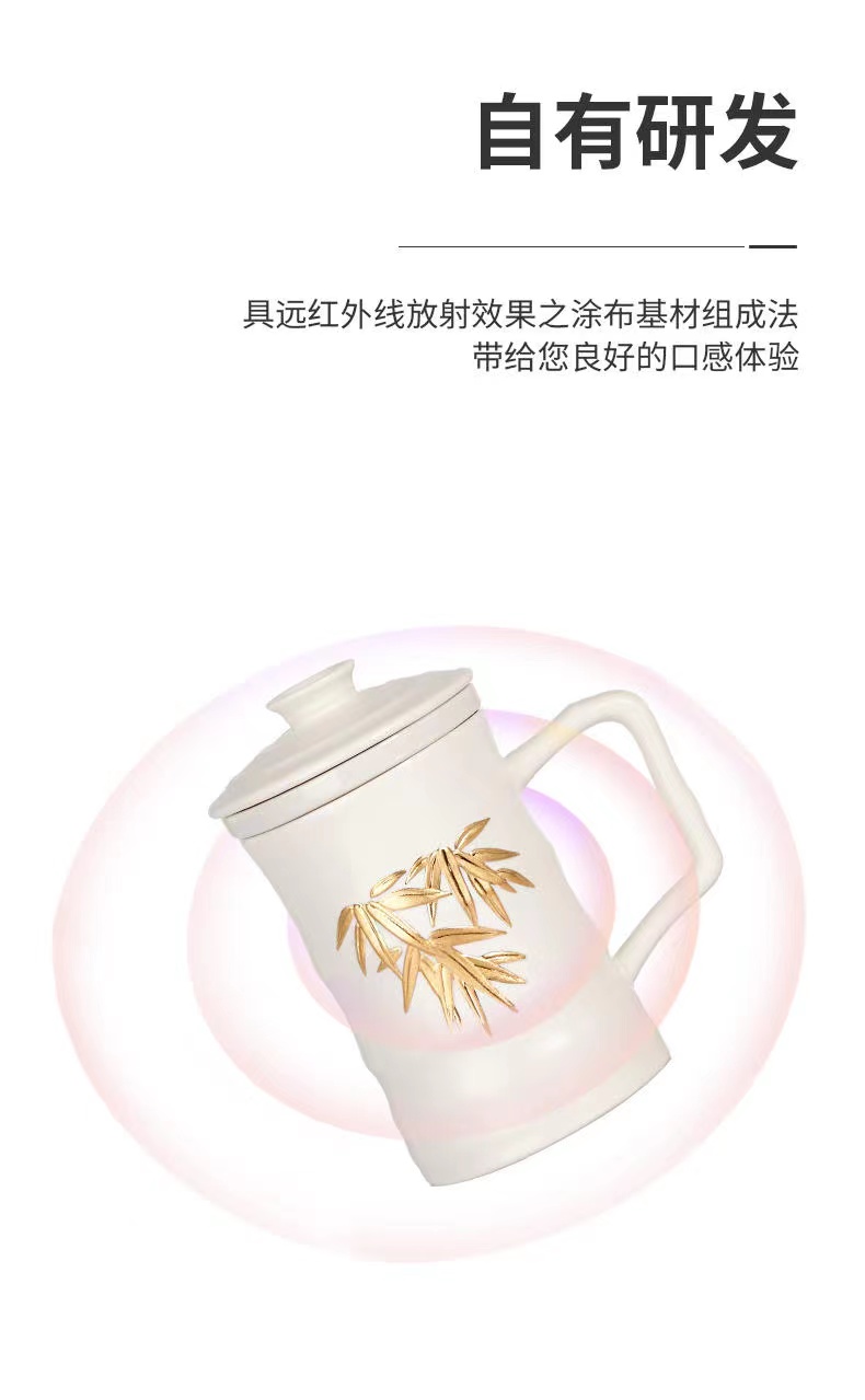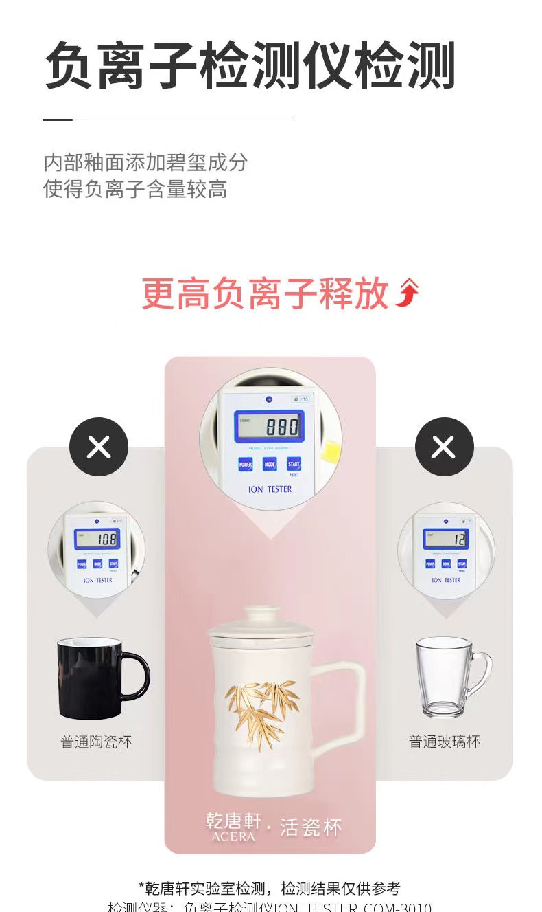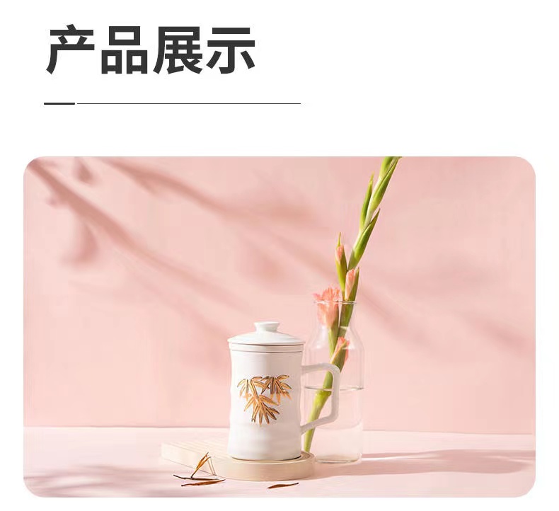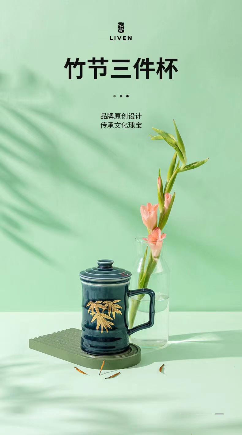 乾唐轩活瓷杯竹节三件杯带茶漏带手柄泡茶杯办公杯带盖陶瓷杯