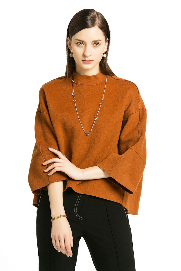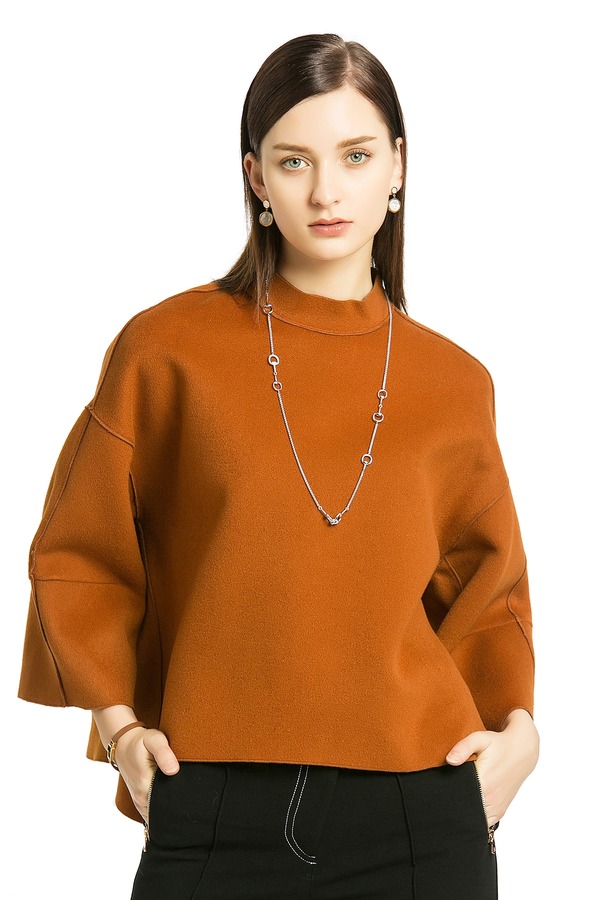 ELLA JADE 焦糖色圆领呢料上衣 228