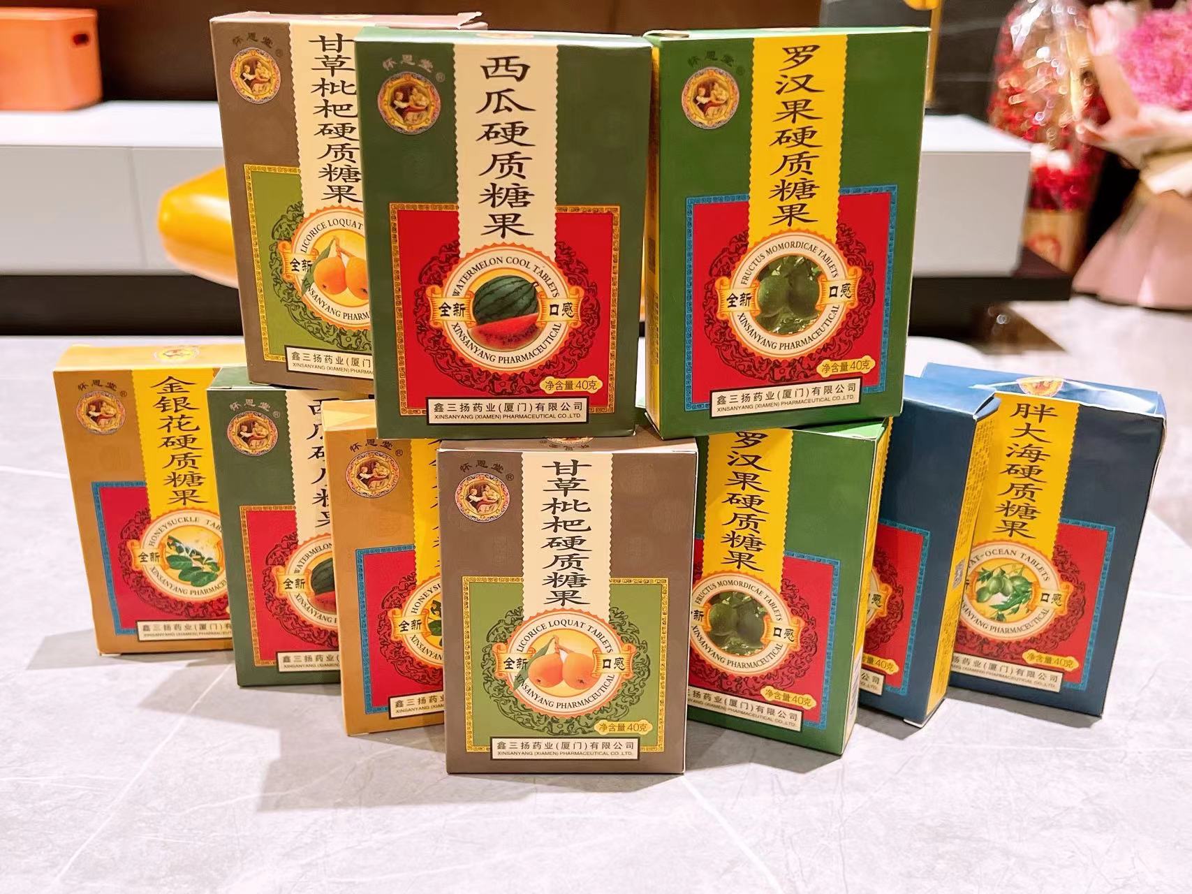 怀恩堂牌硬质糖果 金银花+胖大海+西瓜+罗汉果 共4盒