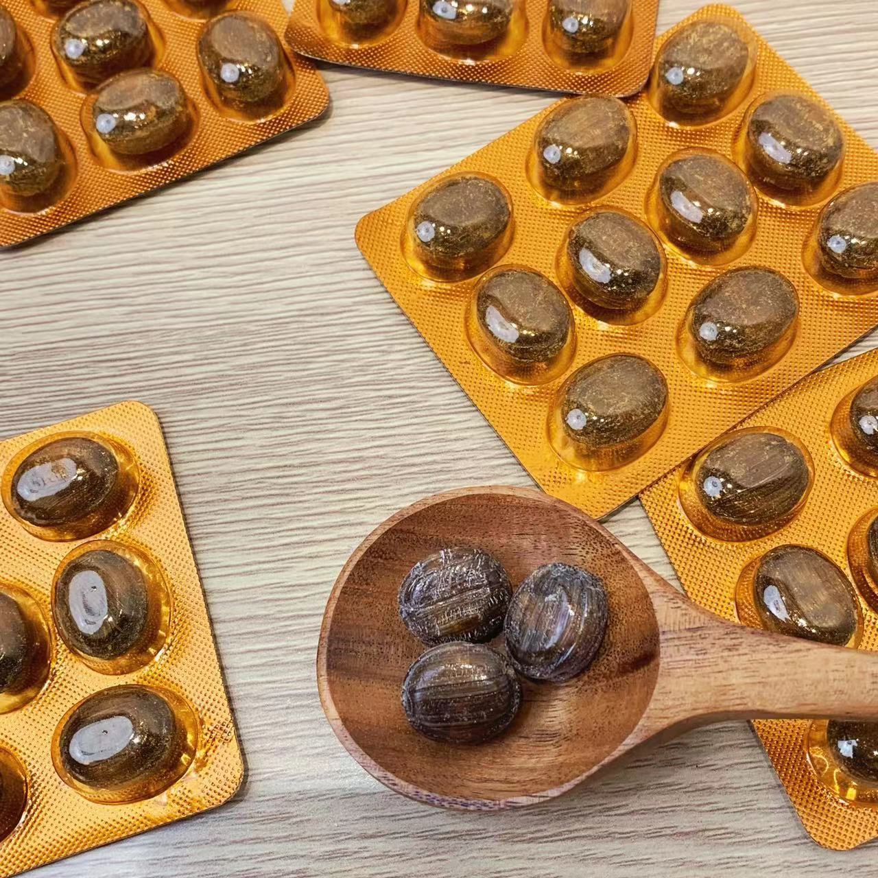 润喉糖的颜色有点偏棕褐色,质感和形状和普通的糖果没什么区别。