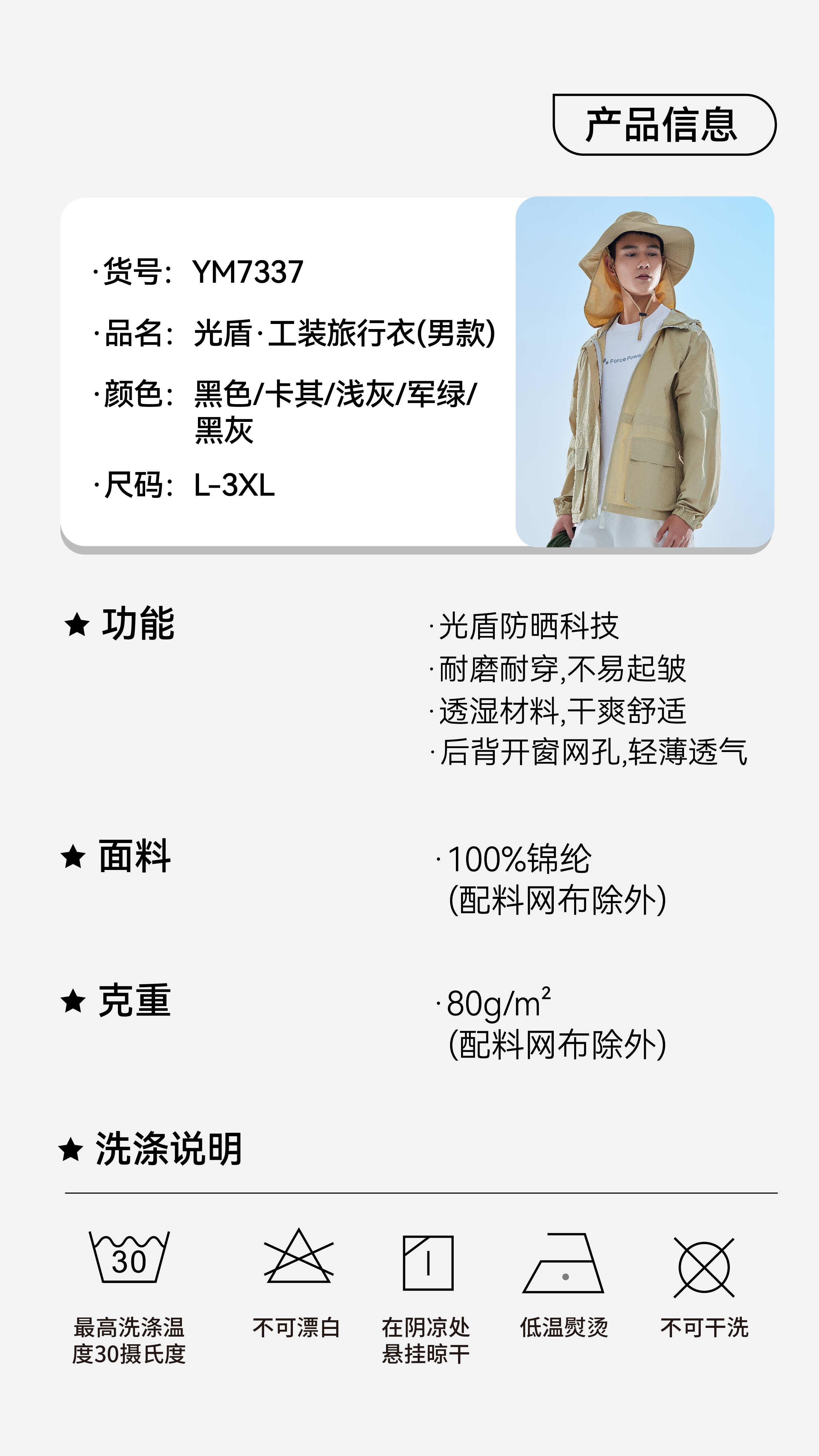 【防晒】男士工装防晒衣光盾旅行衣耐磨防晒冰爽透气速干【YM7337】
