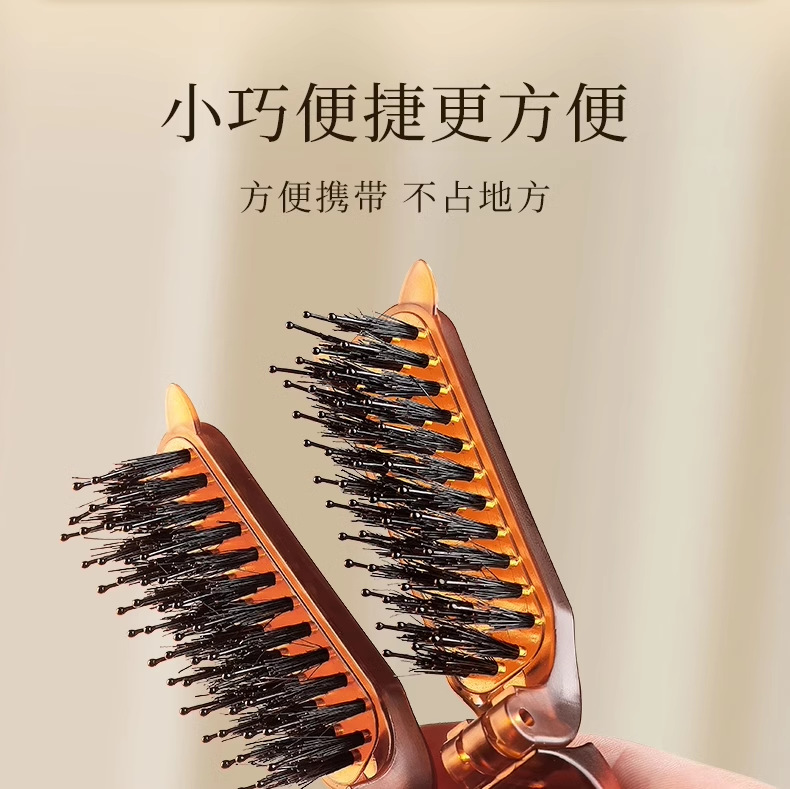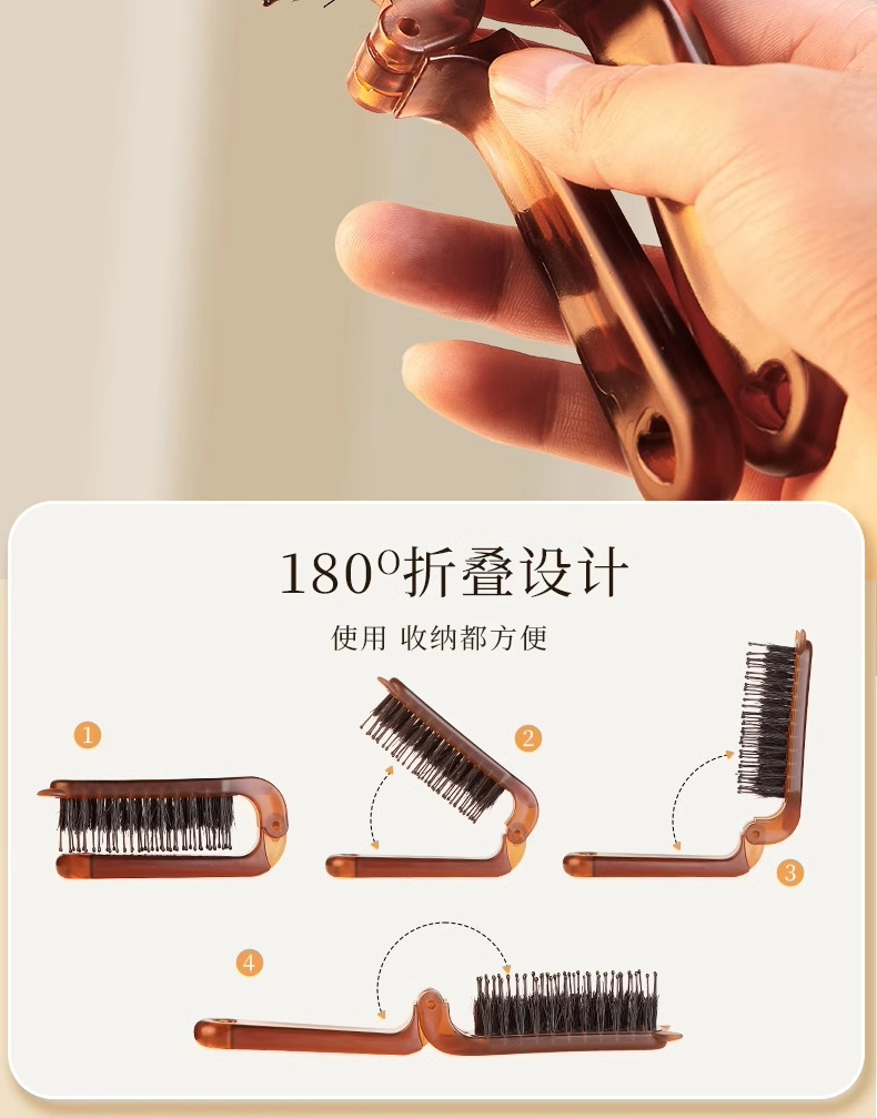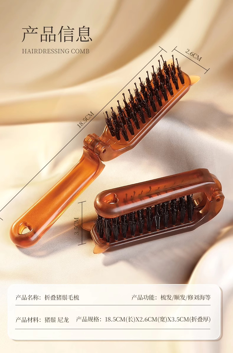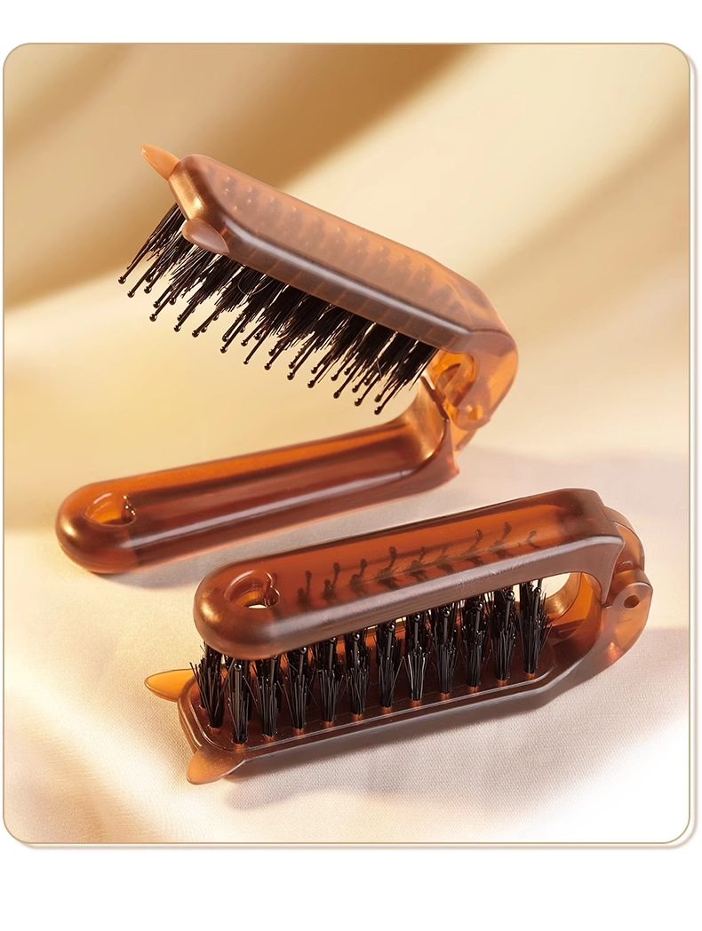 美发师推荐【限时购!第二件0元】琥珀色折叠梳子 仿猪鬃毛防静电不伤头皮小梳子 便携旅行折叠式梳子 随身携带折叠梳