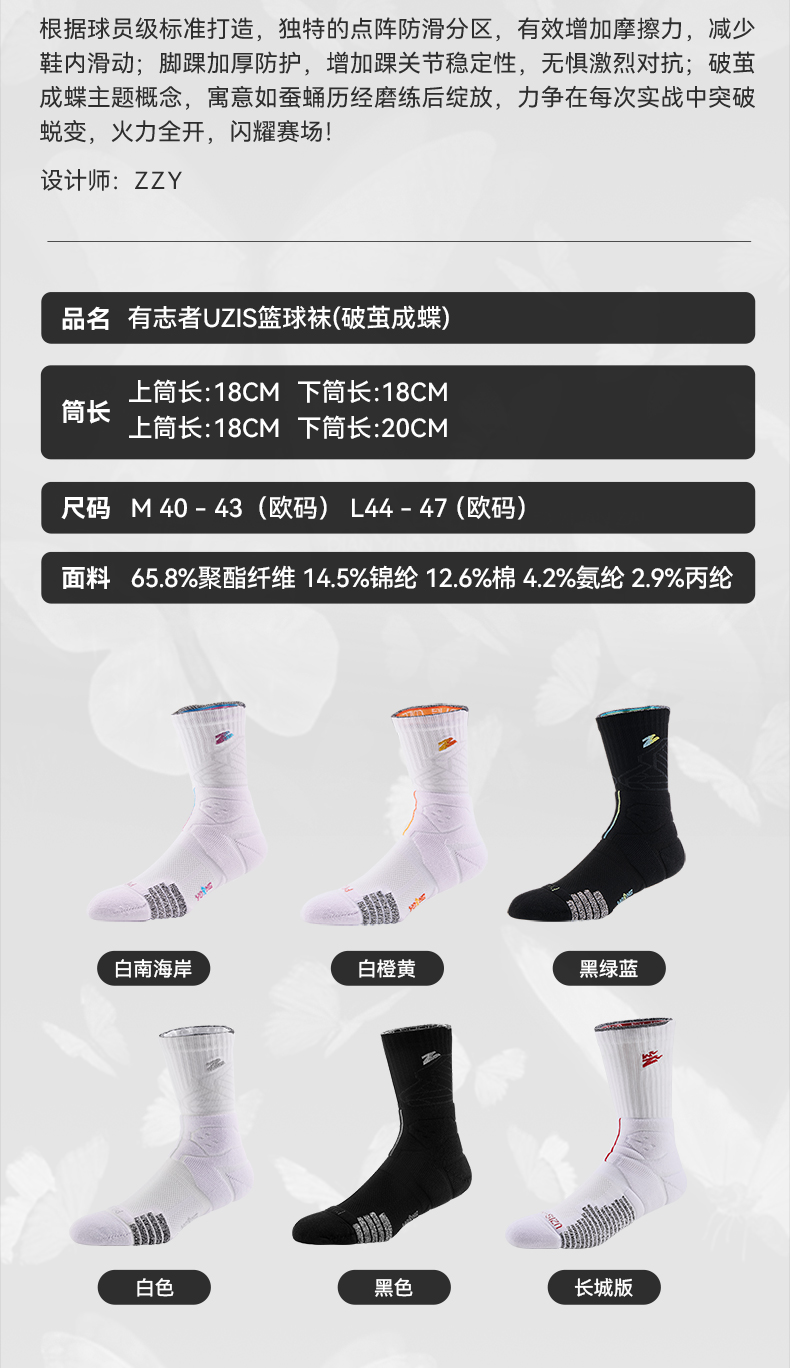 有志者UZIS专业防滑篮球袜男实战训练长筒加厚美式精英袜破茧成蝶