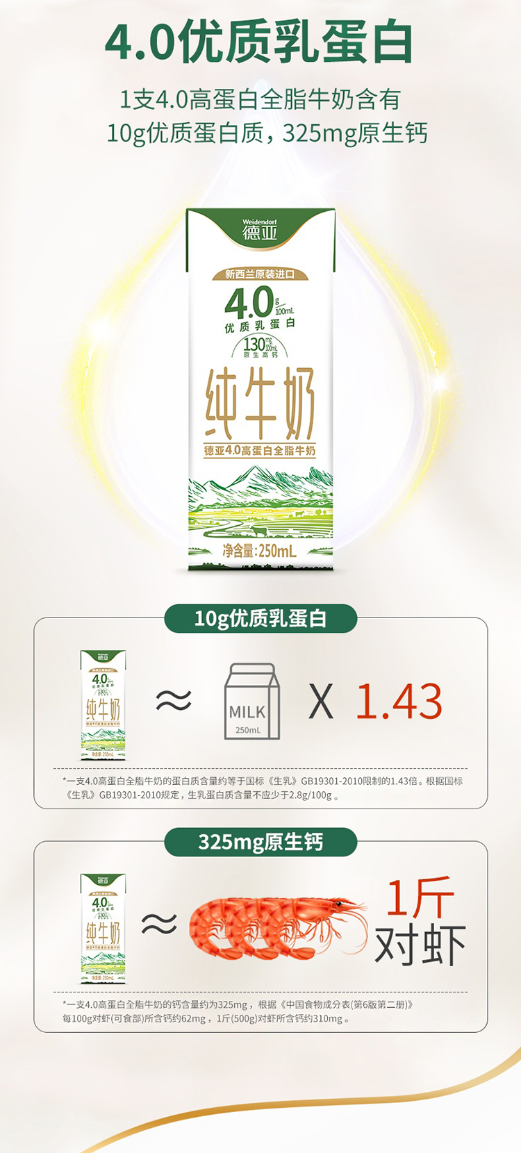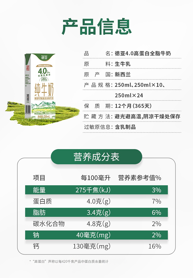 德亚4.0高蛋白牛奶礼盒250ML*10