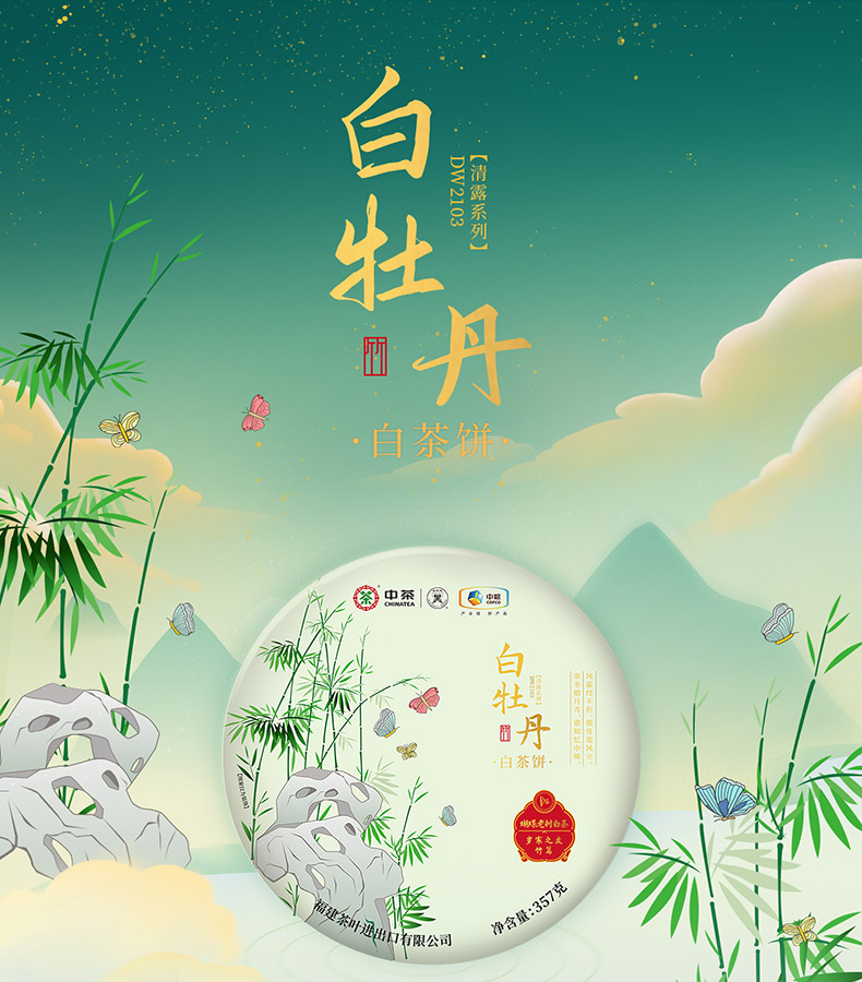 【自营】中茶 岁寒三友梅老树白茶贡眉 松清露系列白茶寿眉 竹福鼎白茶白牡丹茶饼357g 礼盒装