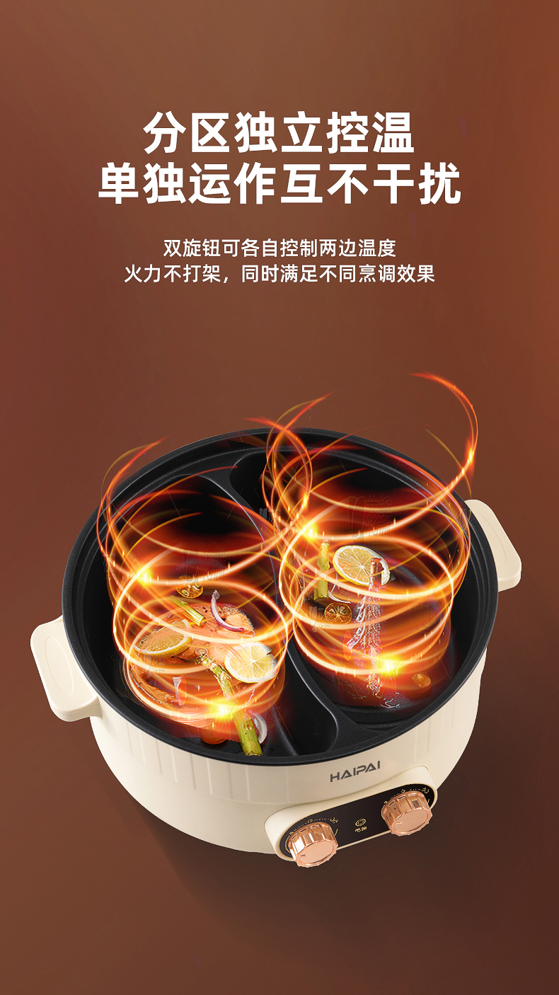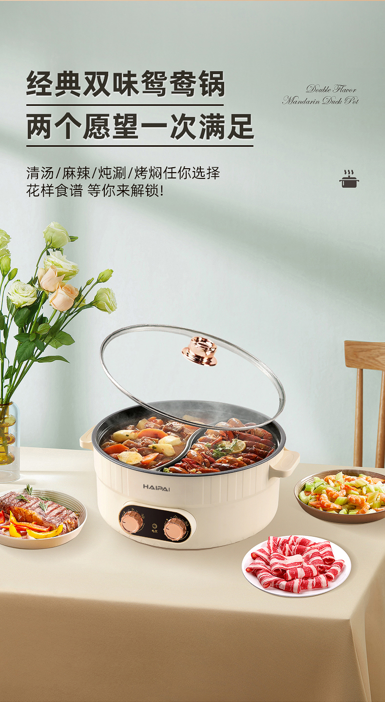 【小家电】海牌HP-Y05D 大容量5L鸳鸯火锅 HF