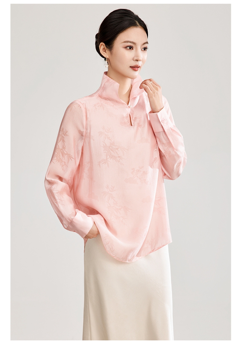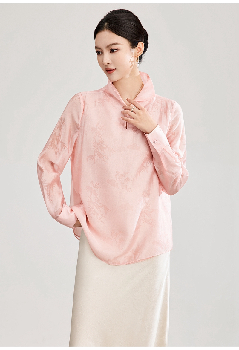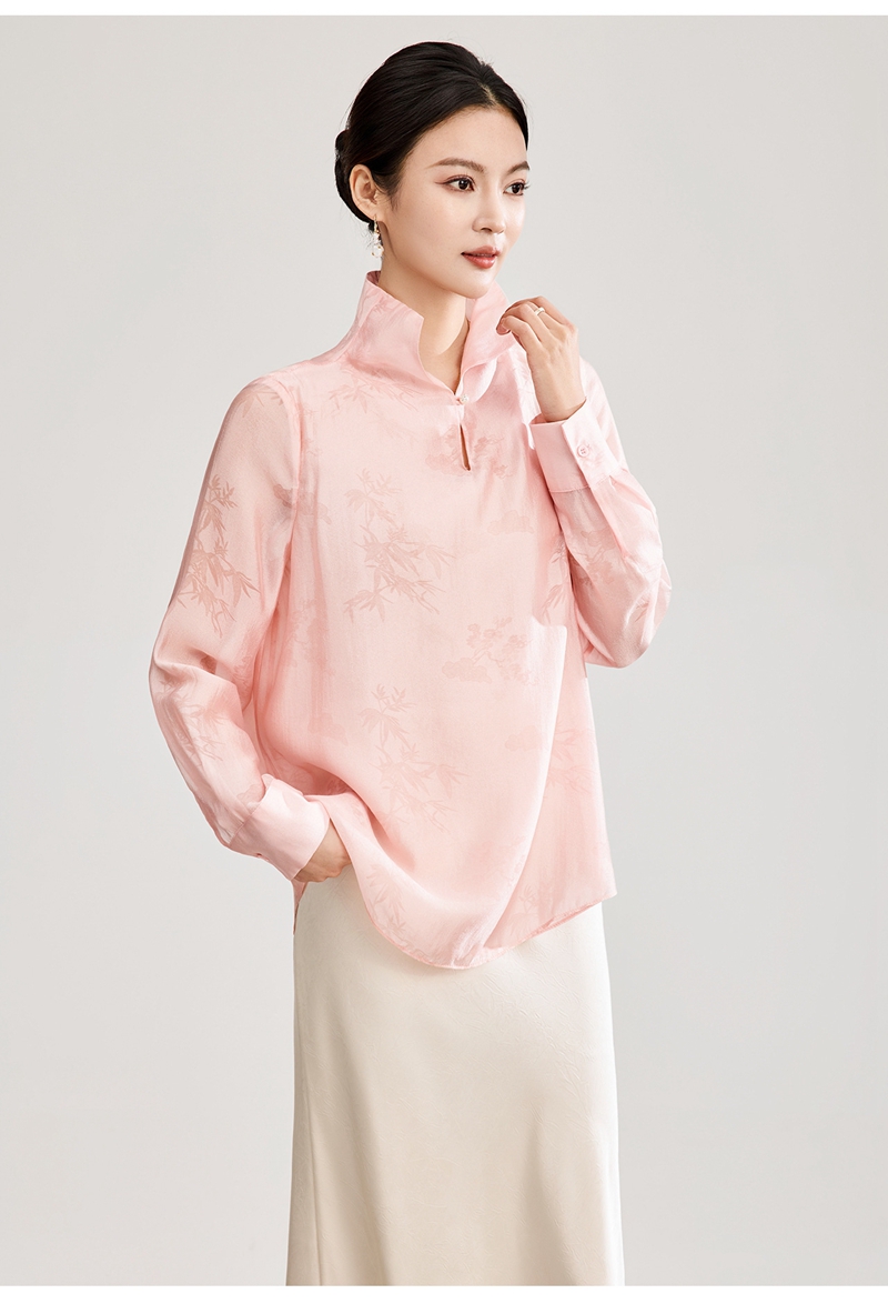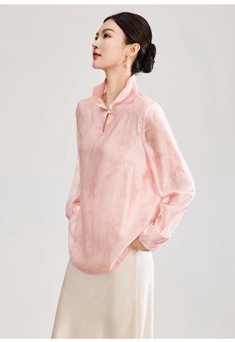 2026春装新中式立领长袖正襟一粒扣套头衬衫