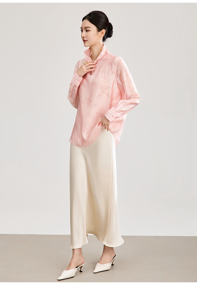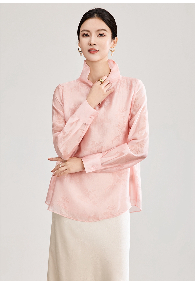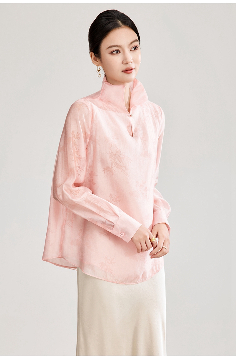 2026春装新中式立领长袖正襟一粒扣套头衬衫