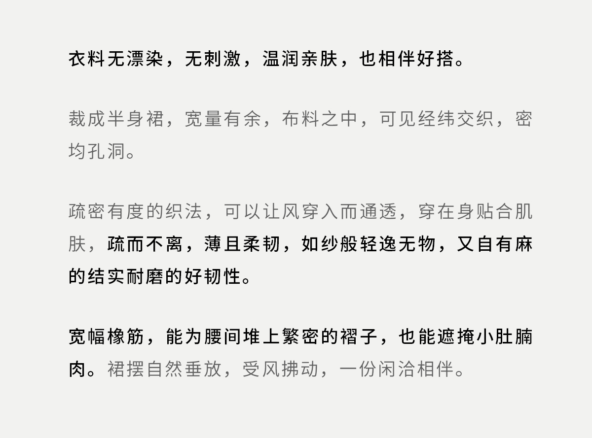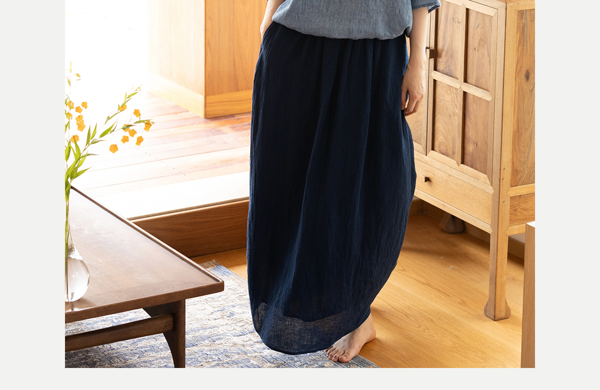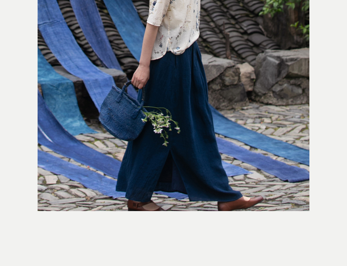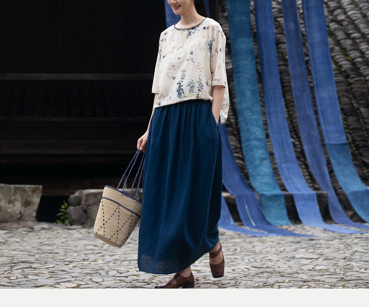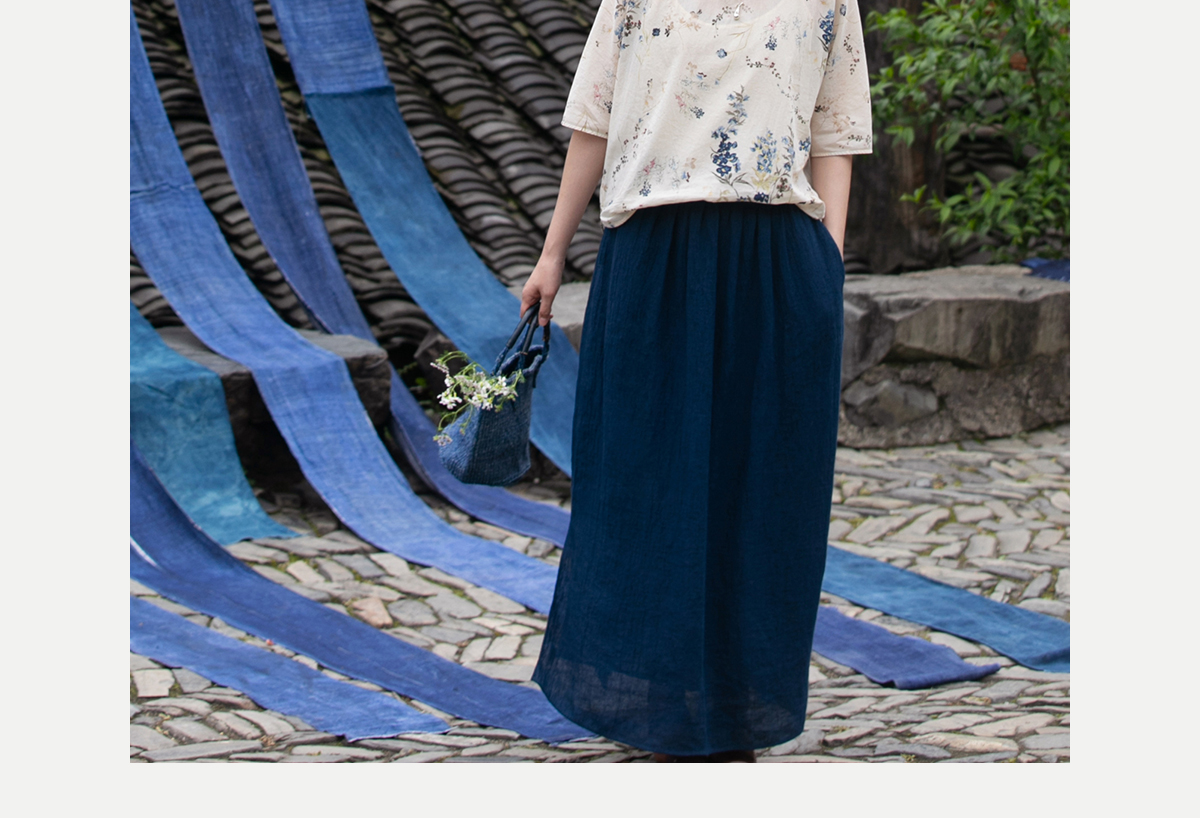 牧衣游原创 亚麻半身裙夏新款轻薄开叉百搭宽松蓝色A字半裙 清味