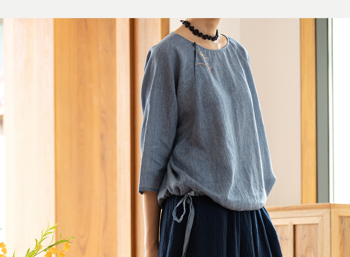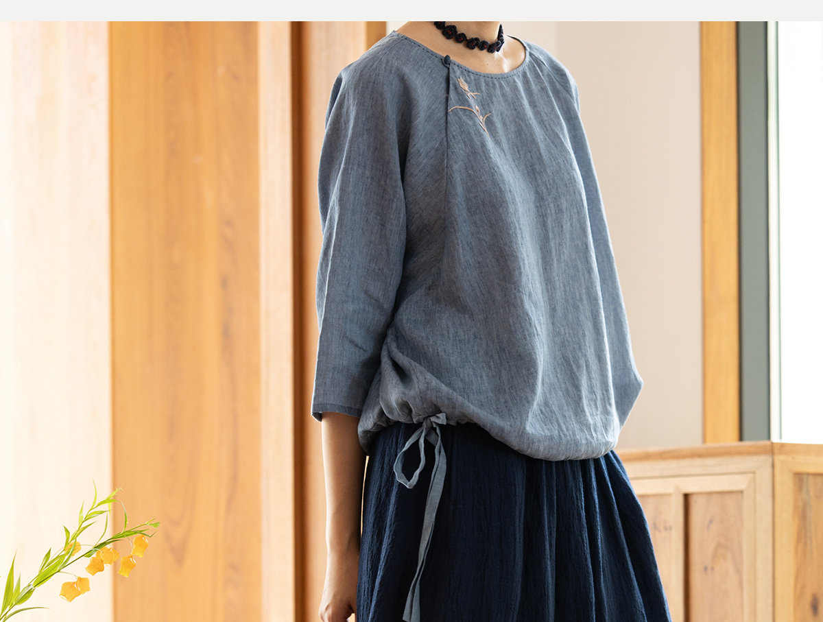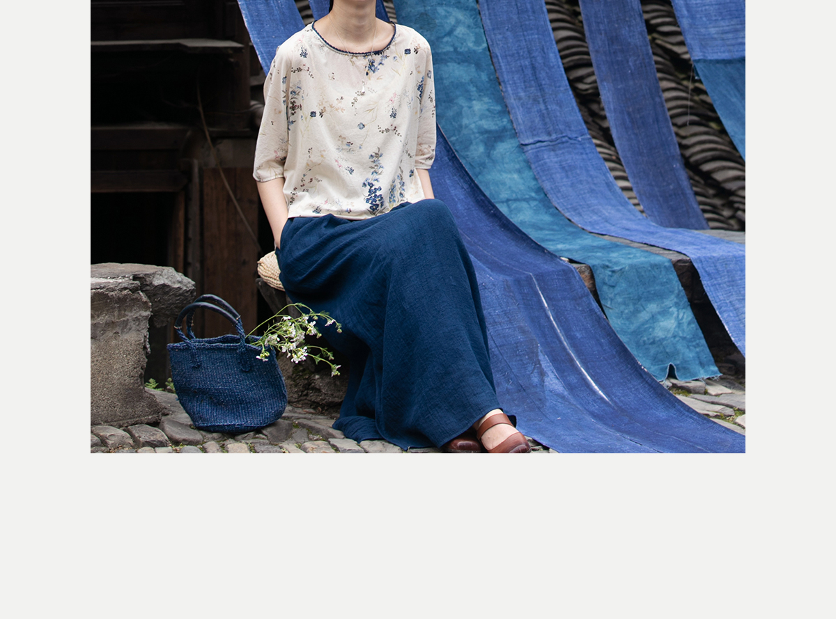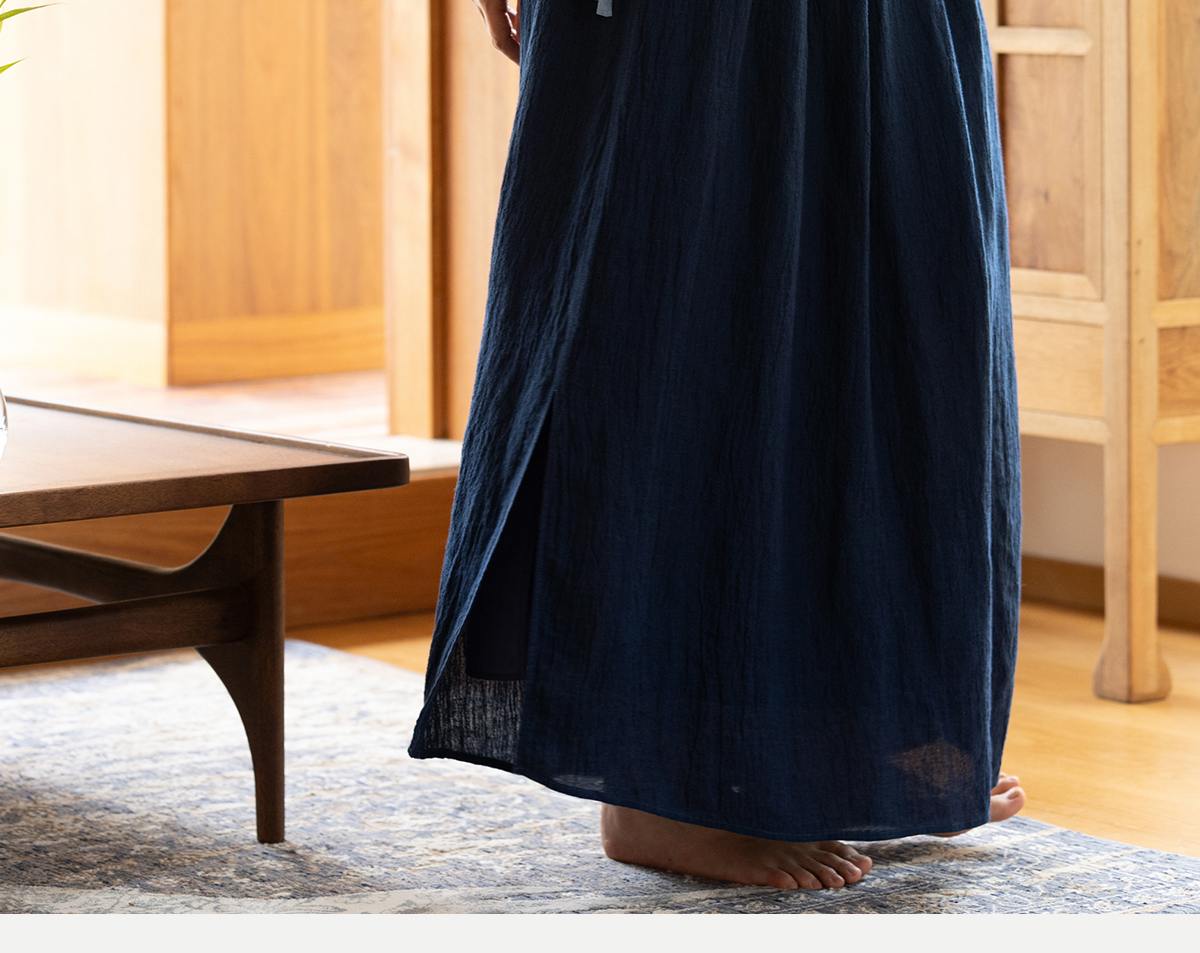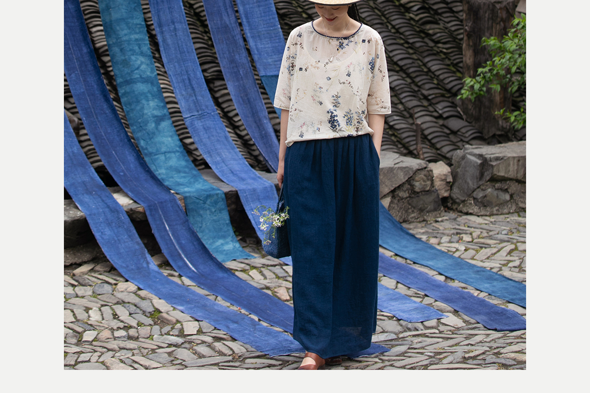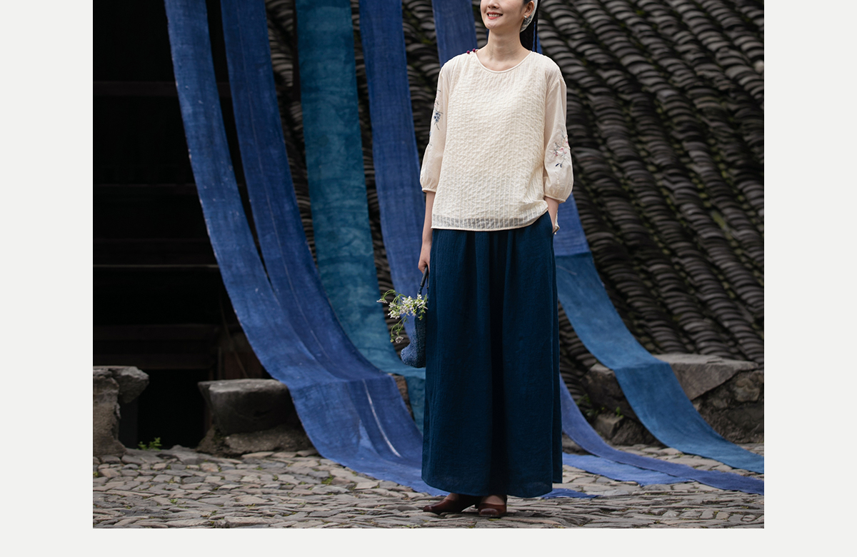 牧衣游原创 亚麻半身裙夏新款轻薄开叉百搭宽松蓝色A字半裙 清味