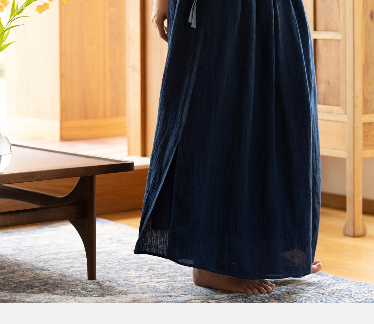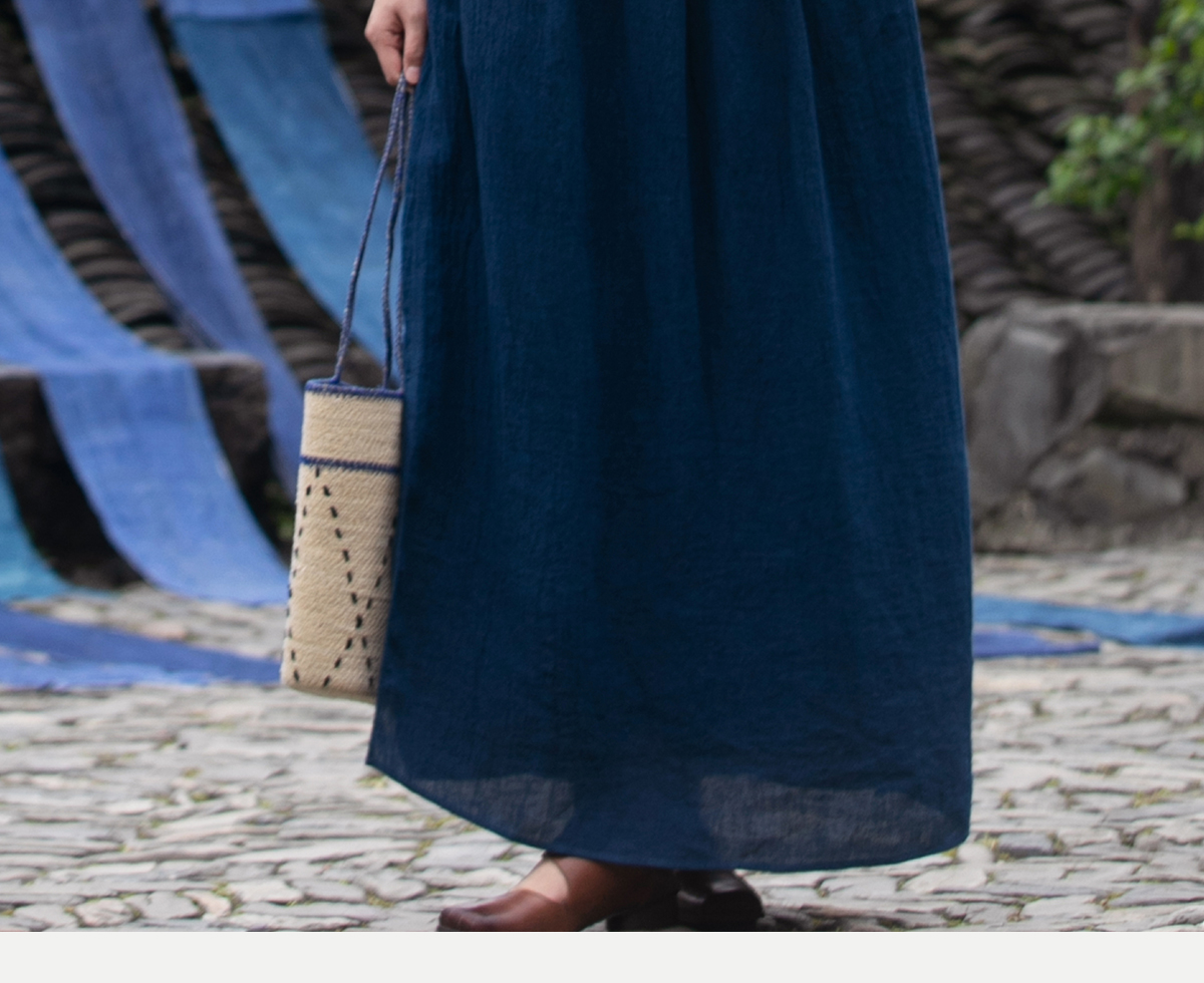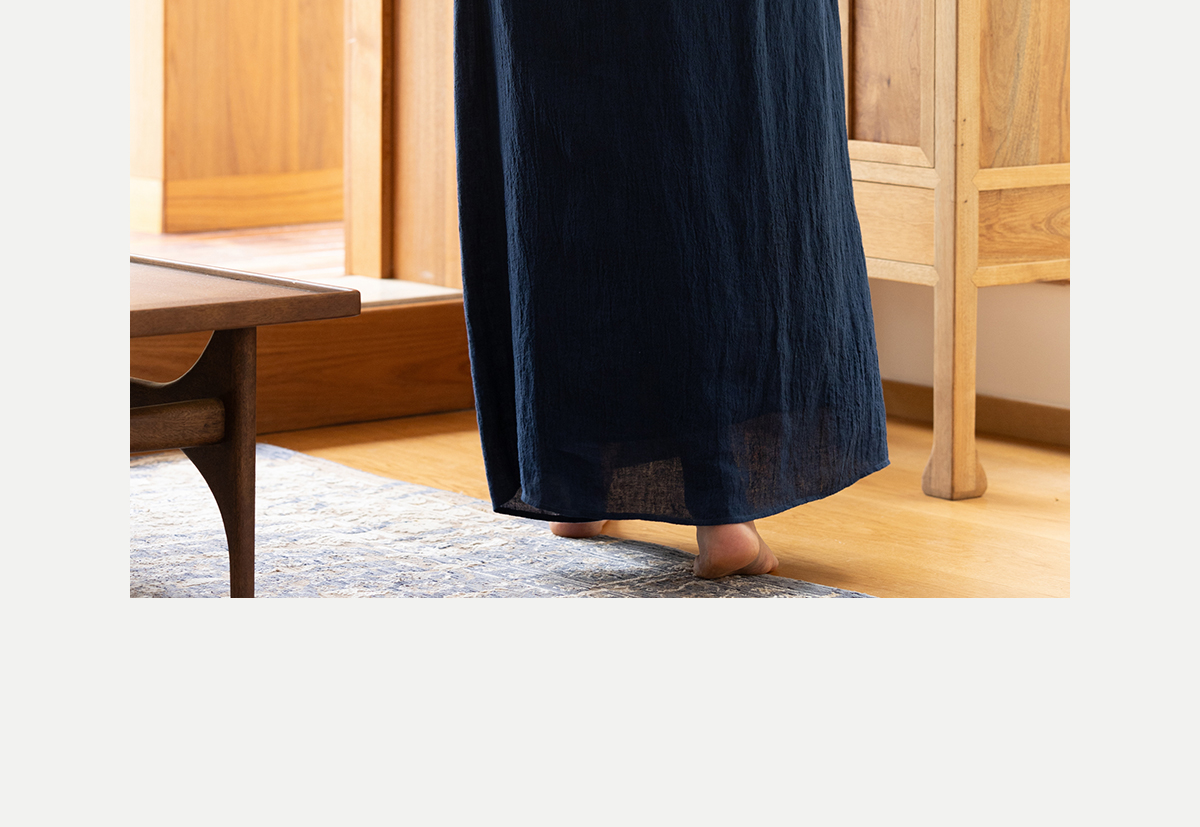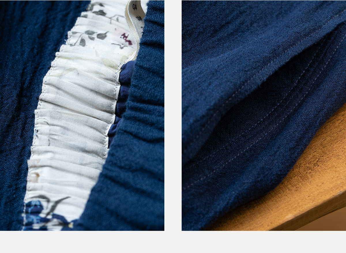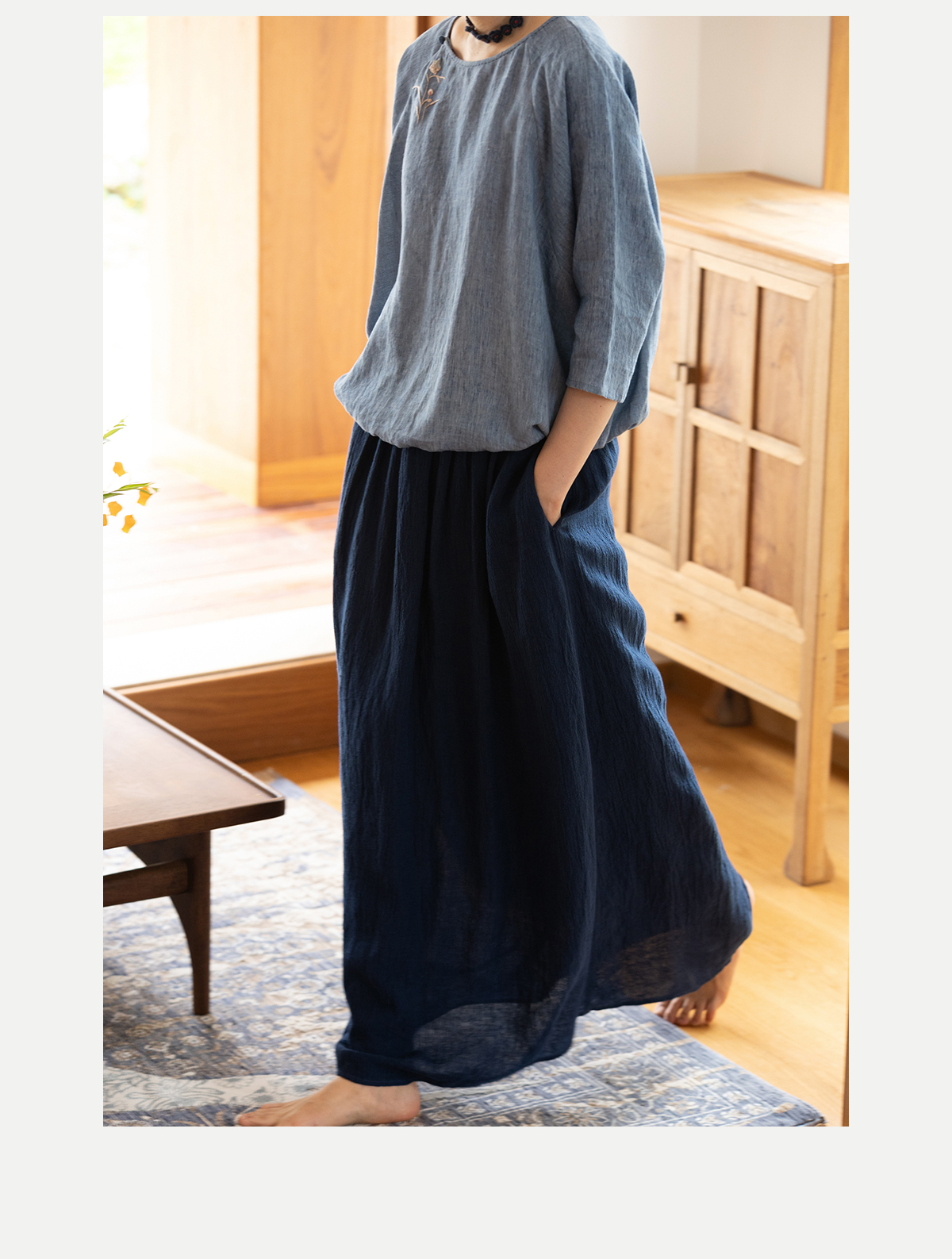 牧衣游原创 亚麻半身裙夏新款轻薄开叉百搭宽松蓝色A字半裙 清味