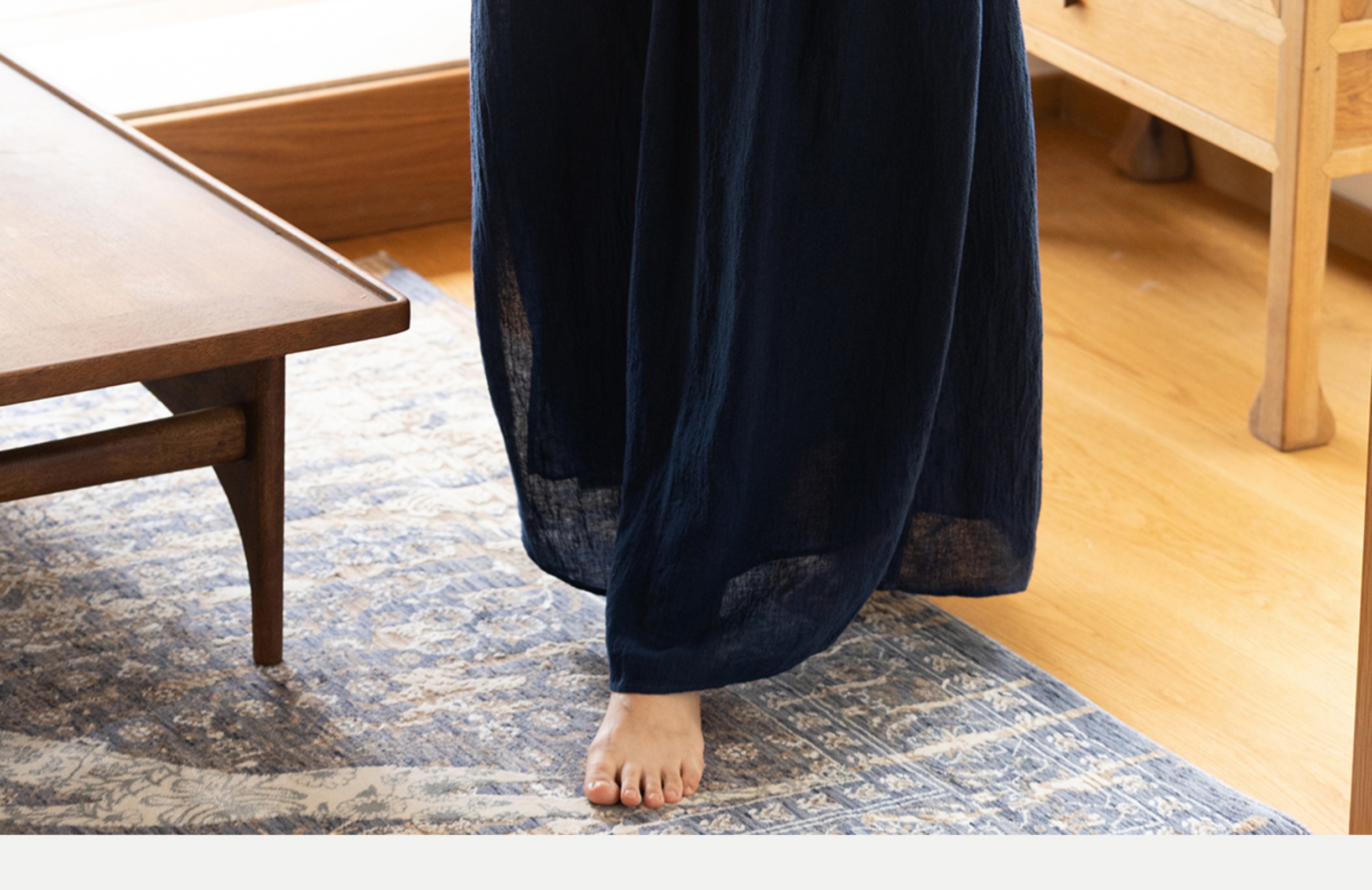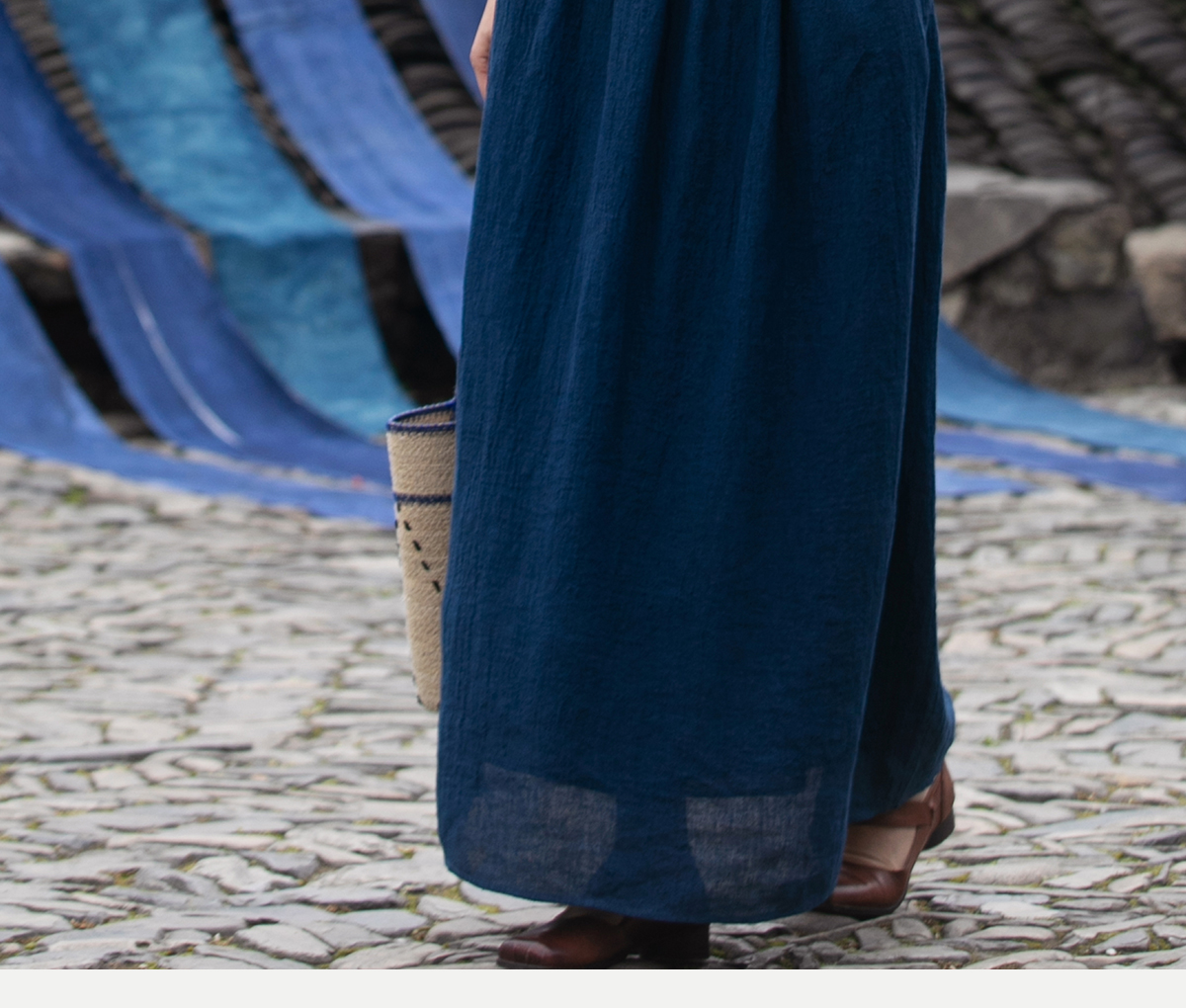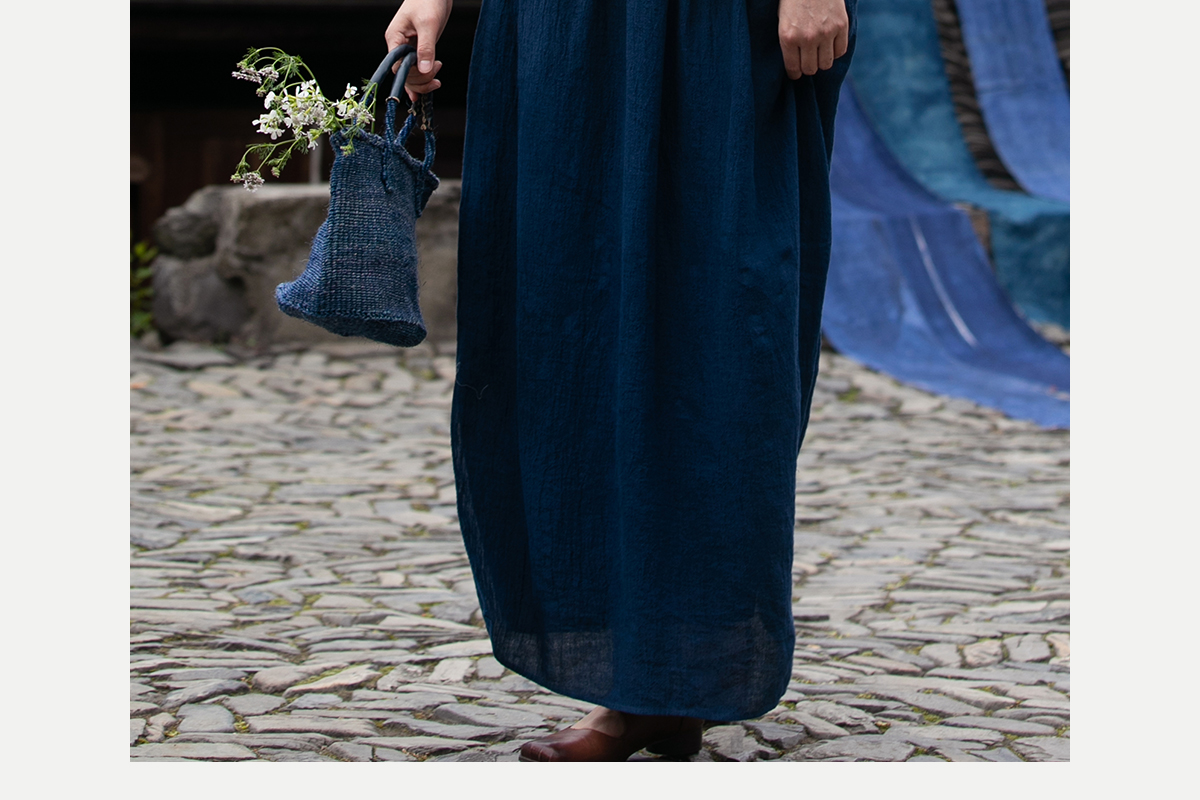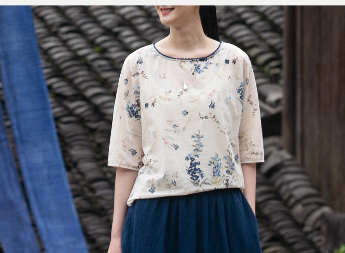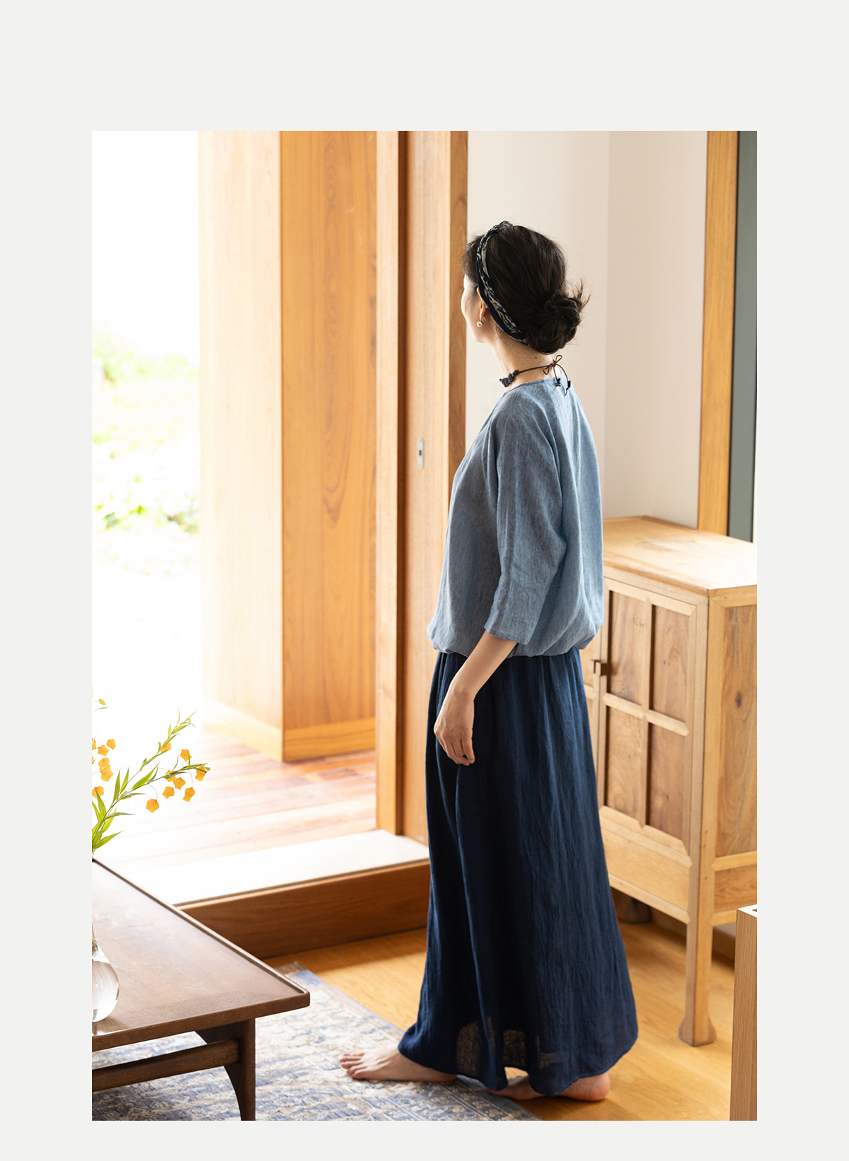 牧衣游原创 亚麻半身裙夏新款轻薄开叉百搭宽松蓝色A字半裙 清味
