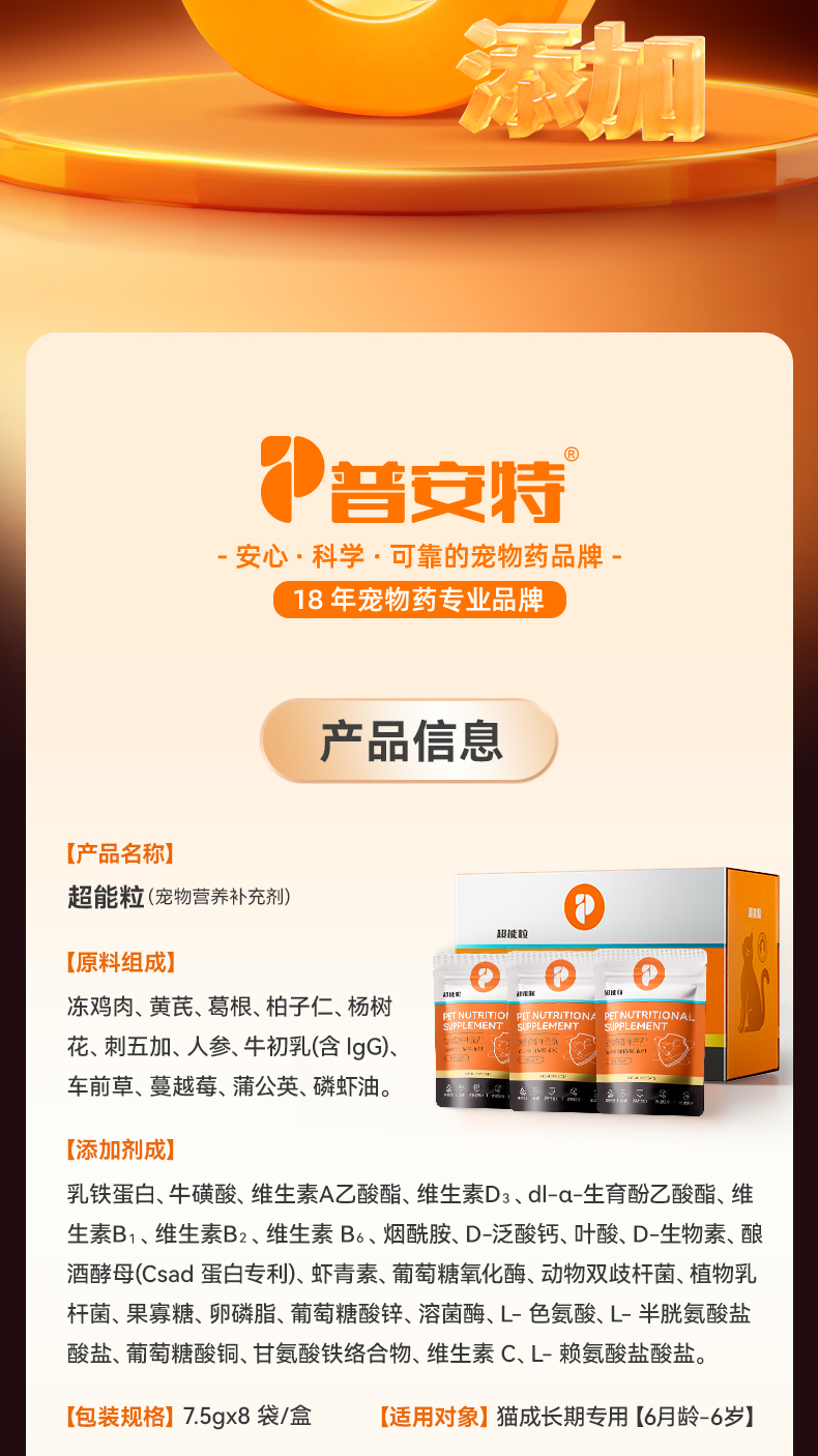 普安特宠物猫咪狗狗用营养膏乳铁蛋白卵磷脂提高抵抗健康美毛护心超能粒